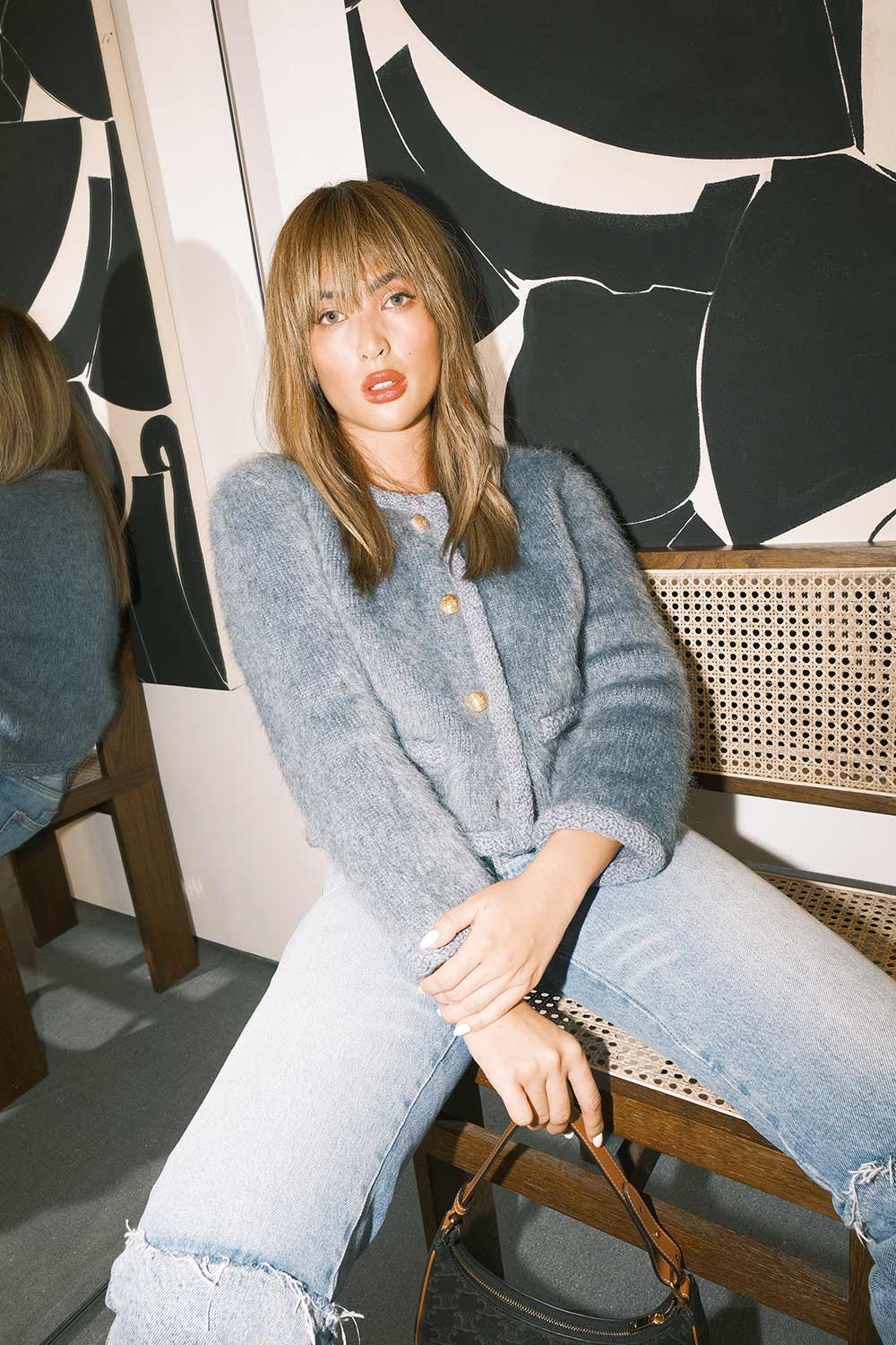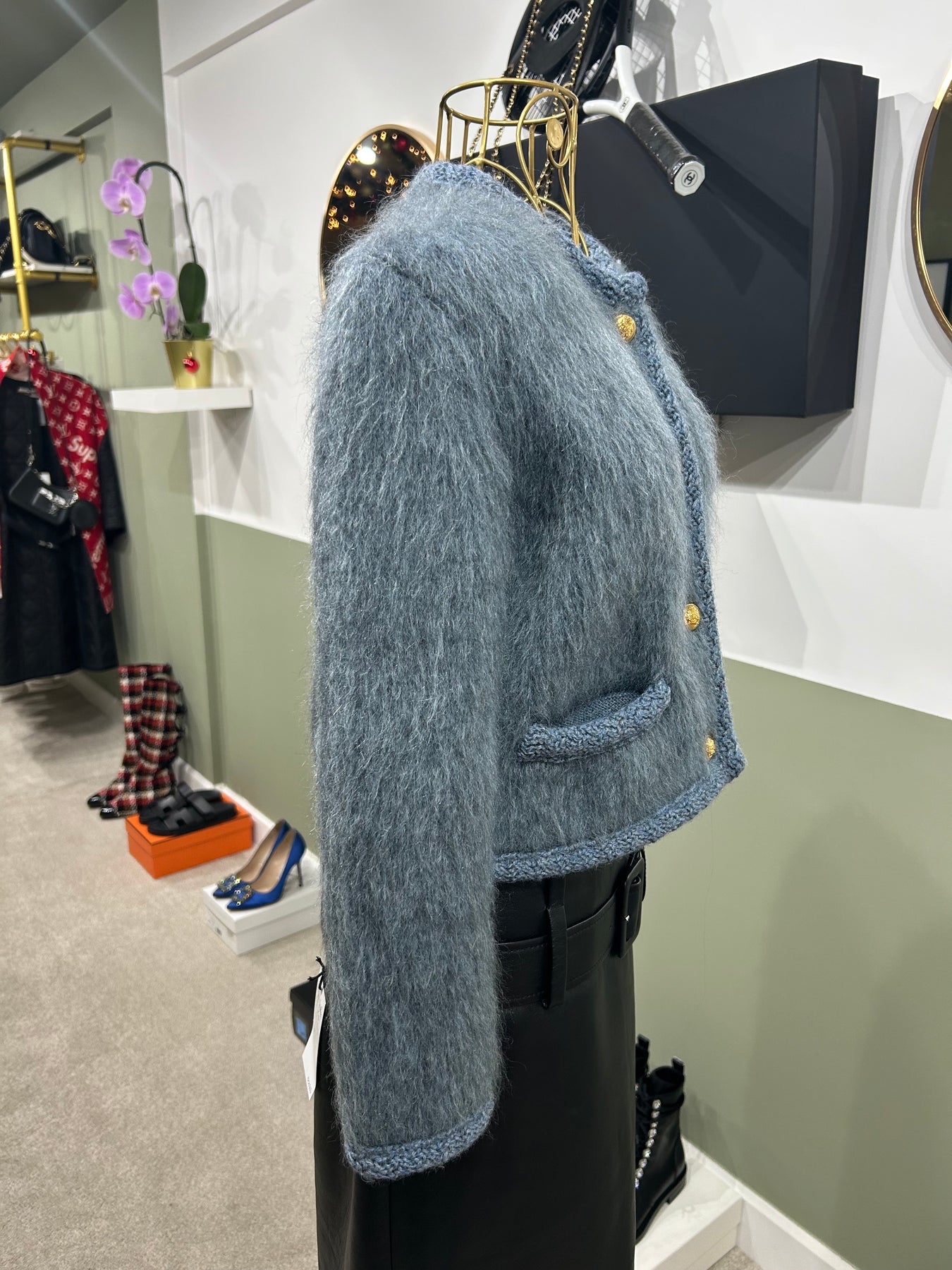 CELINE blue brushed mohair cardi jacket size XS