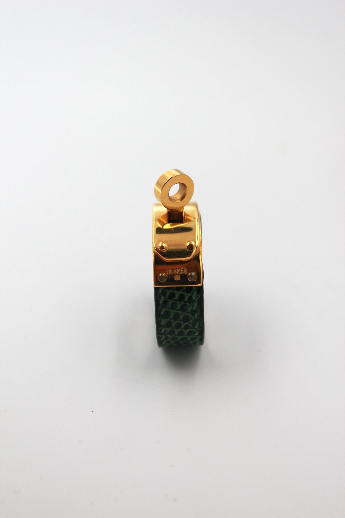 HERMES Ring Scarf Green Lizard Exotic Skin Gold Hardware with box