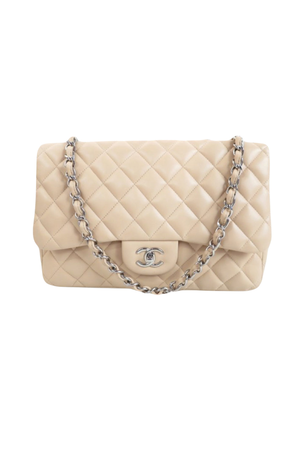 CHANEL Jumbo Single Flap Beige Clair Lambskin Leather Silver Hardware with box