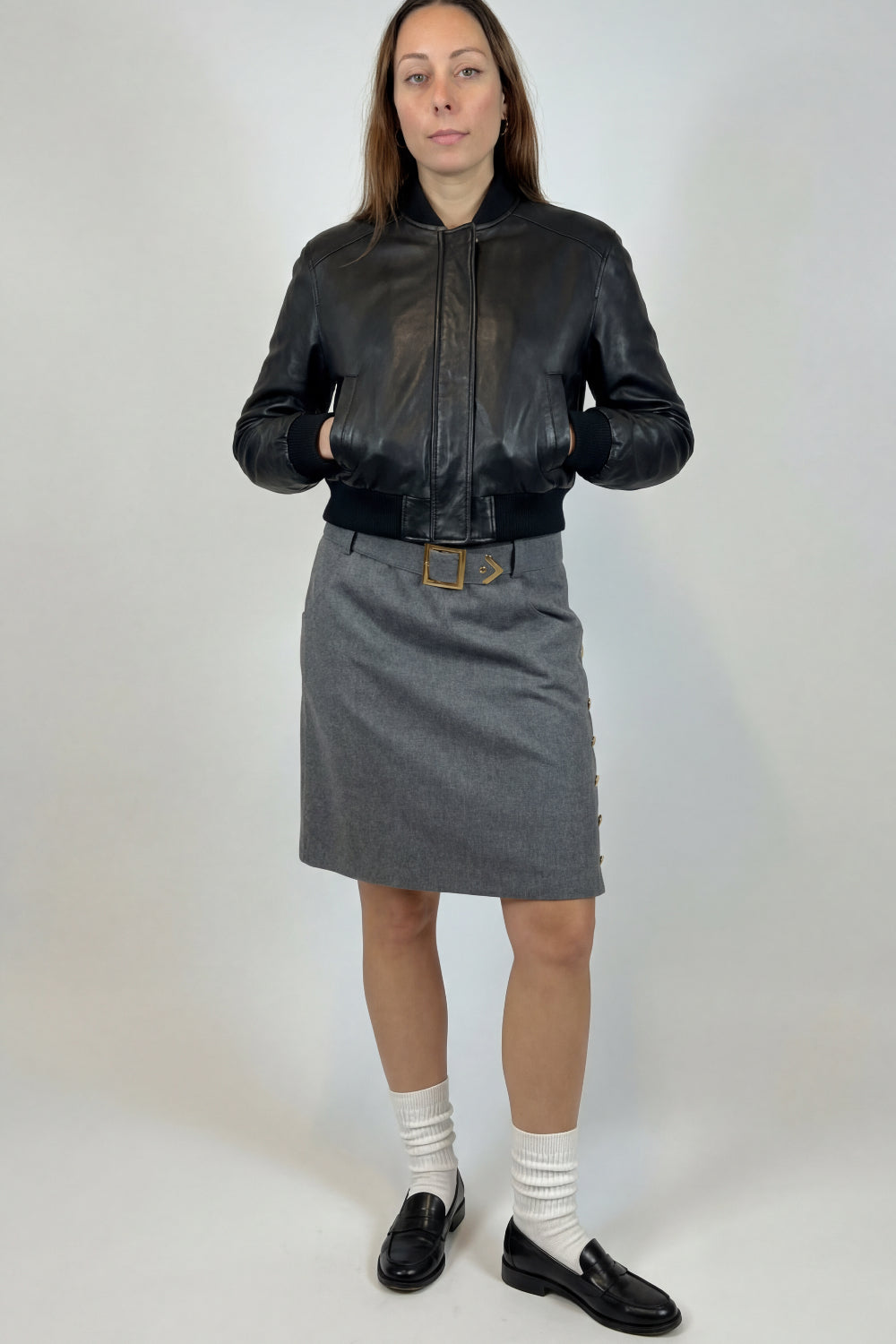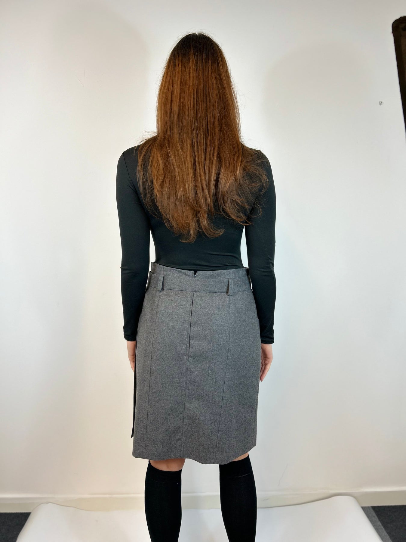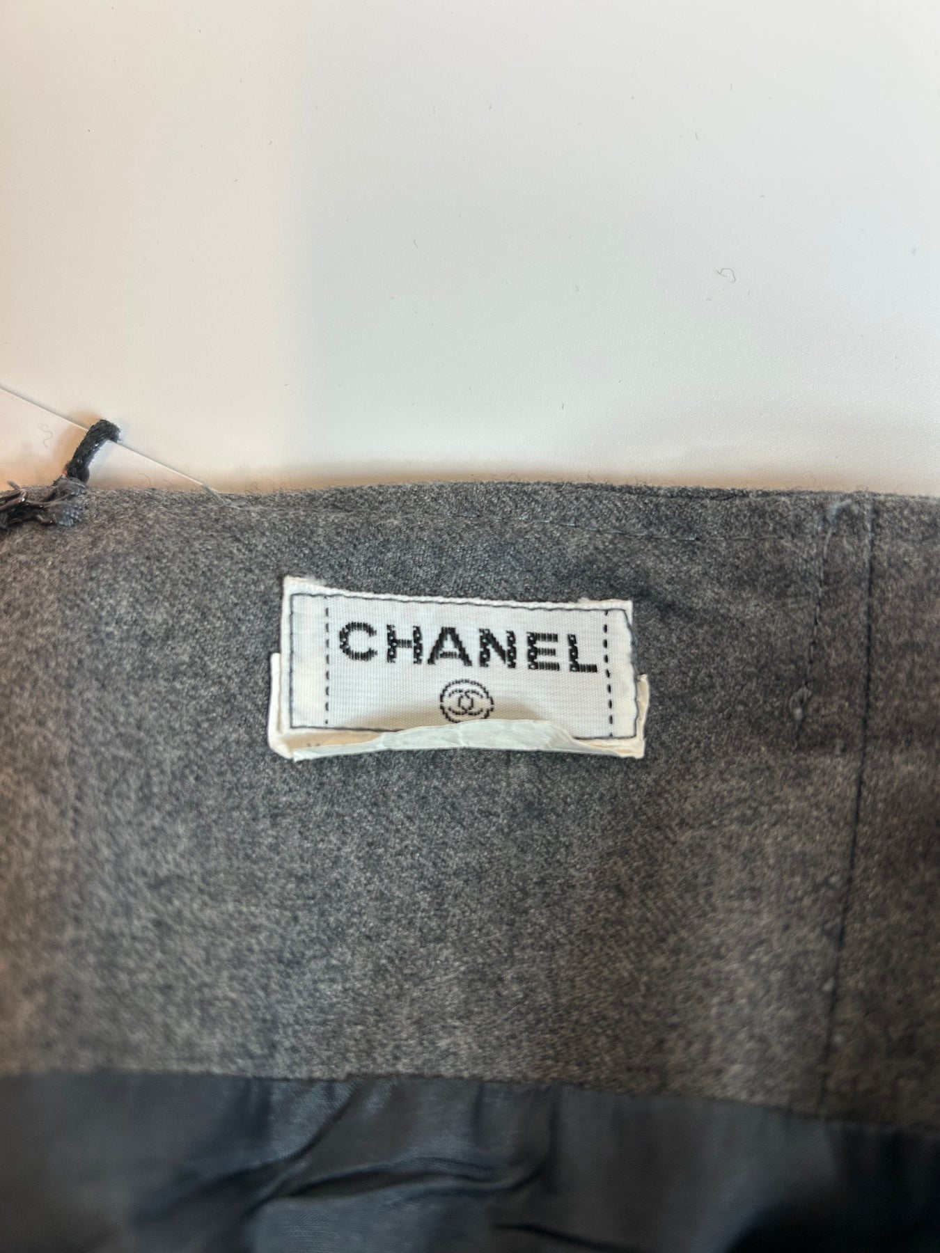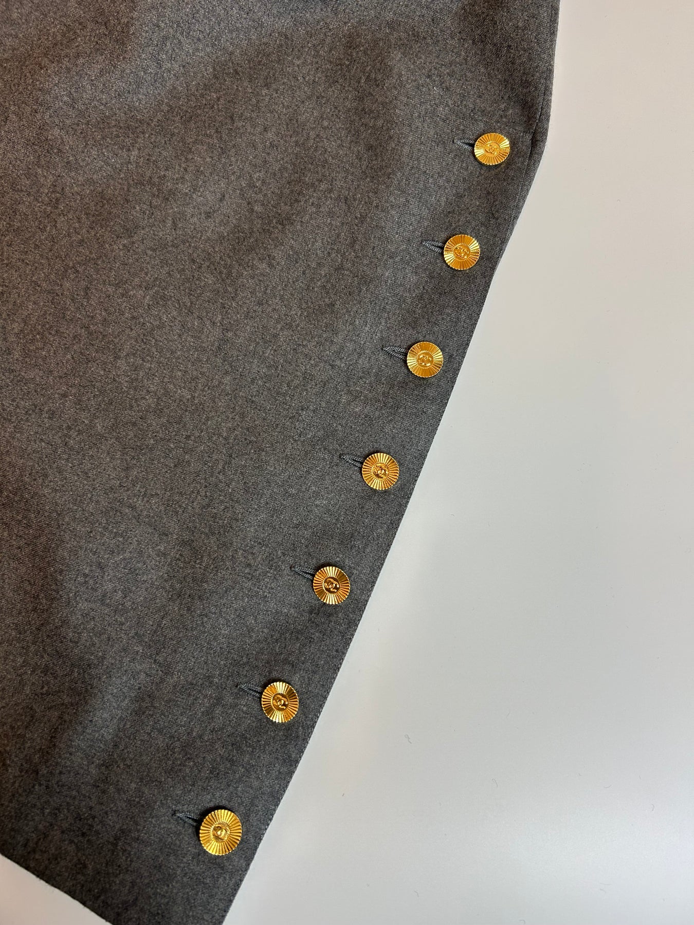 CHANEL 1990's Vintage Grey Wool Gold CC sunburst buttons skirt with CC belt