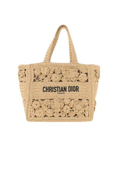 CHRISTIAN DIOR hand crocheted millefiori small book tote handbag with oblique insert