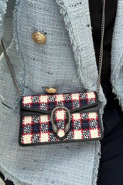 GUCCI Dyonisus extra mini tweed red, white, navy handbag
