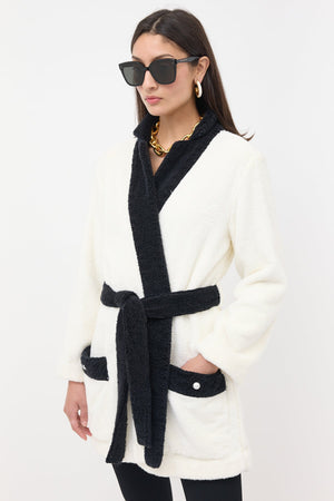 Chanel navy wide relax silhouette trouser with white band to the side.