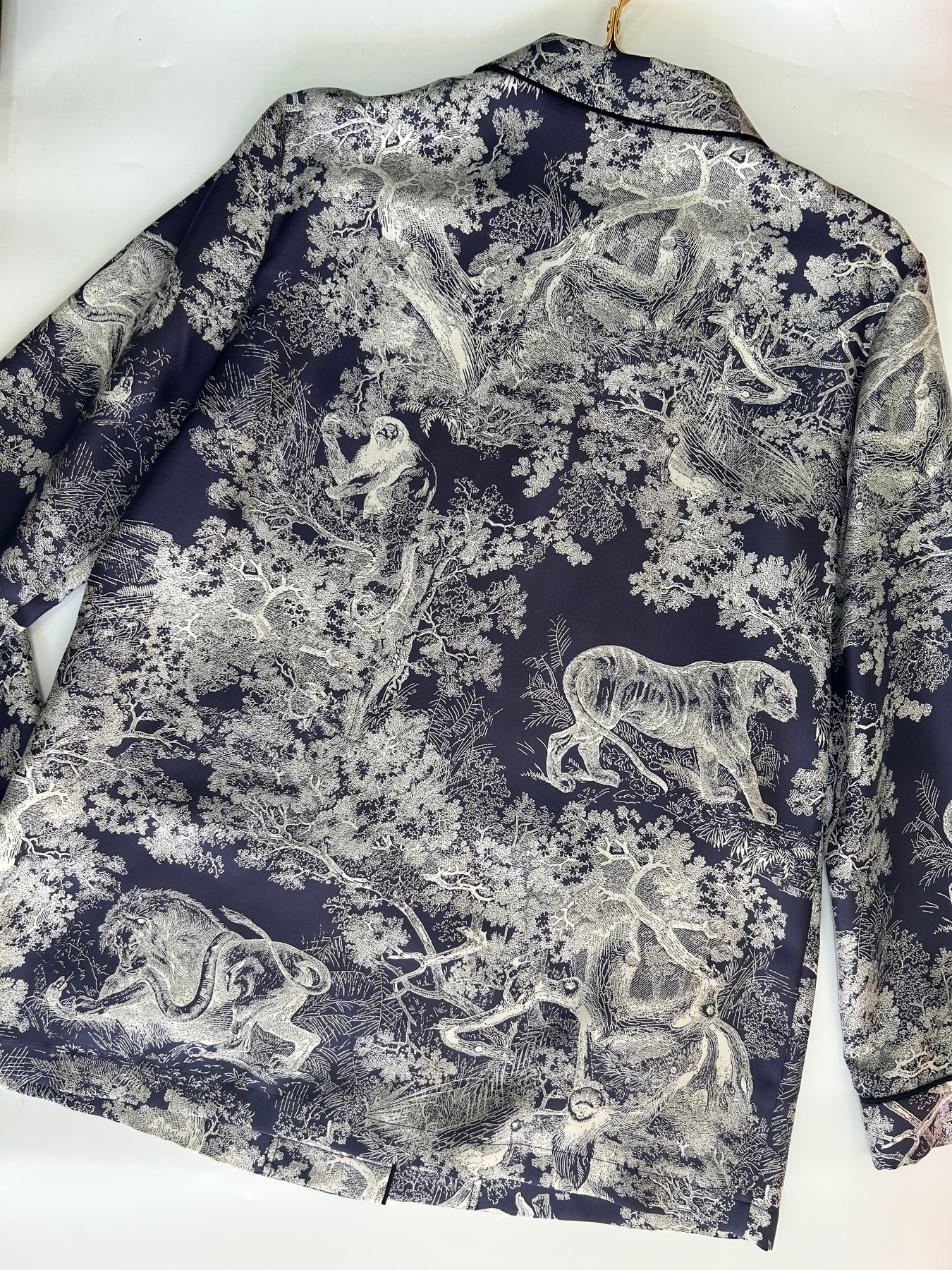 CHRISTIAN DIOR Silk blouse with buttons front closure made of 100% silk in blue Toile De Jouy print, it is cut oversized for an elegant and comfortable look.