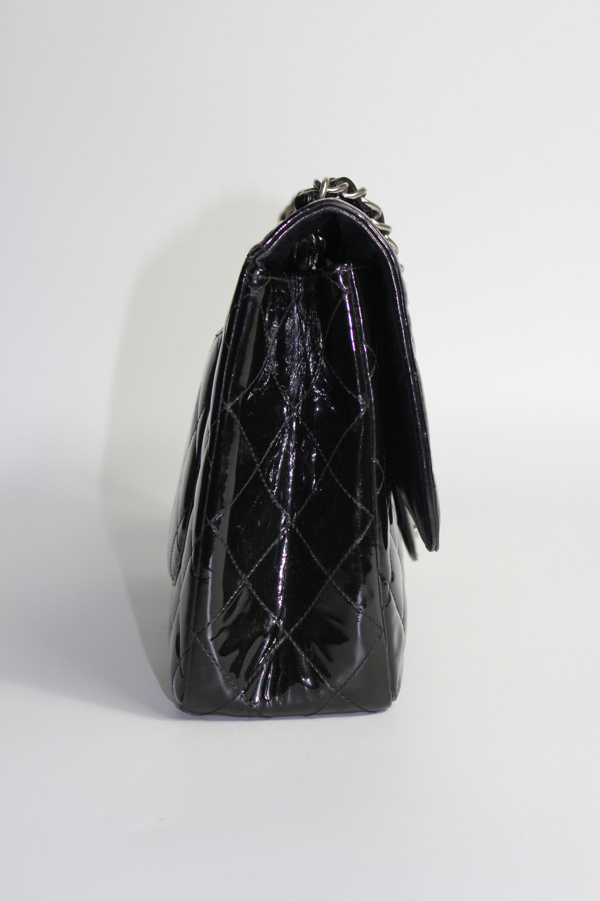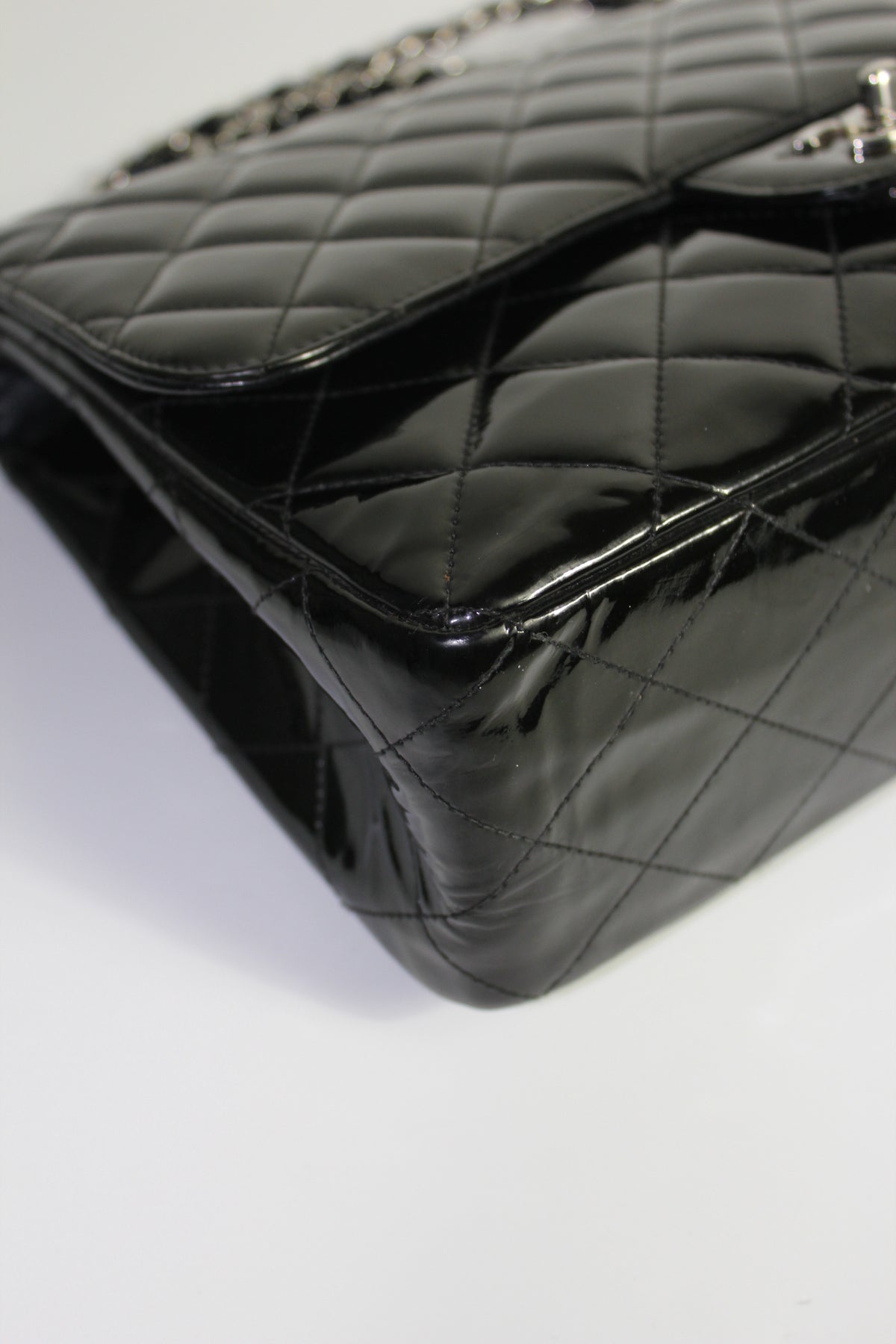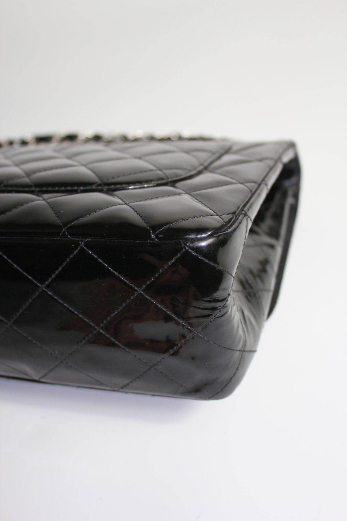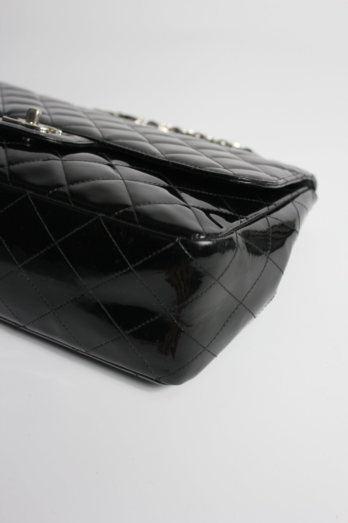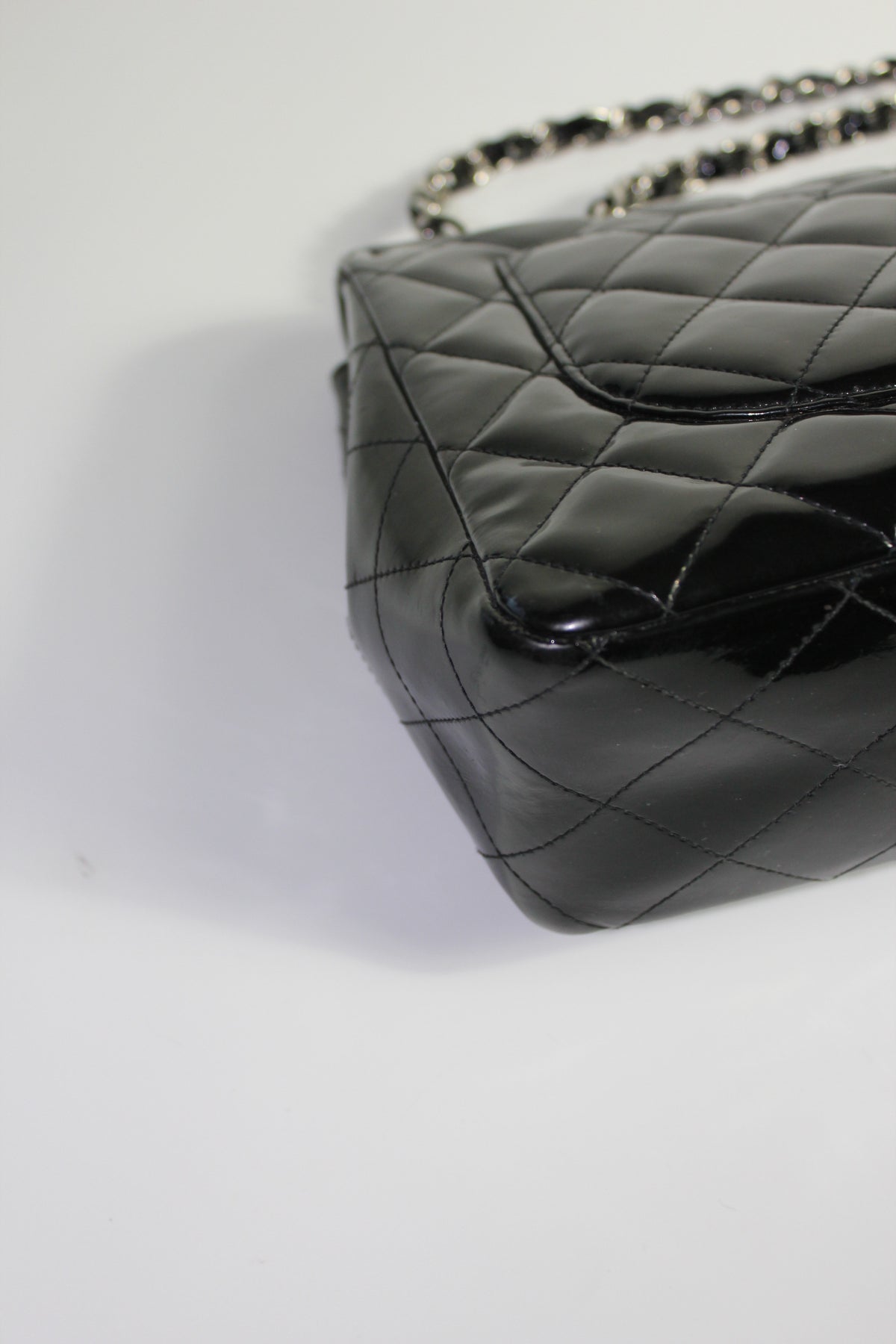 CHANEL Classic Jumbo Single Flap Black Patent Leather With Silver Hardware