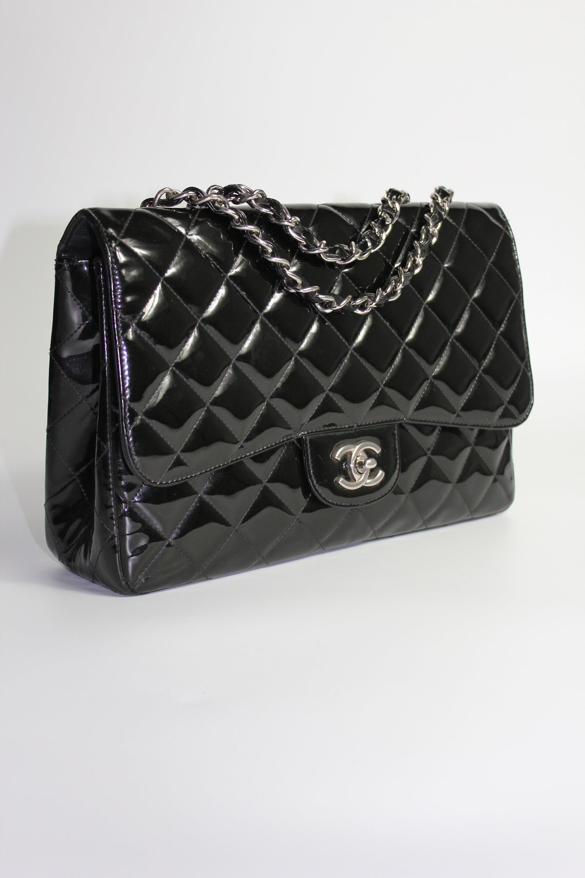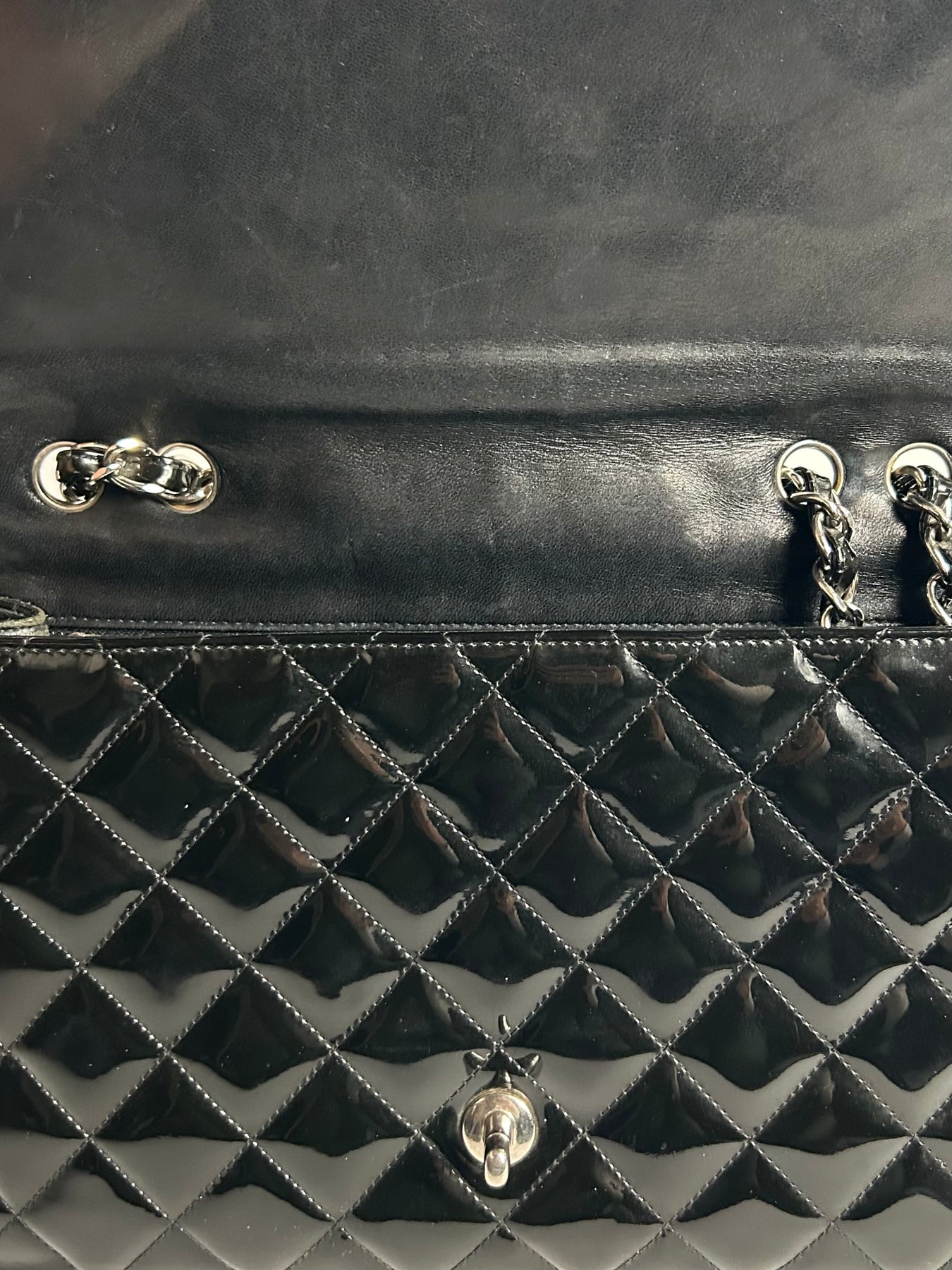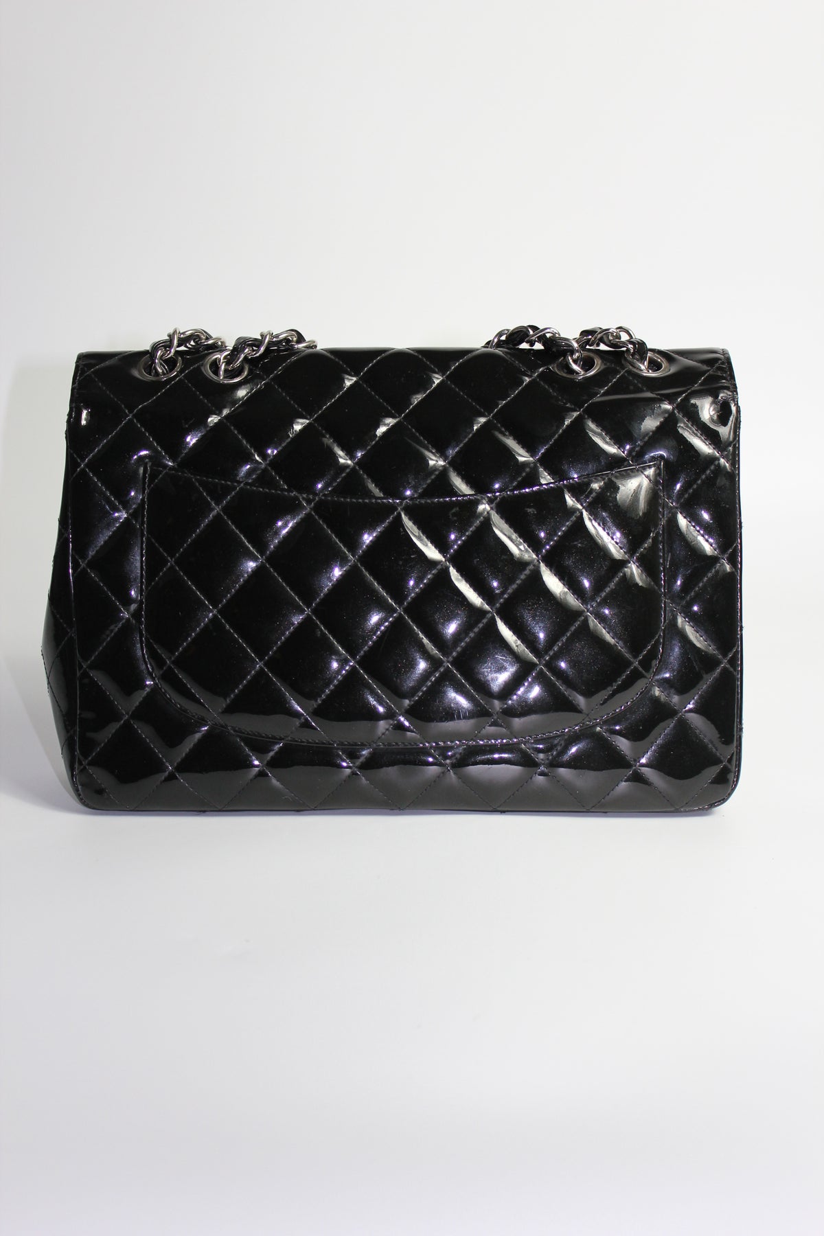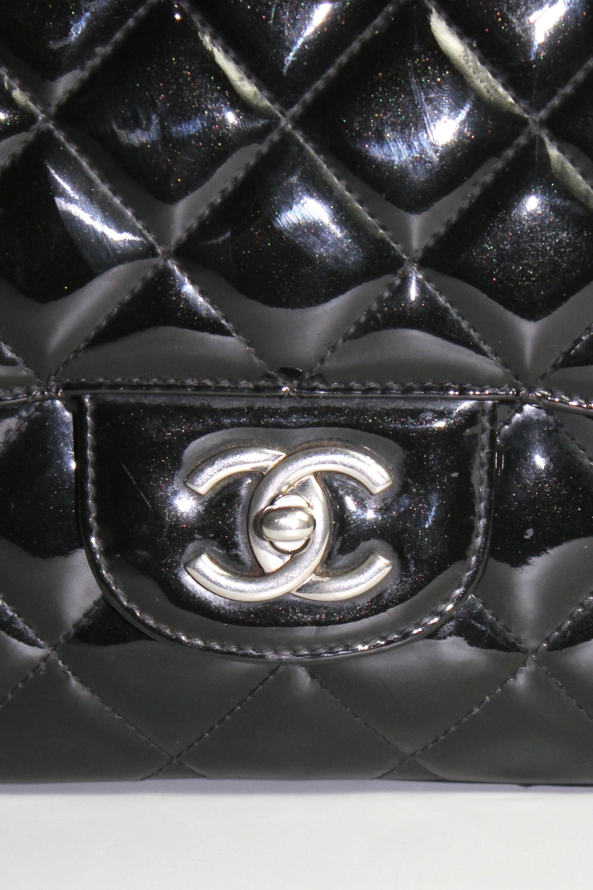 CHANEL Classic Jumbo Single Flap Black Patent Leather With Silver Hardware