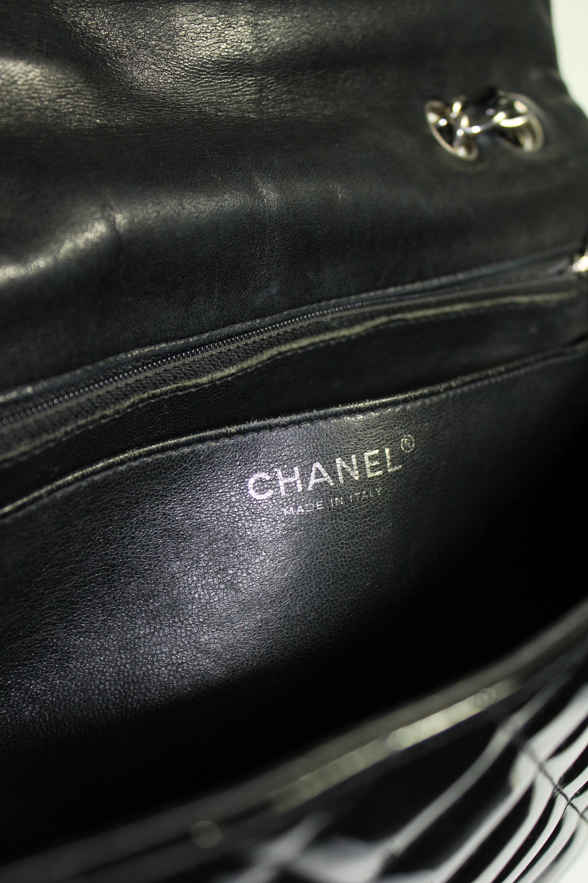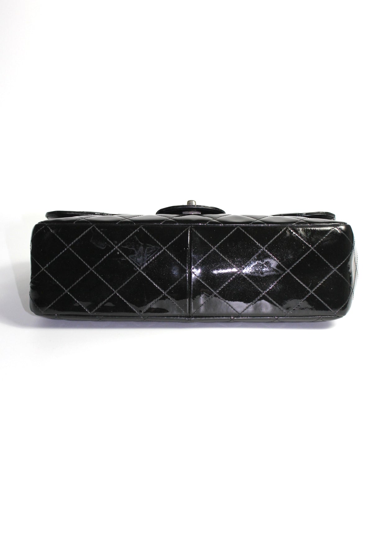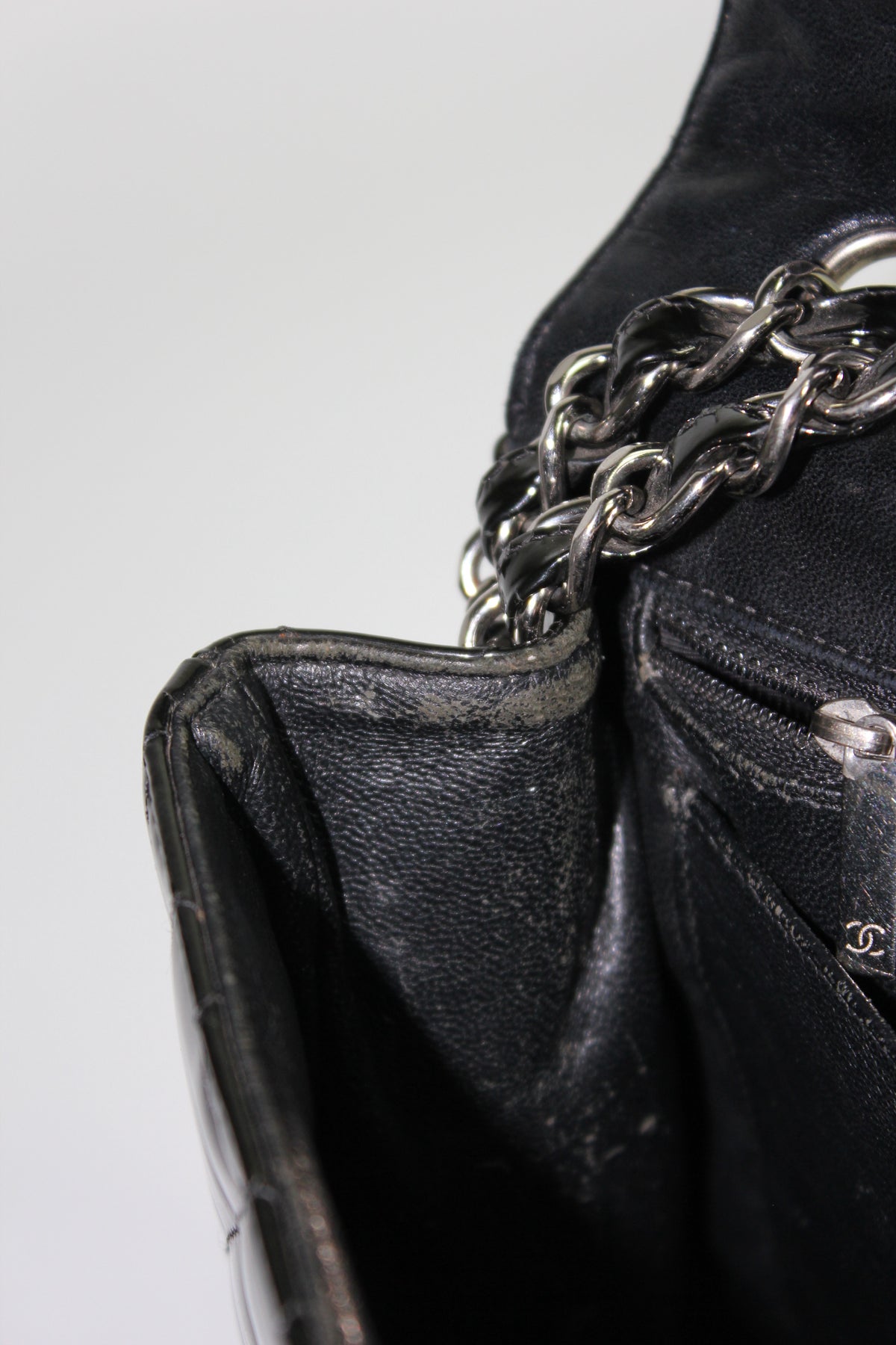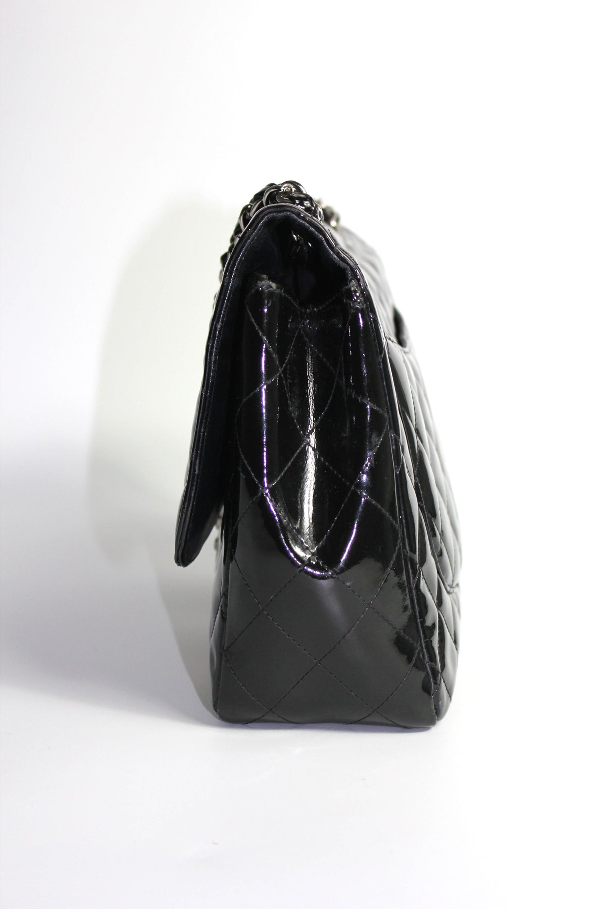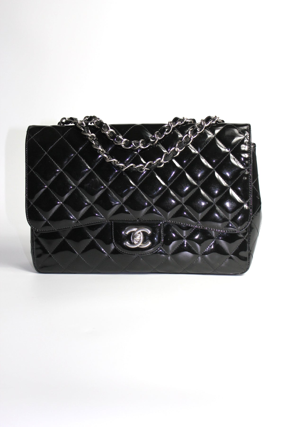 CHANEL Classic Jumbo Single Flap Black Patent Leather With Silver Hardware