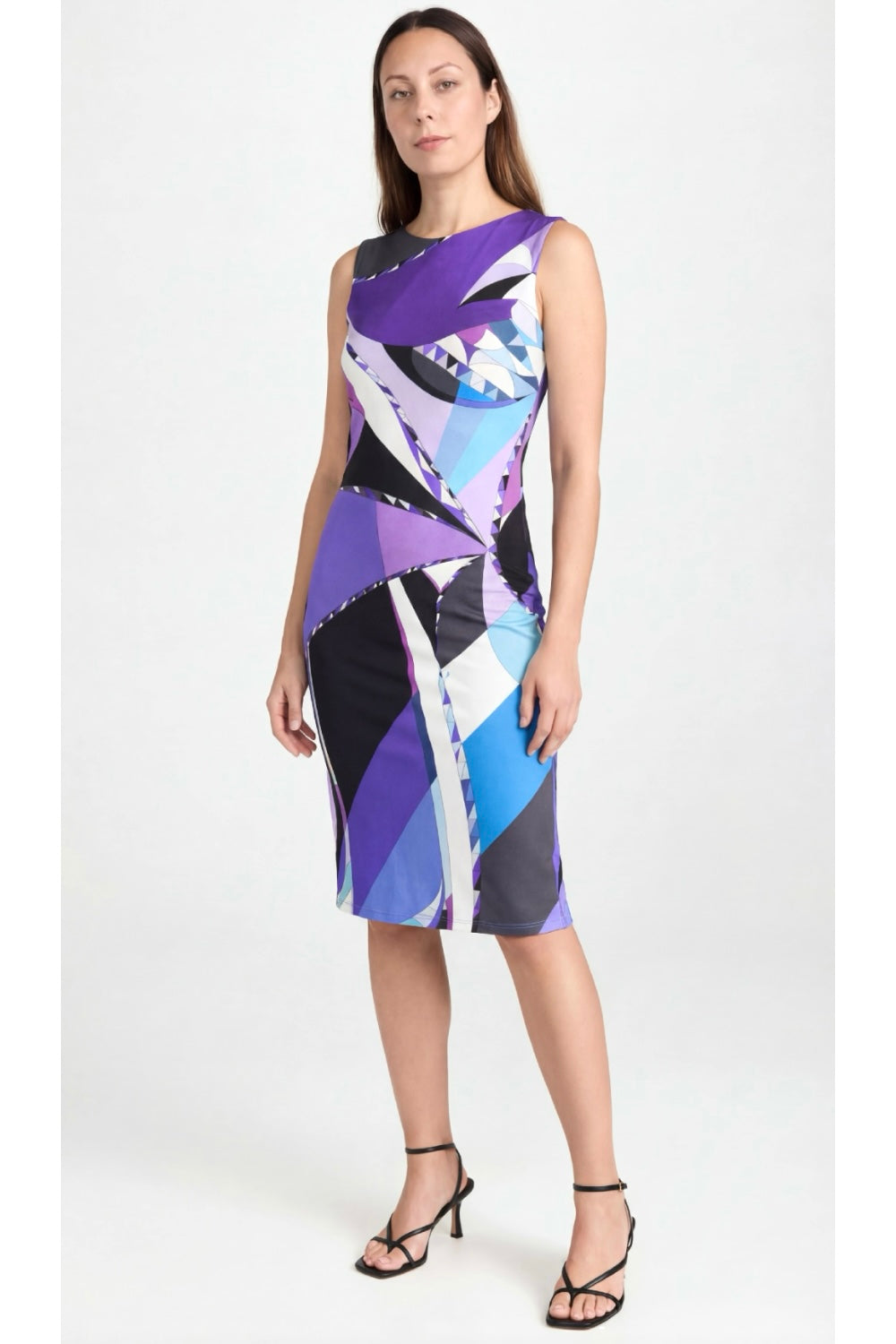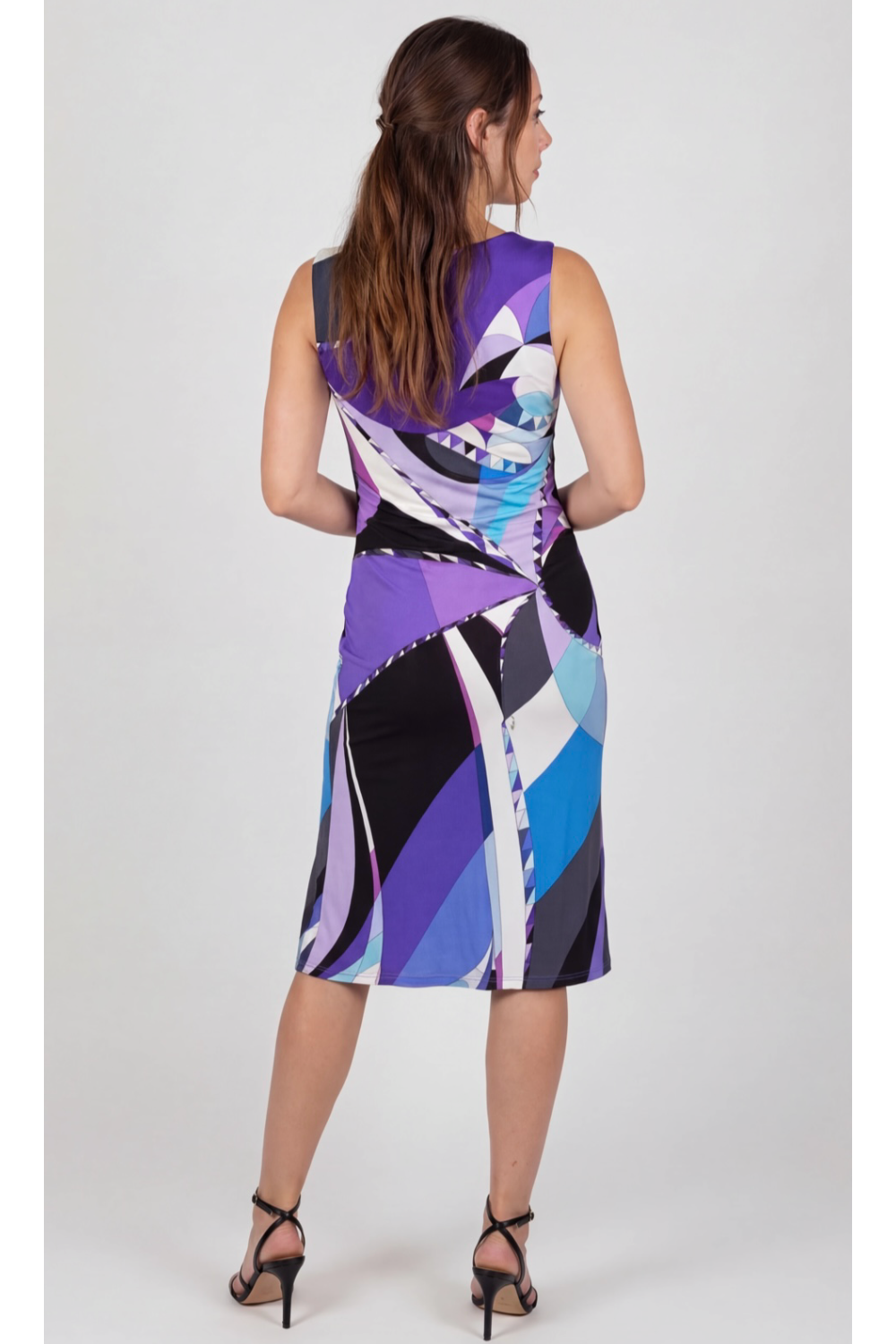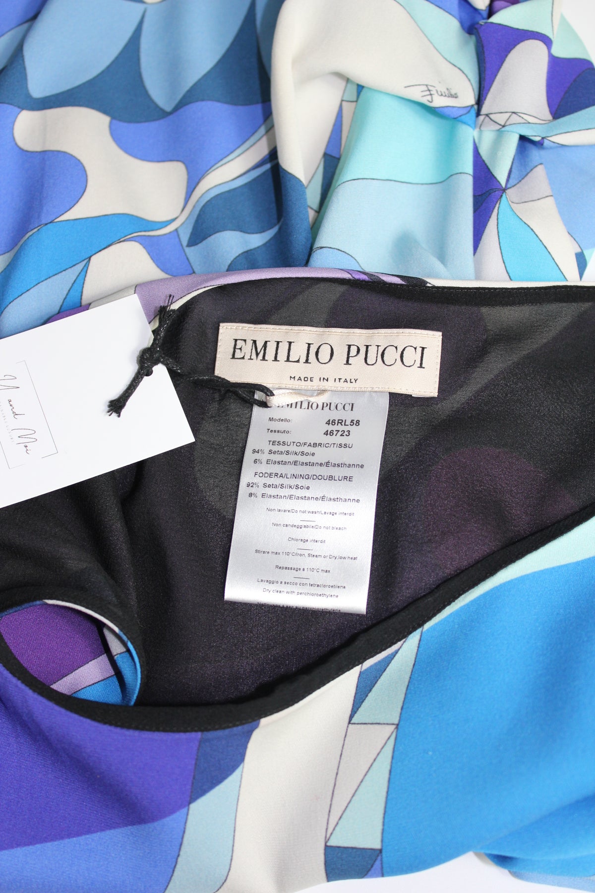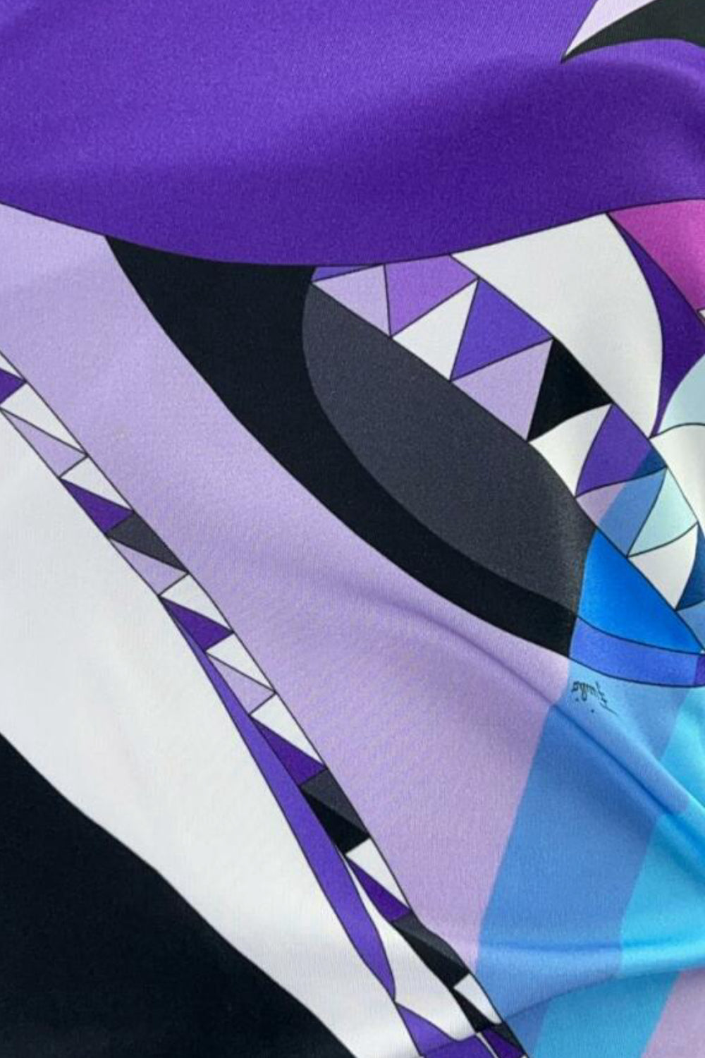 The print that says spring/ summer is in the air- This beautiful EMILIO PUCCI dress features the timeless and highly recognizable Pucci print in blue, purple, black and white with discreet signature logo. A classic and elegant cut that is timeless.