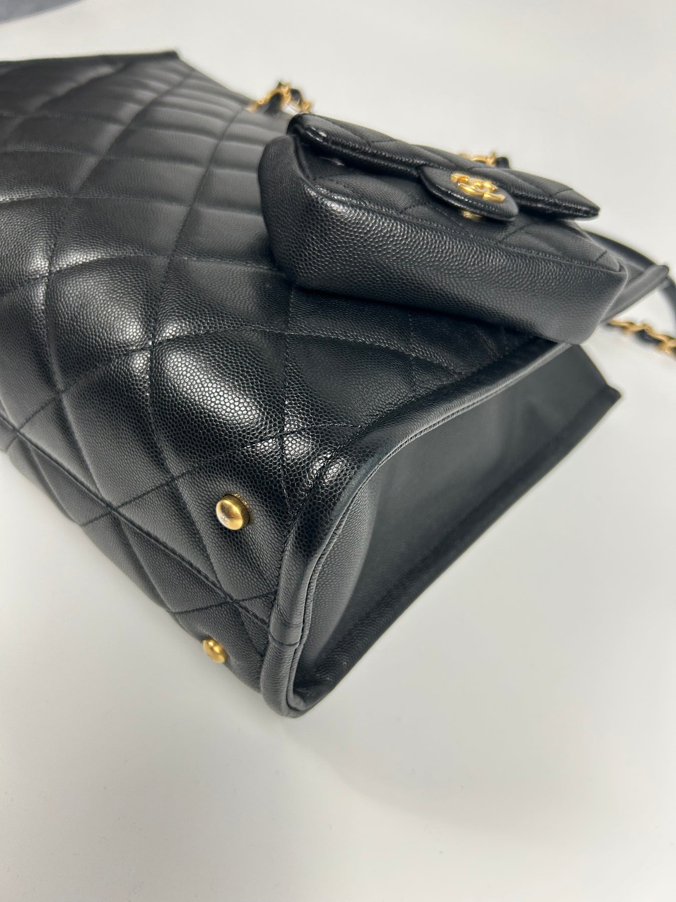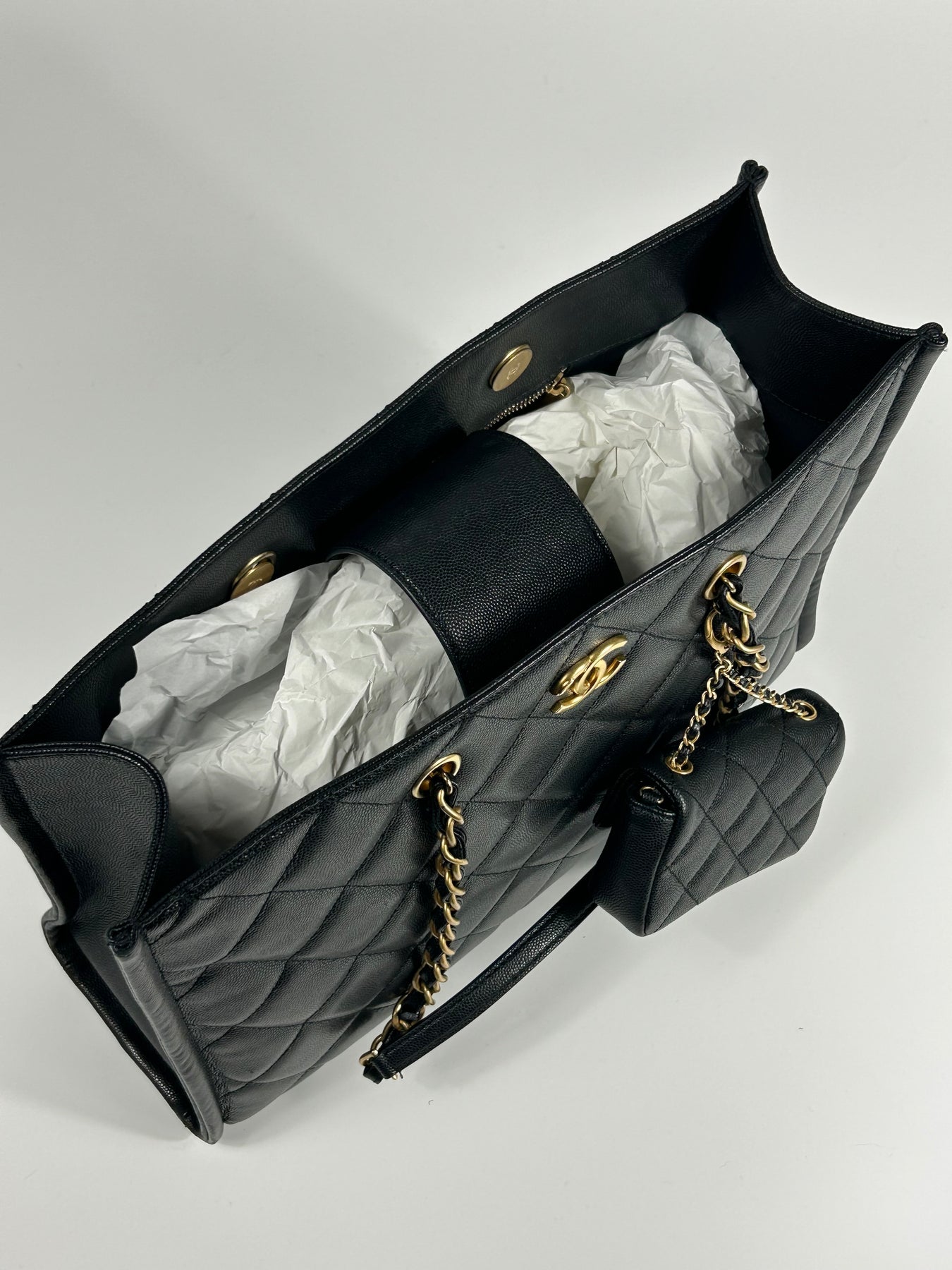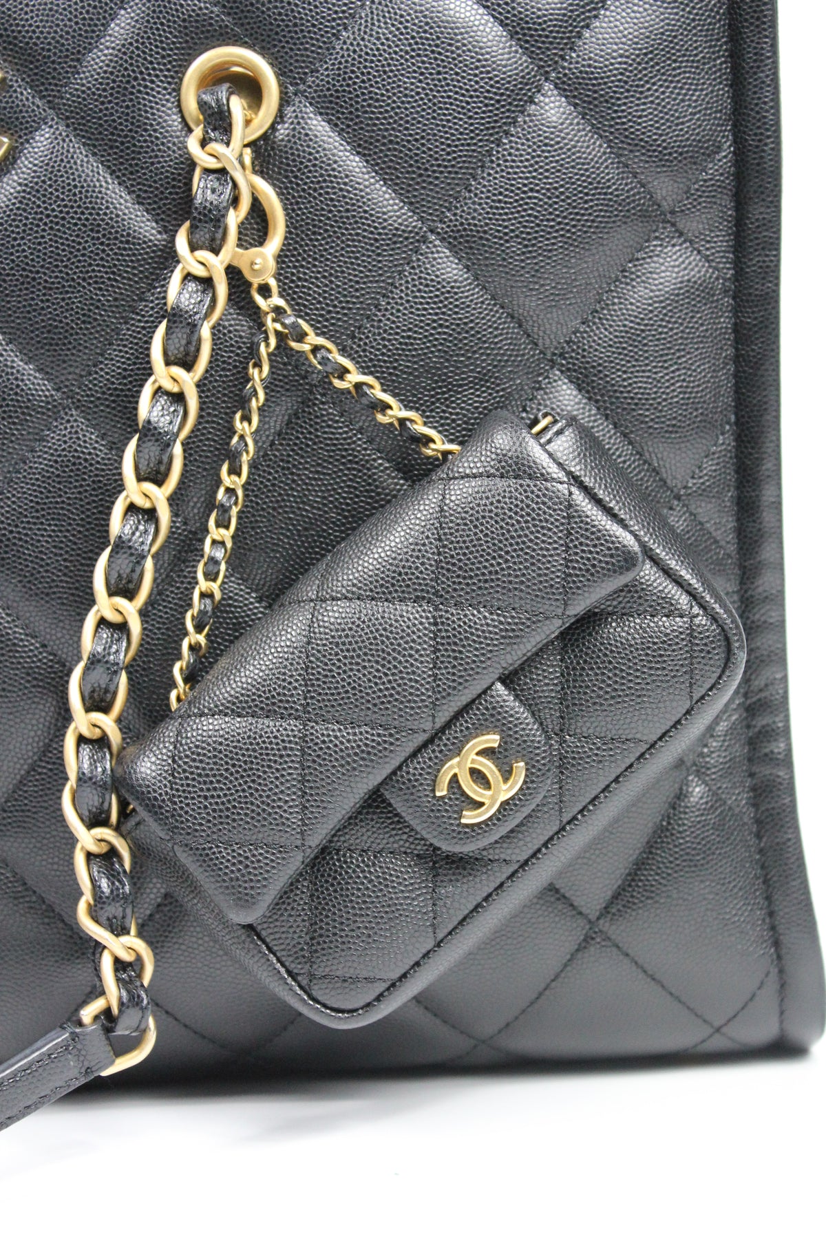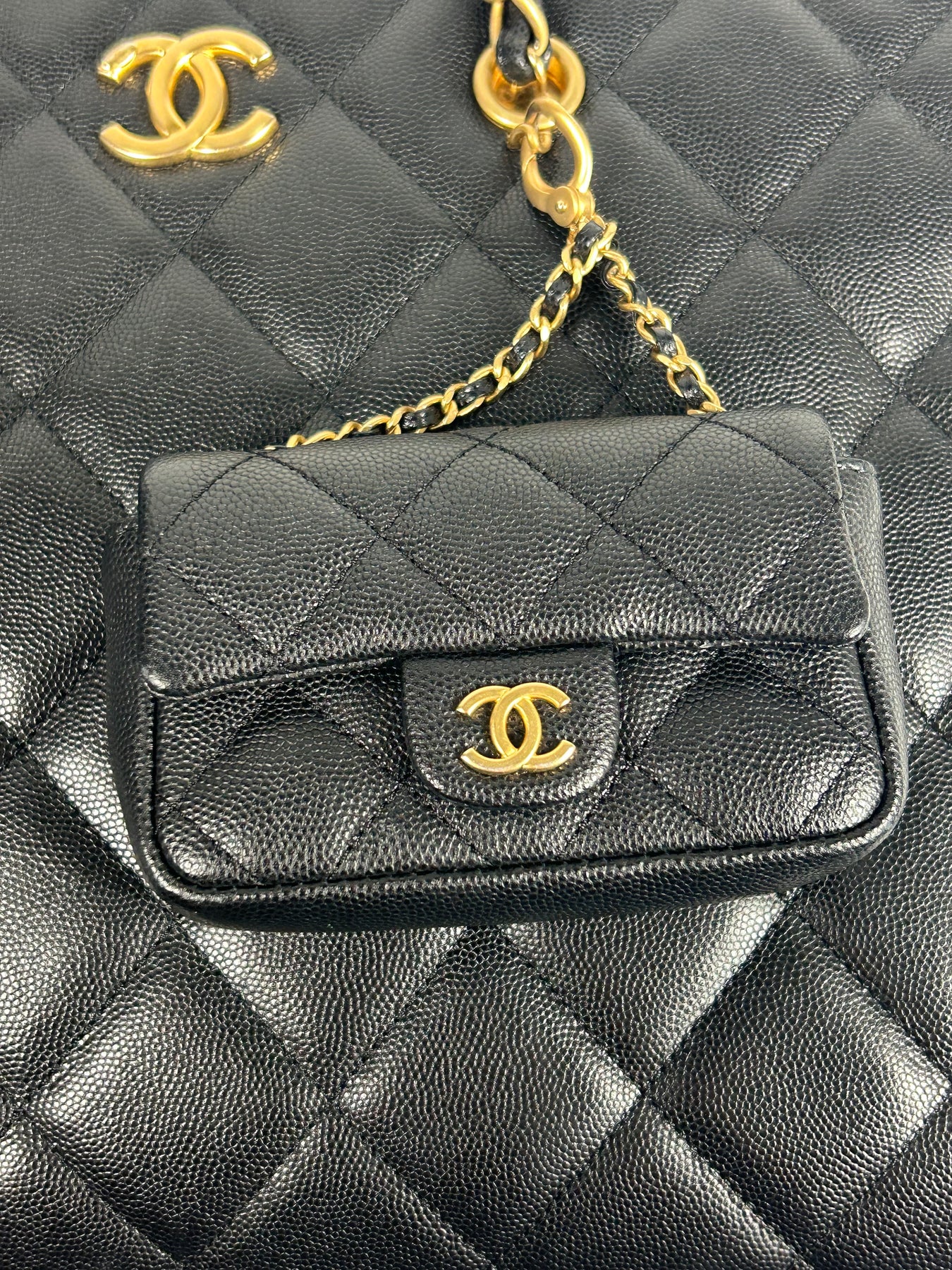 CHANEL Grand Shopper Tote Caviar Leather with Gold Hardware and Micro Purse Detachable Full set with receipt