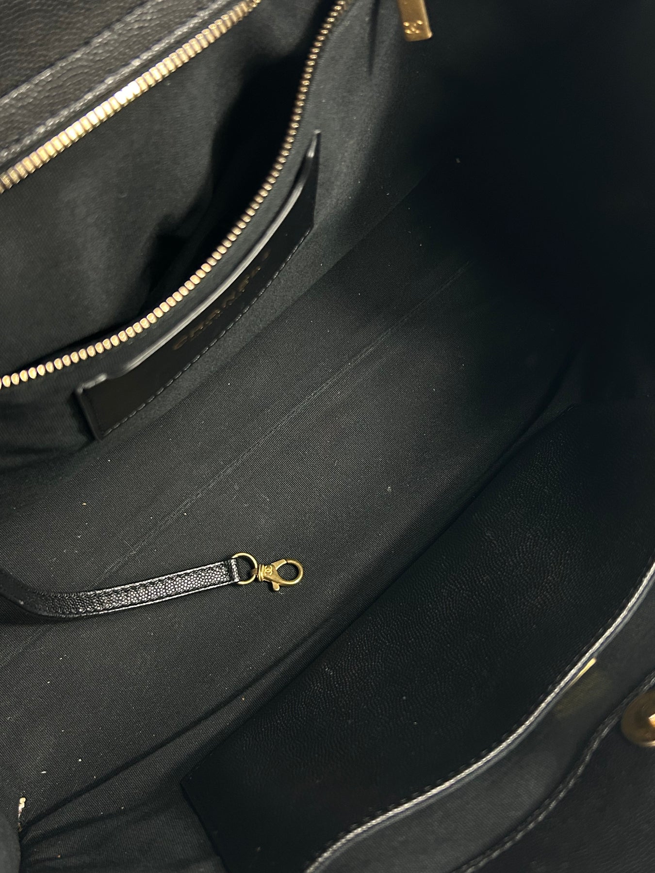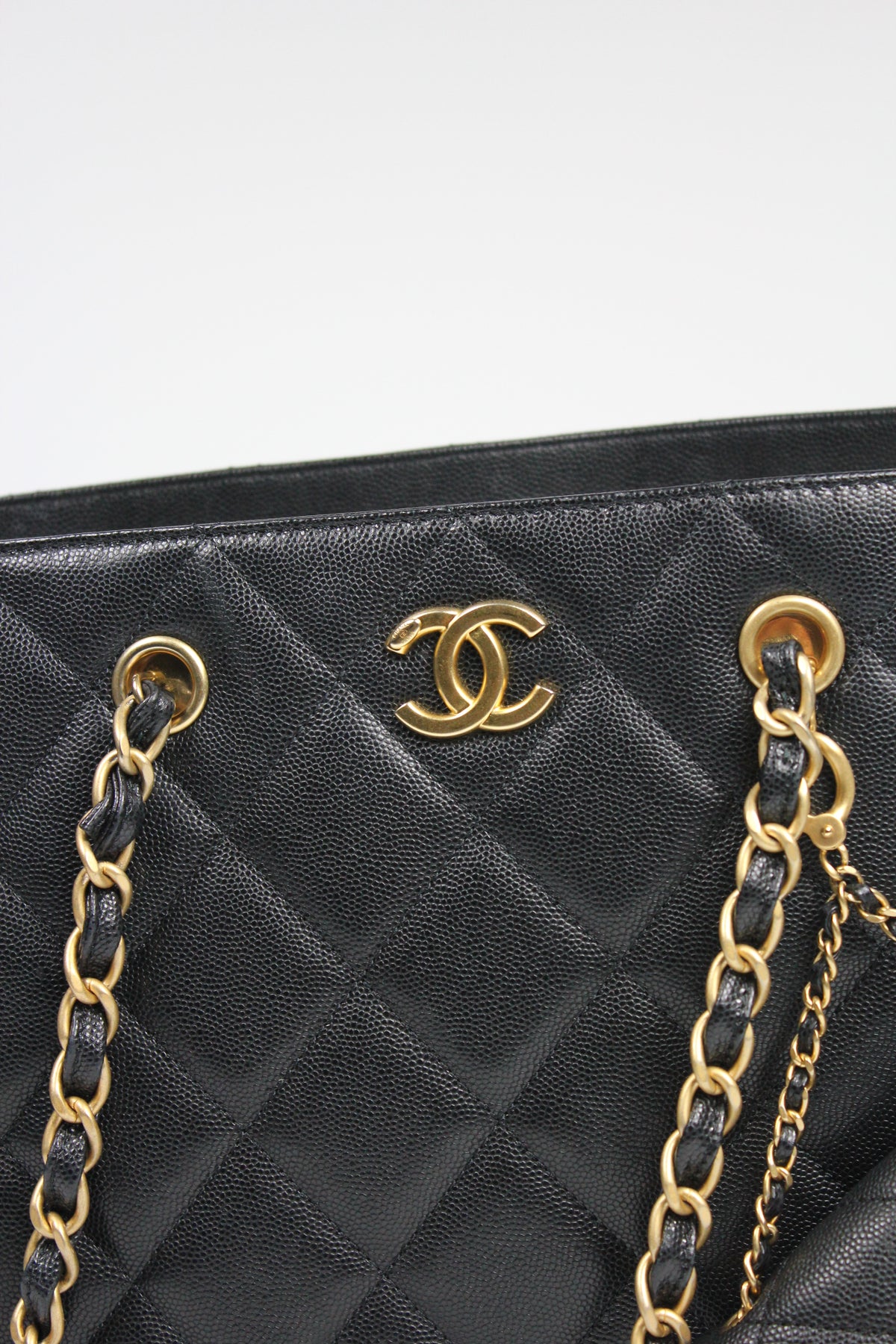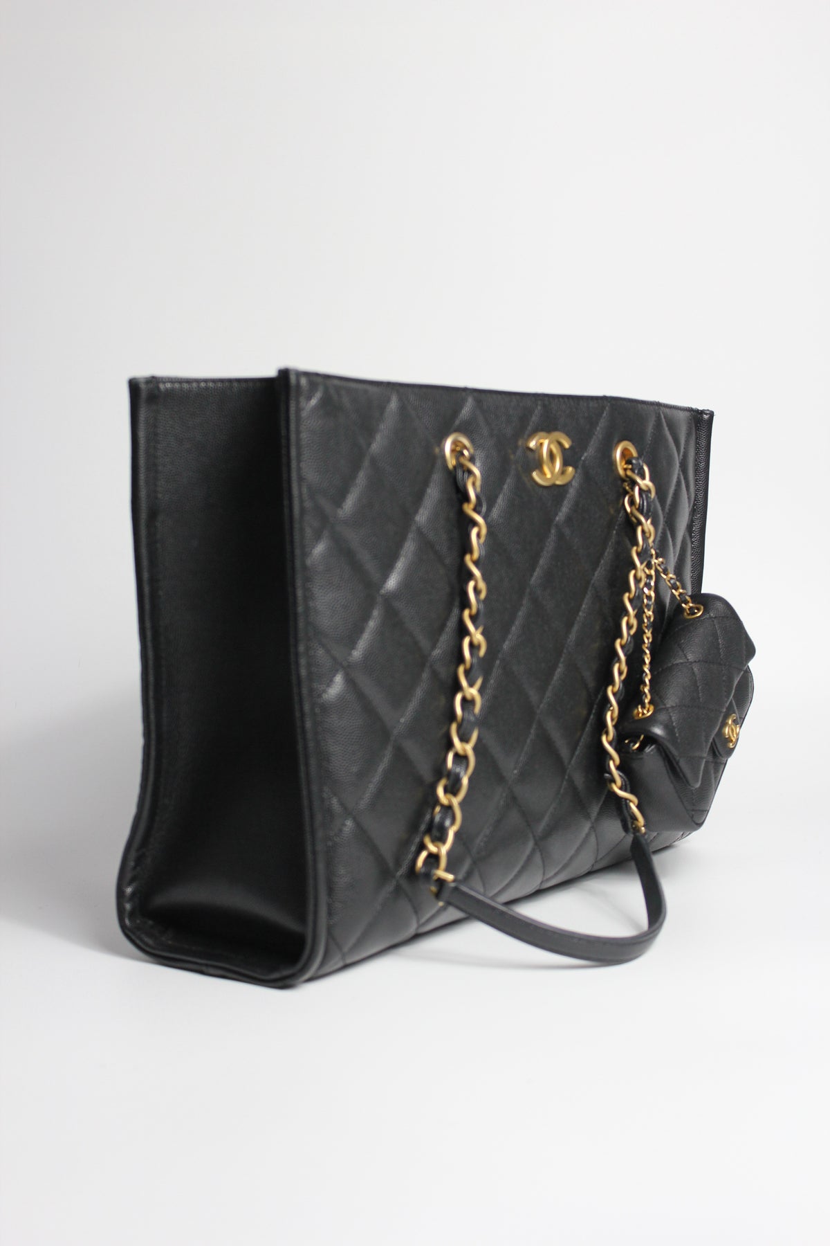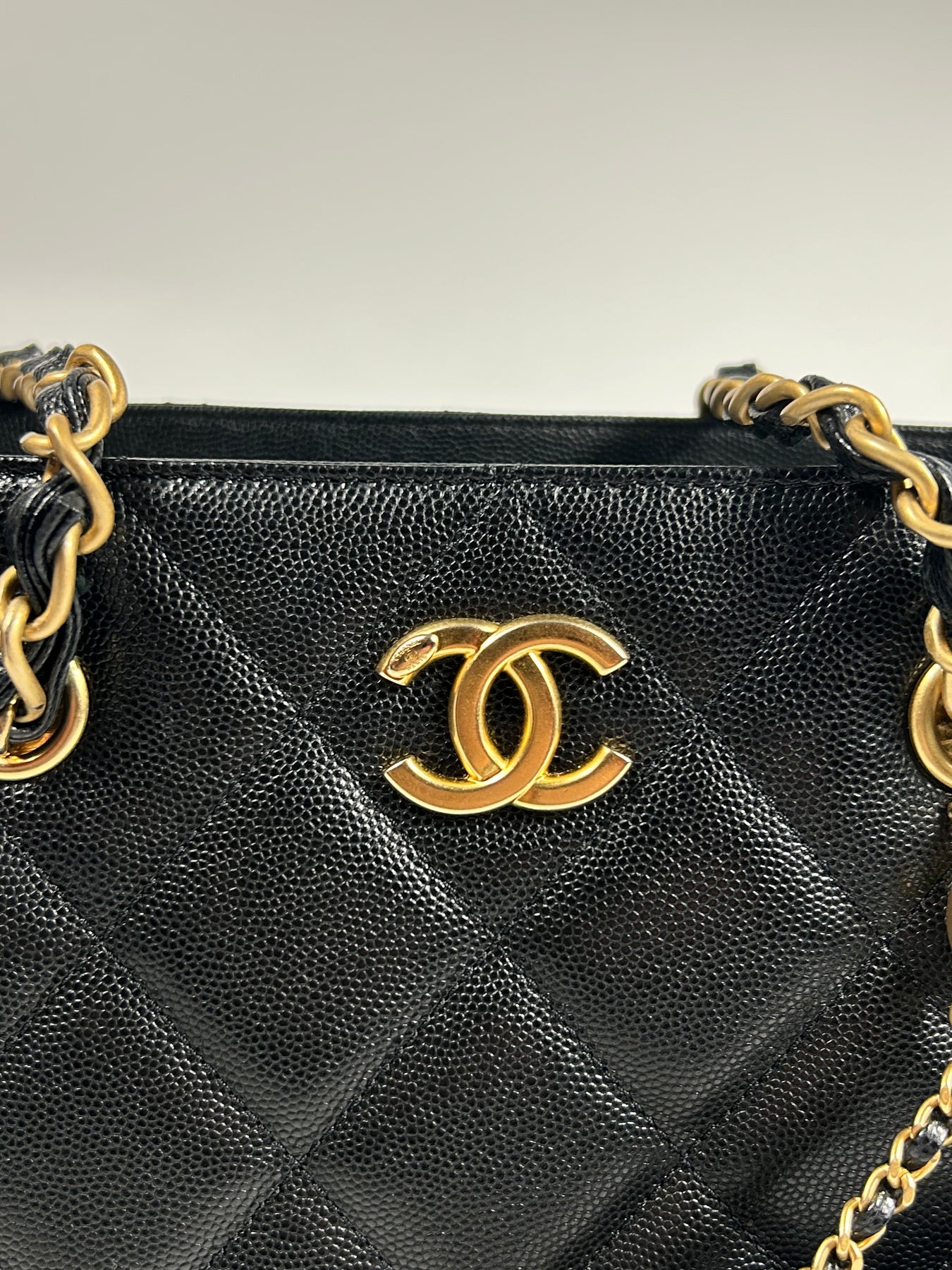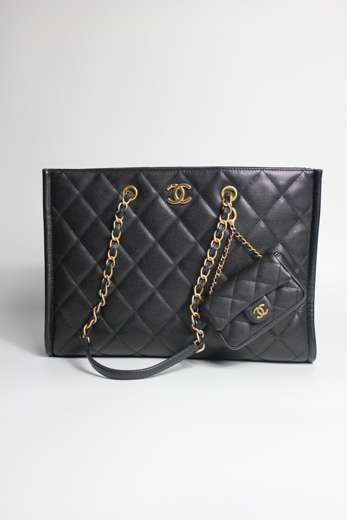 CHANEL Grand Shopper Tote Caviar Leather with Gold Hardware and Micro Purse Detachable Full set with receipt