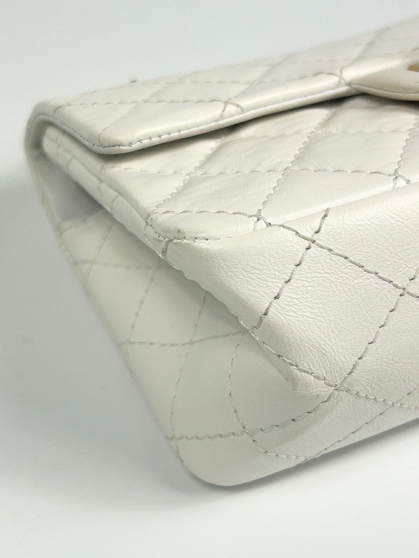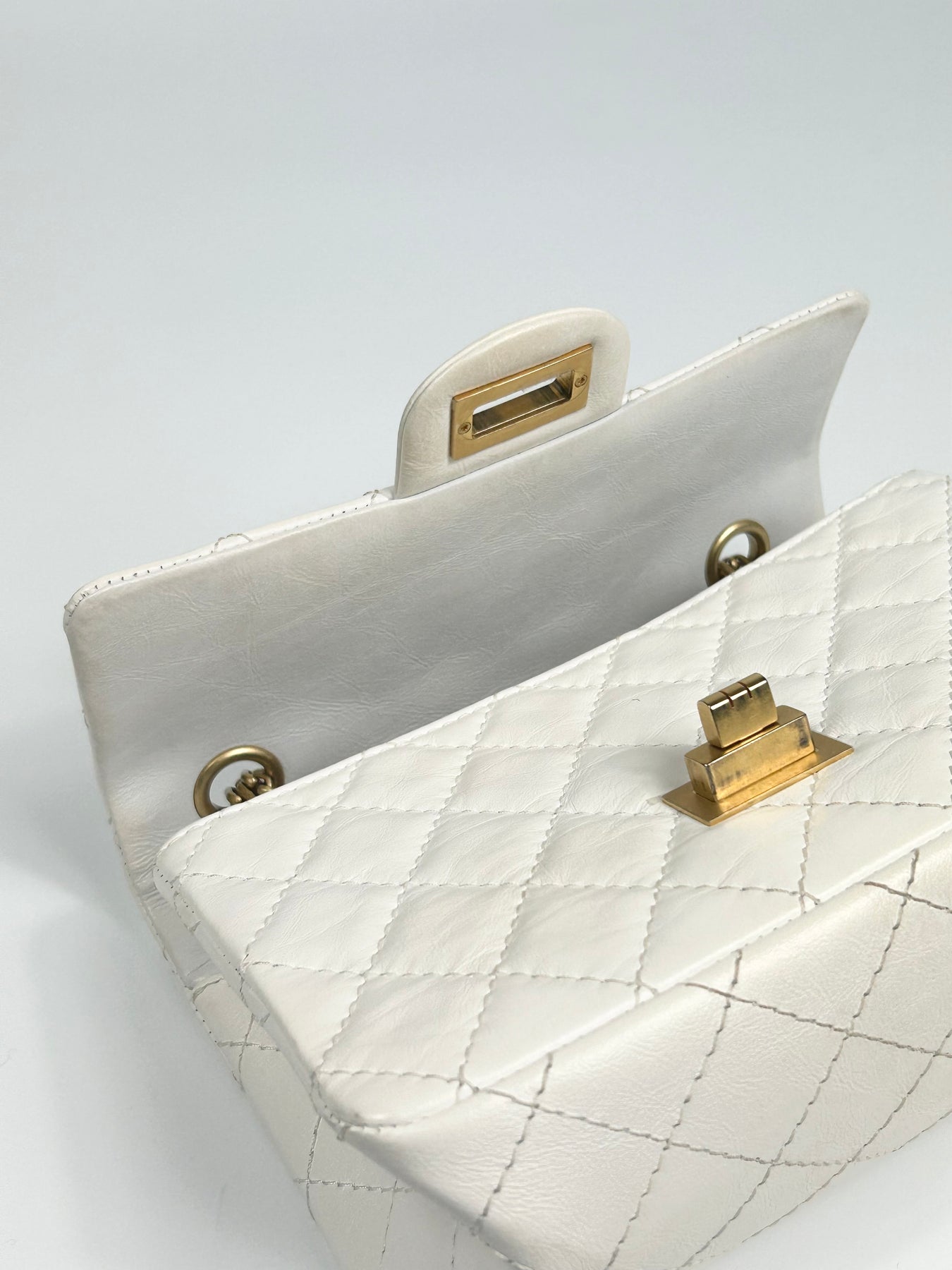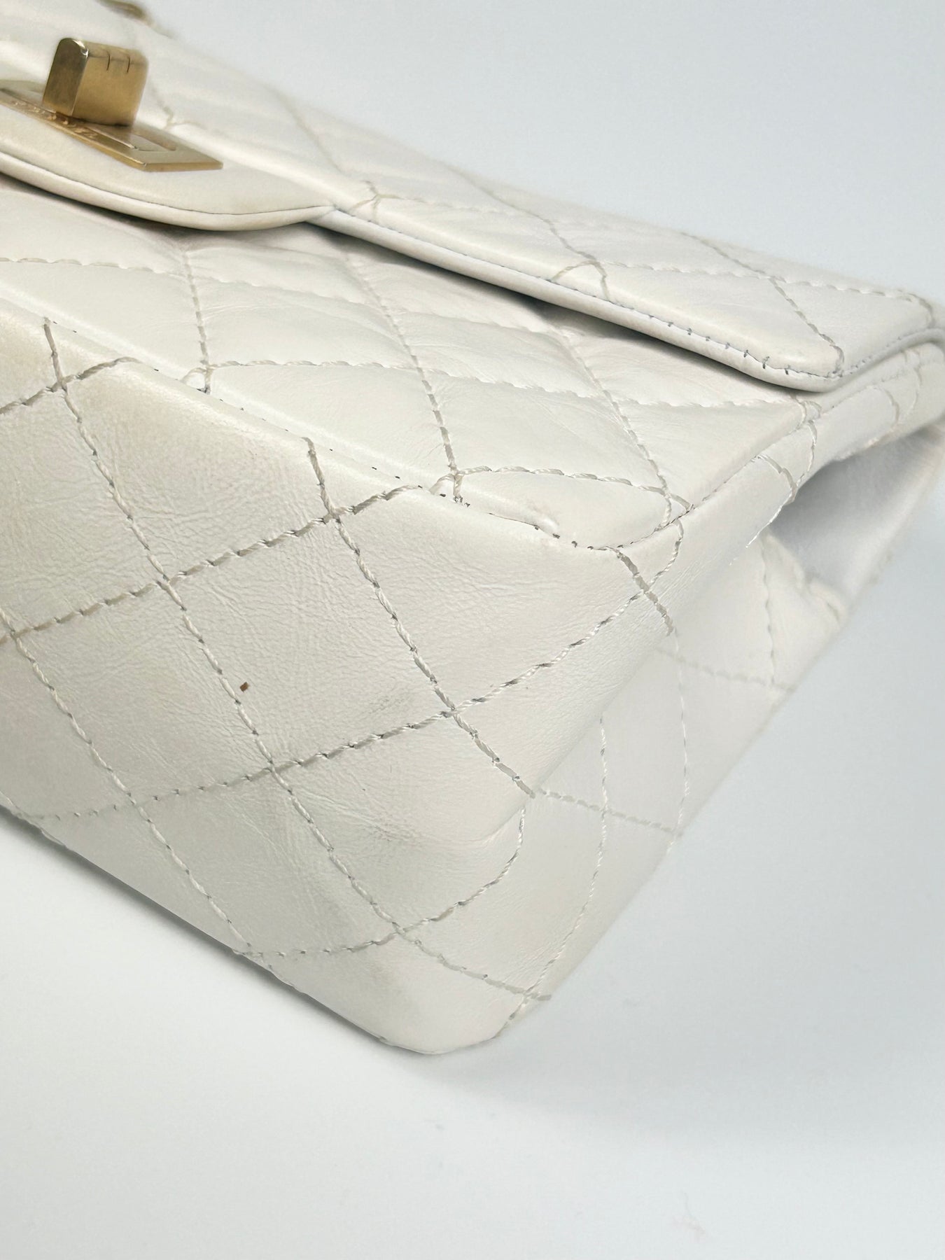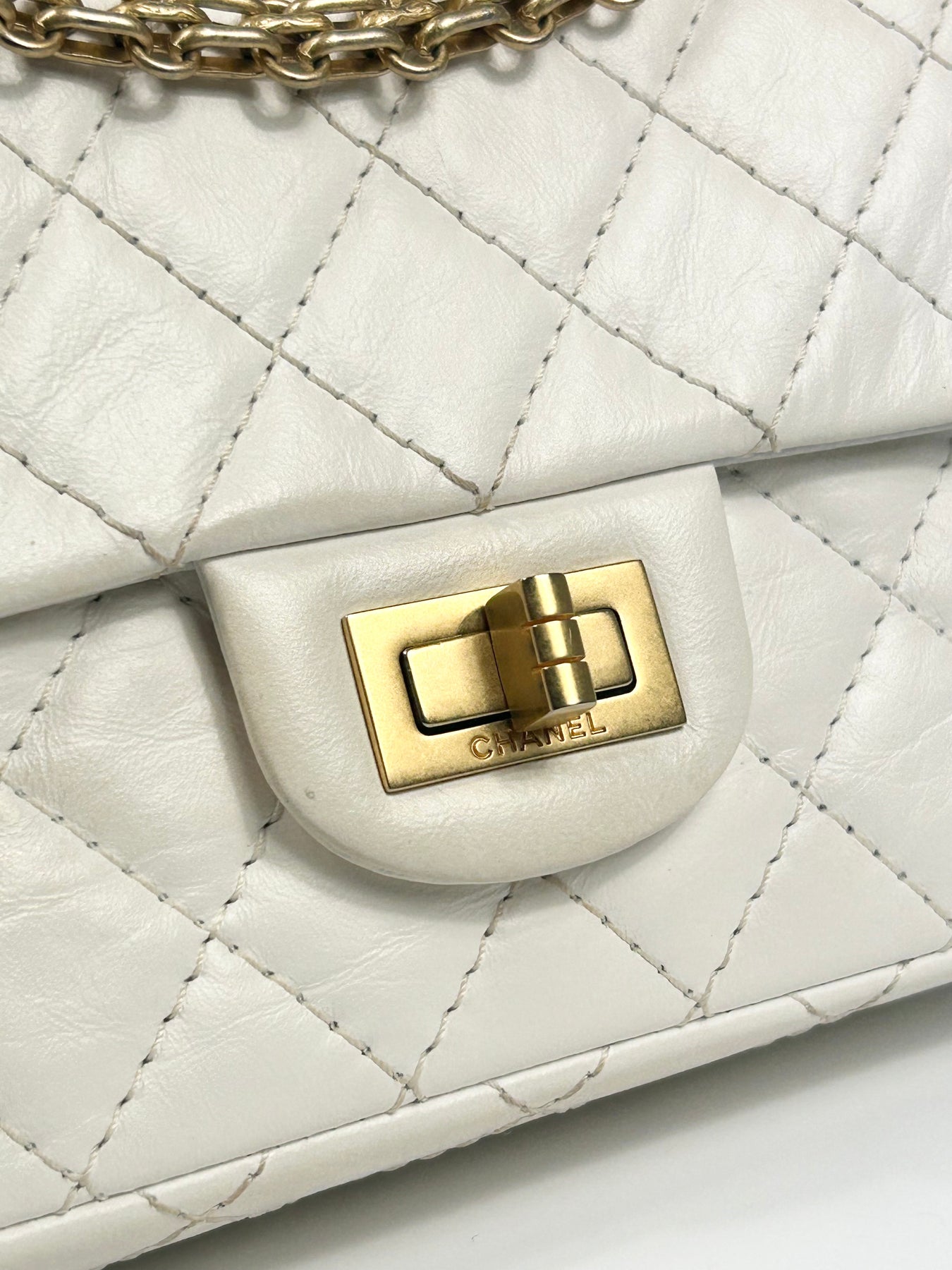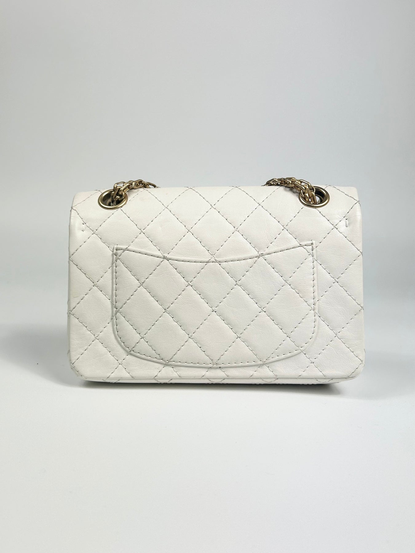 CHANEL Mini Reissue 224 2:55 Flap White Aged Calfskin Antique Gold Hardware full set with receipt