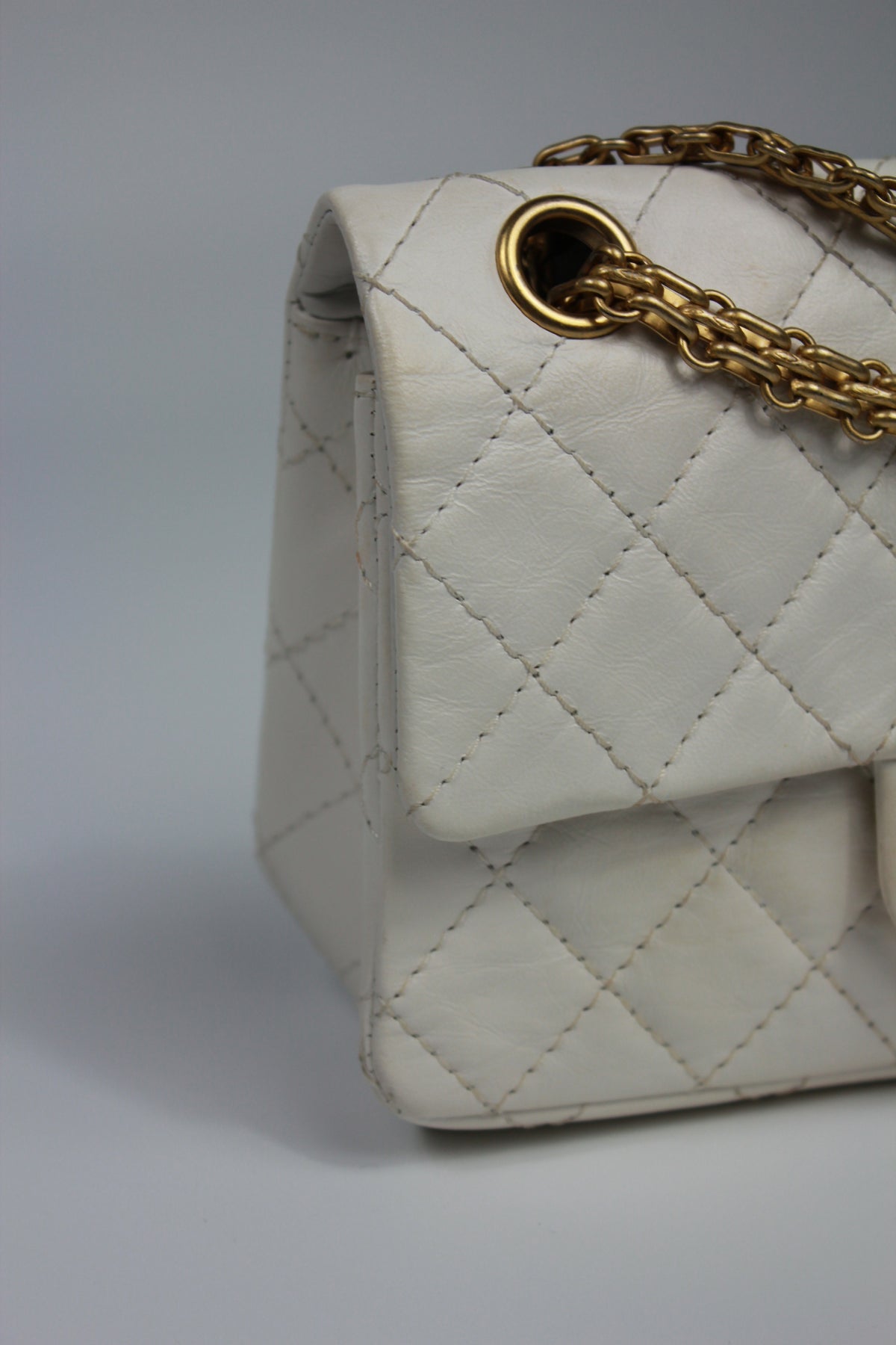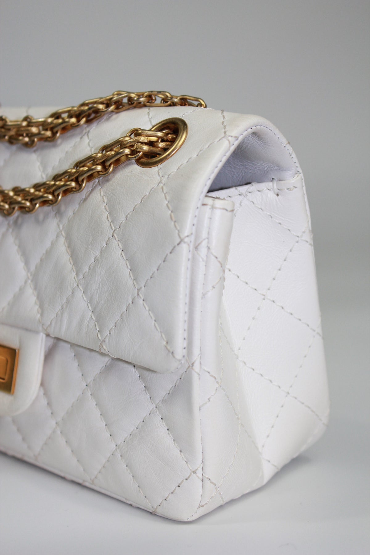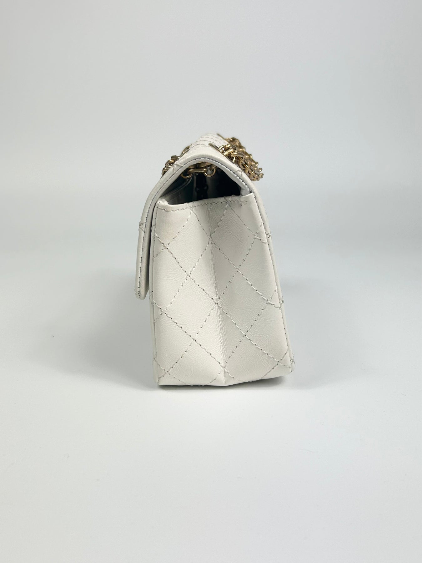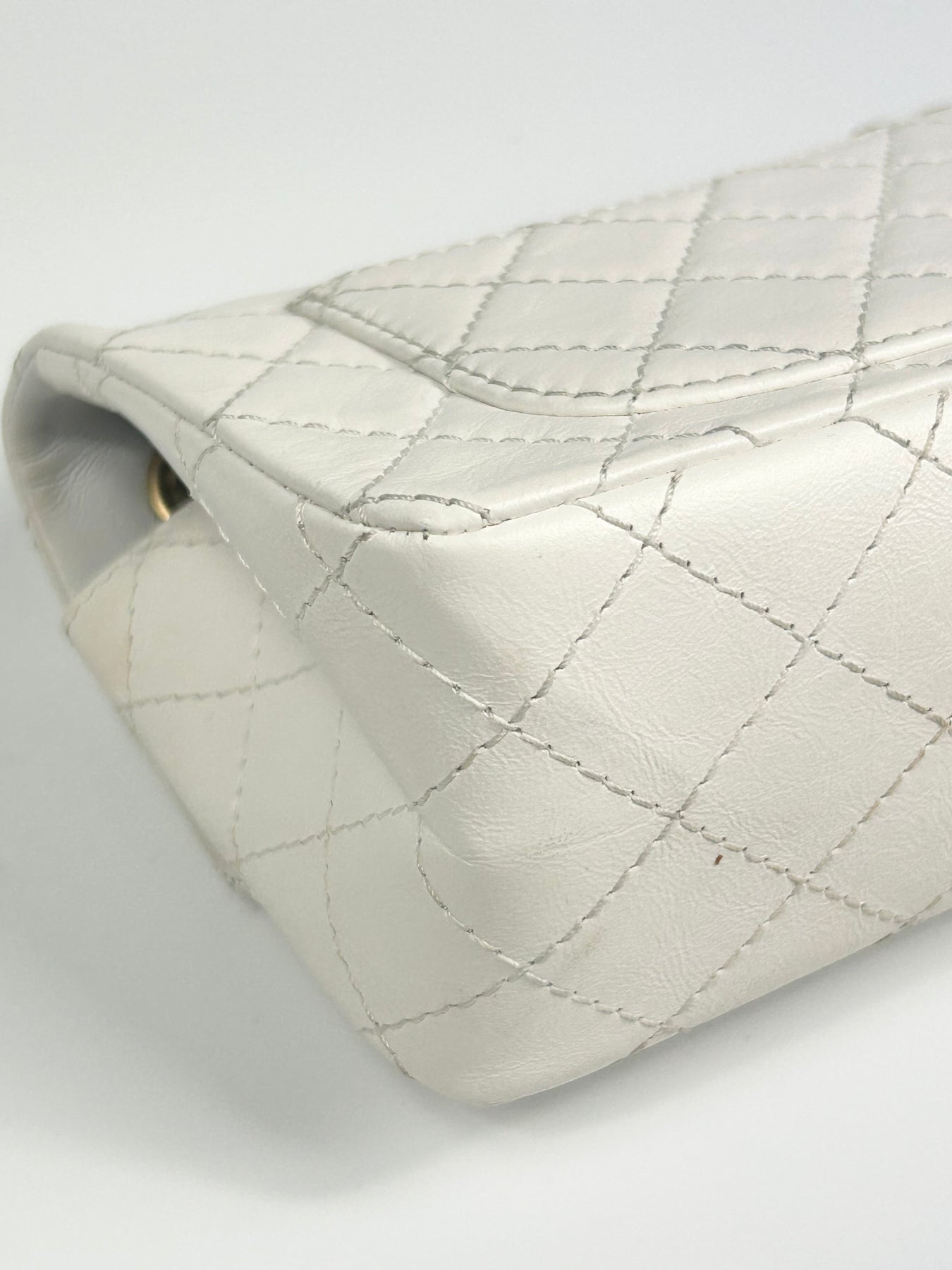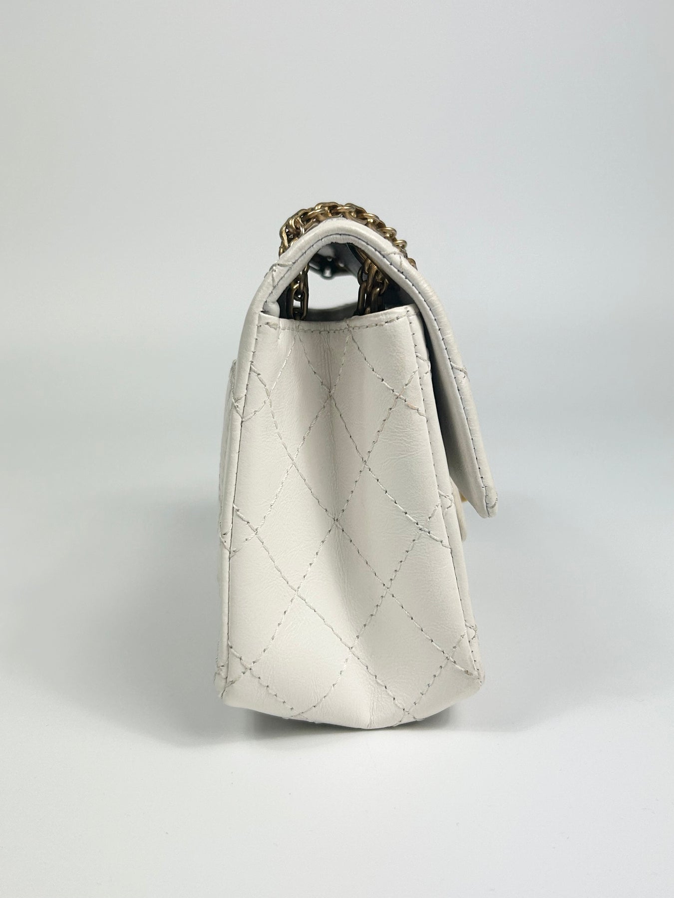CHANEL Mini Reissue 224 2:55 Flap White Aged Calfskin Antique Gold Hardware full set with receipt