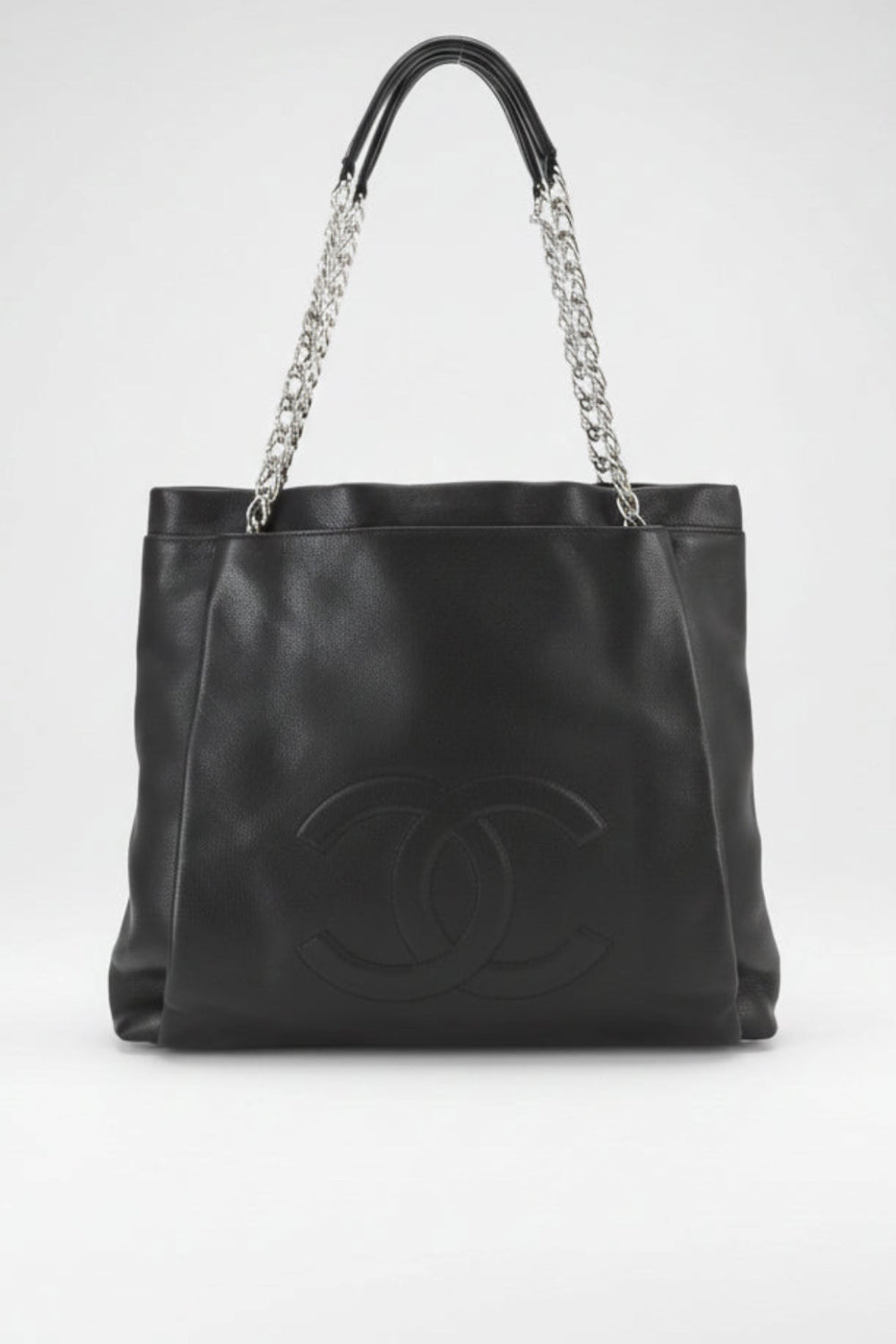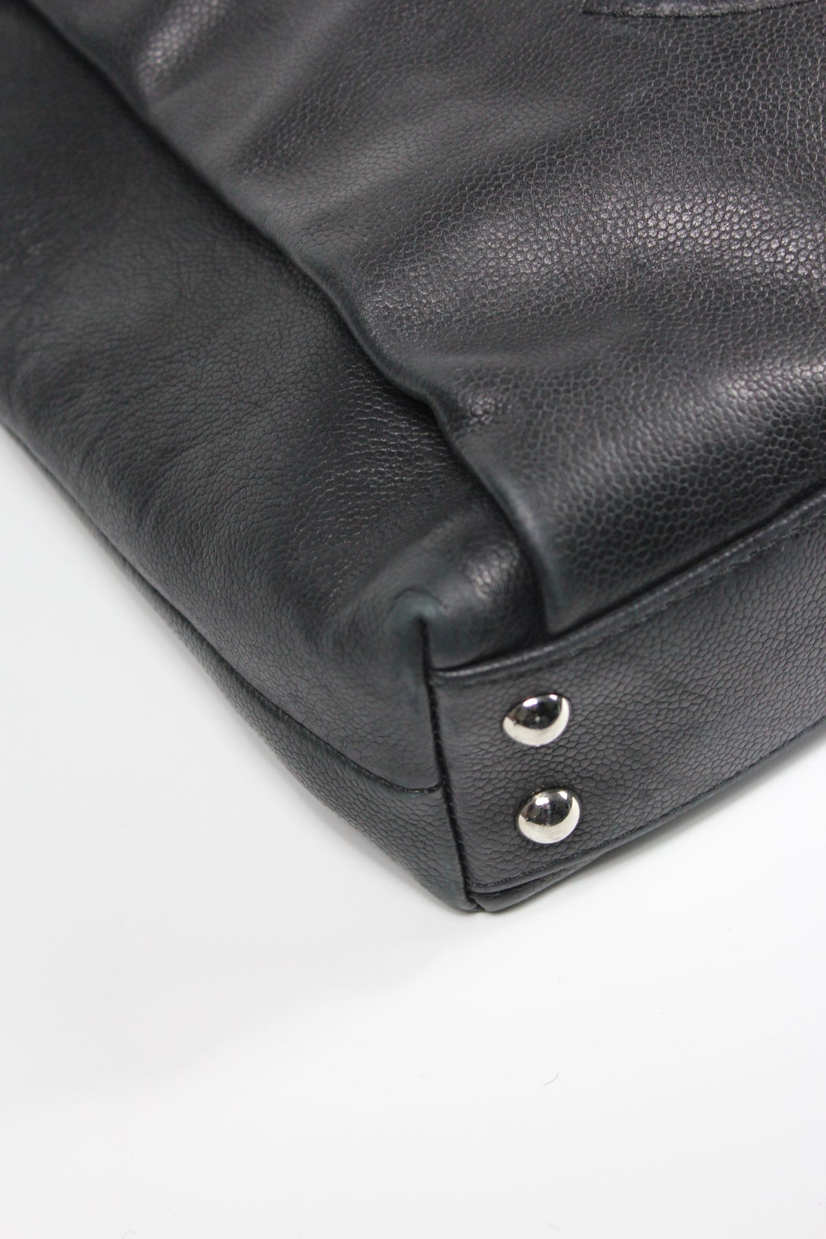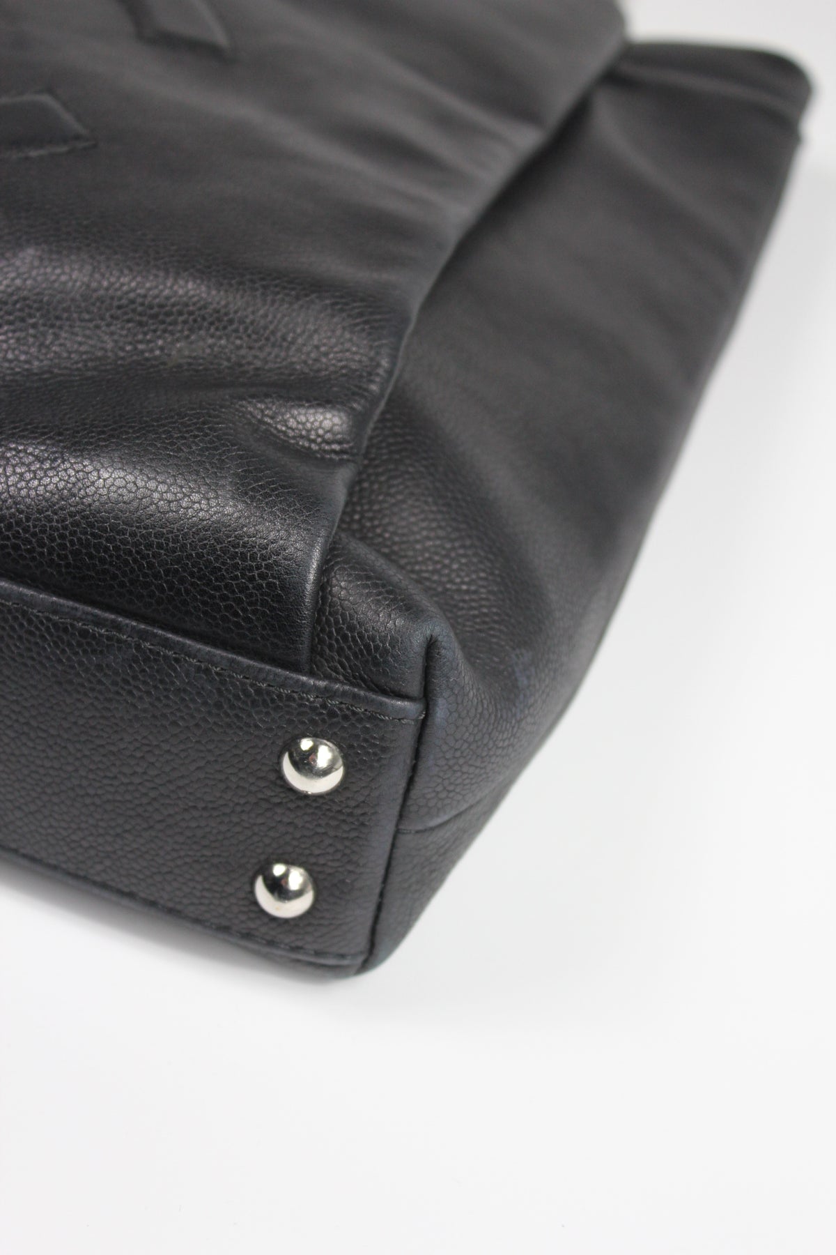 CHANEL XL Tuck Tote Caviar Leather Handbag with Silver Hardware and CC logo Stitching