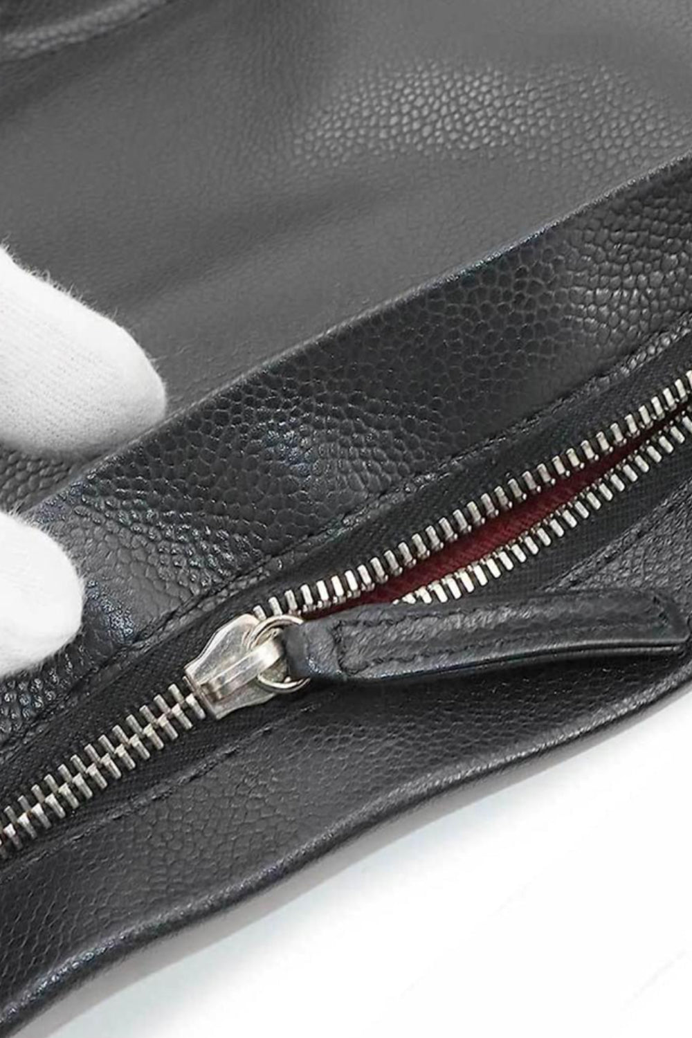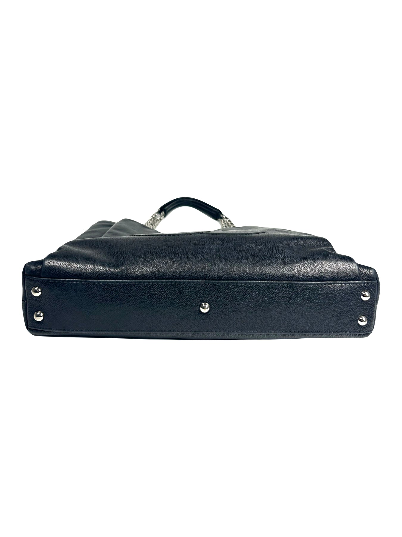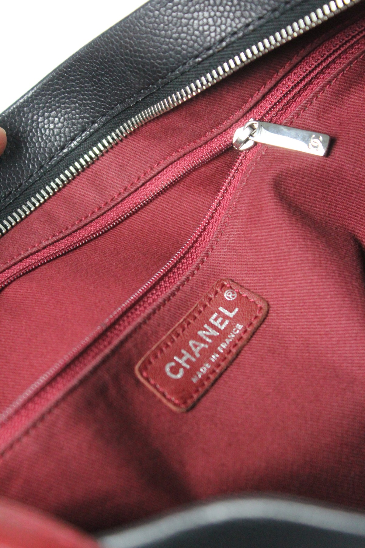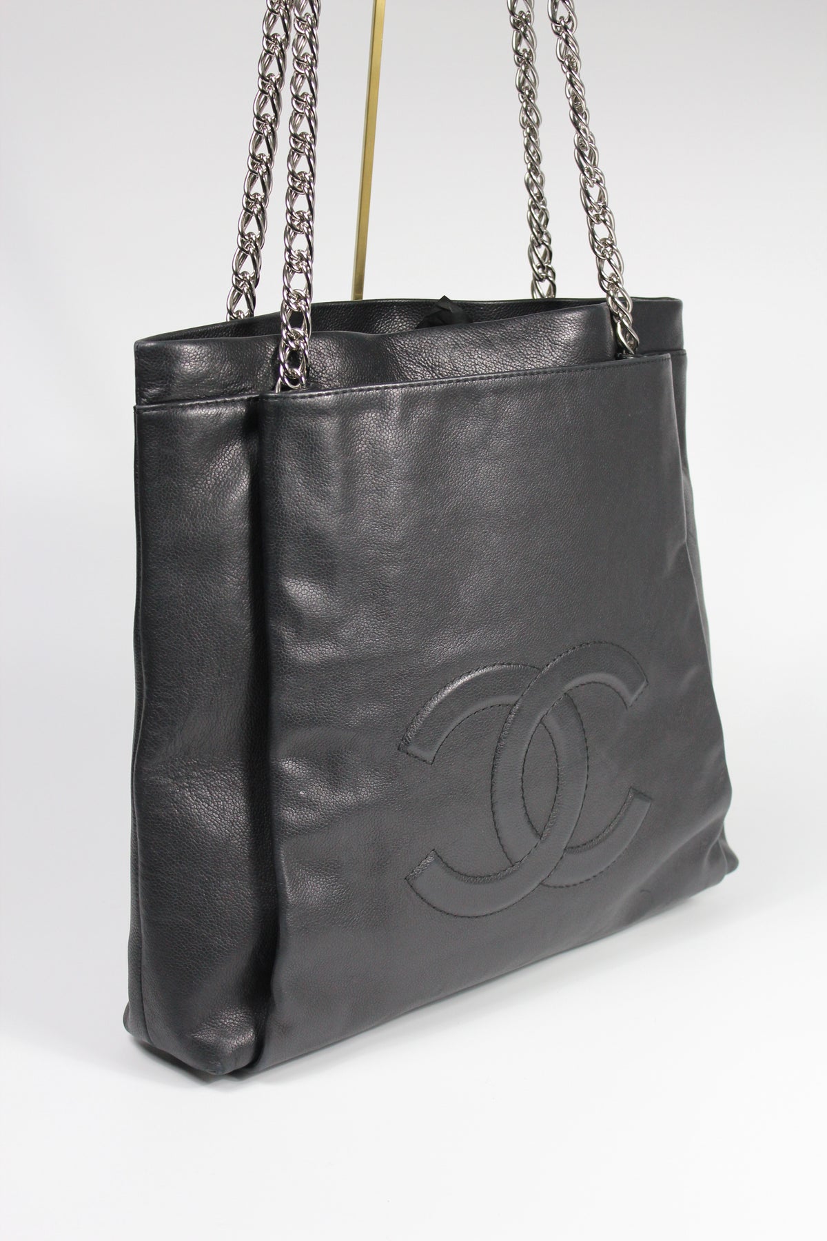 CHANEL XL Tuck Tote Caviar Leather Handbag with Silver Hardware and CC logo Stitching
