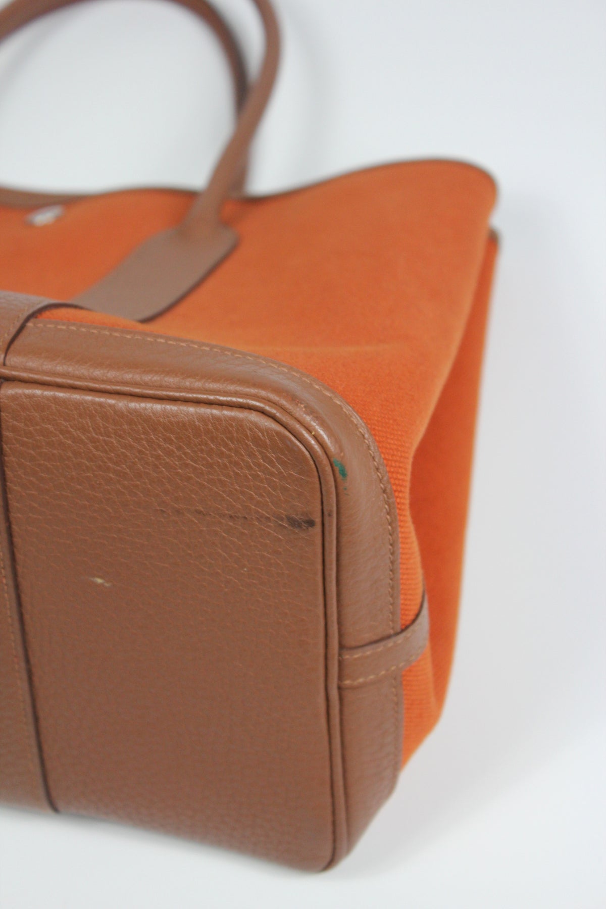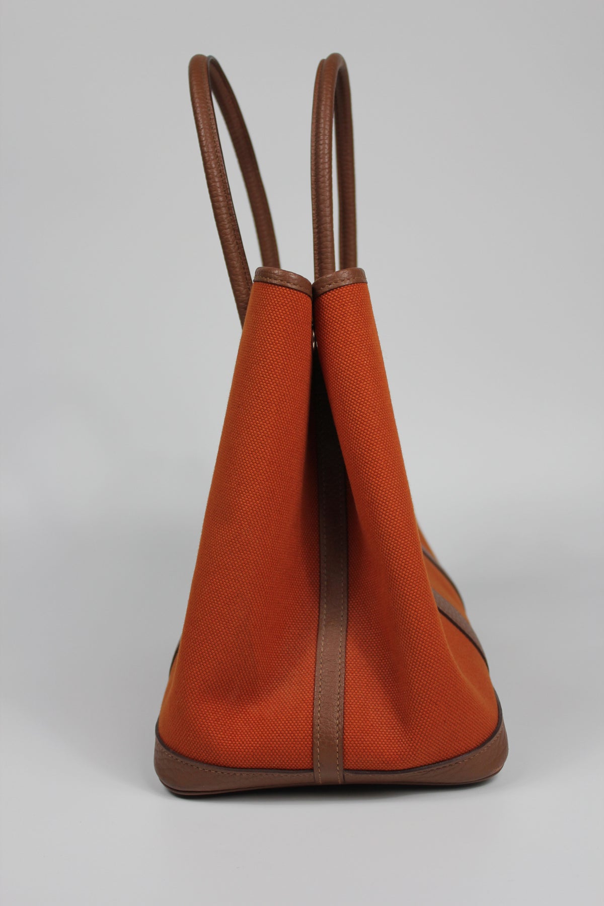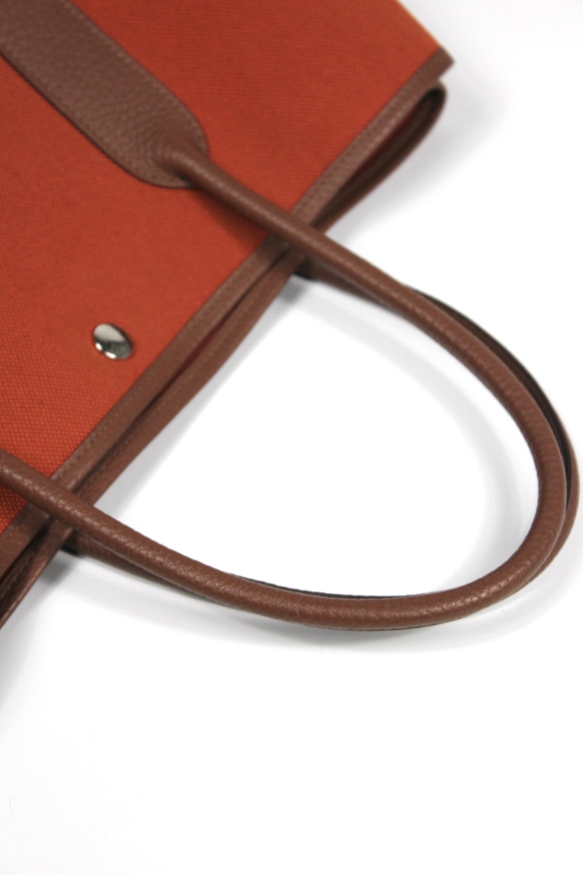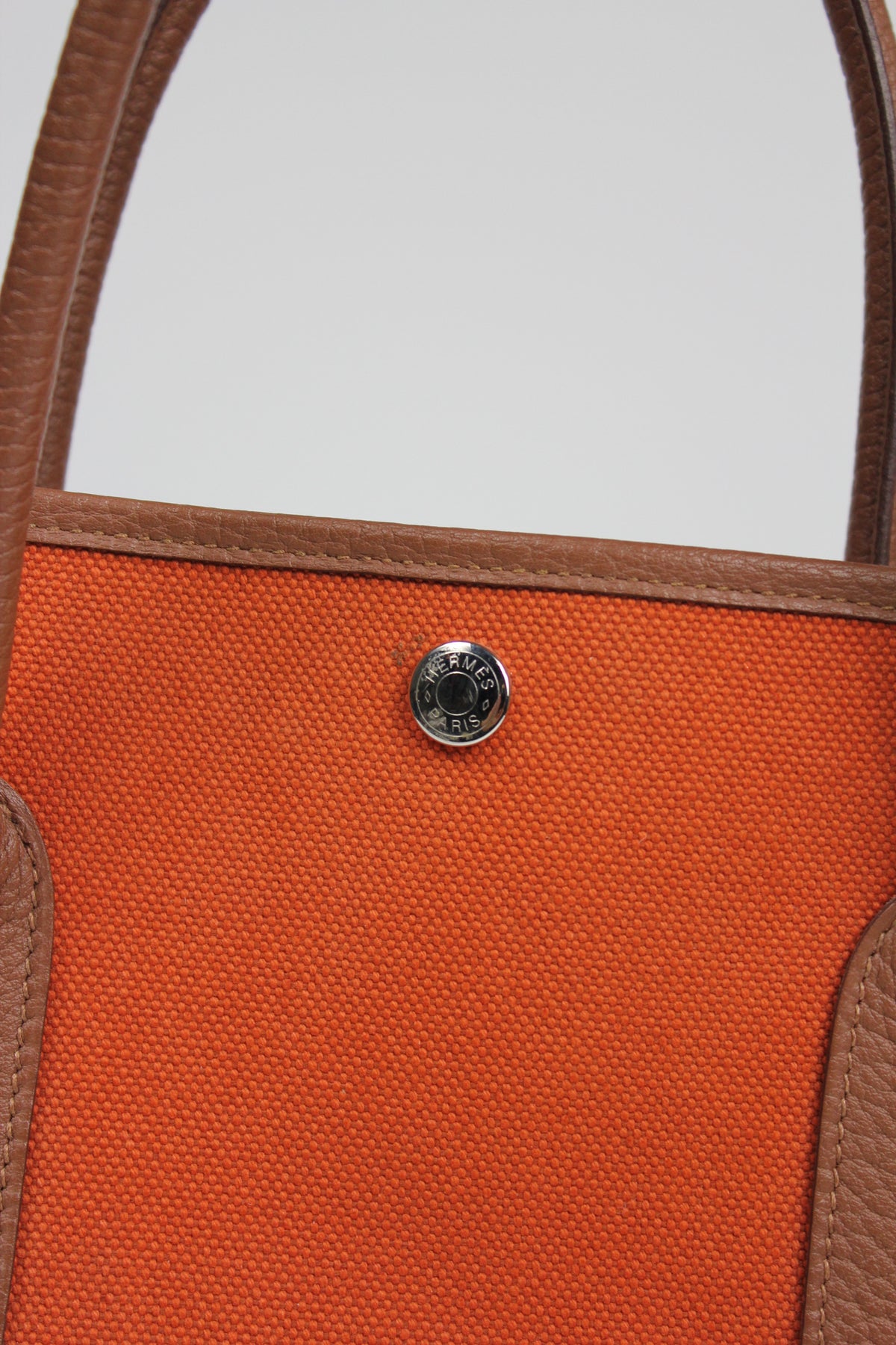 HERMES Garden Party PM Toile Orange Negonda Leather Palladium Clou de Selle