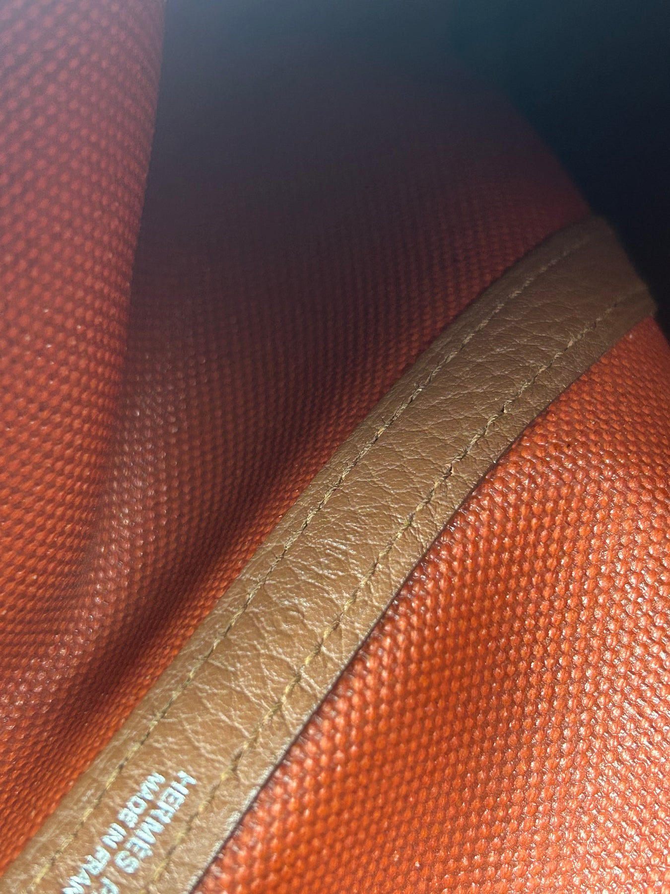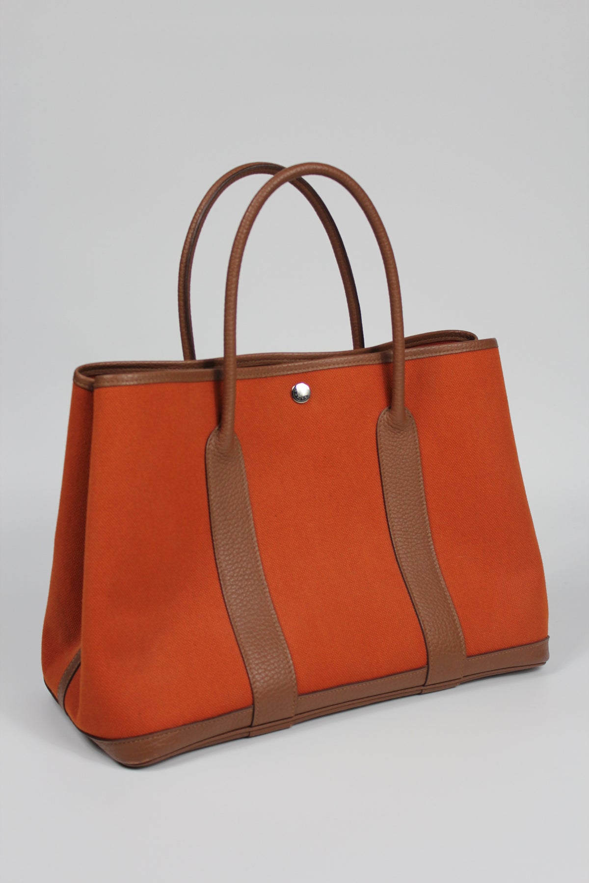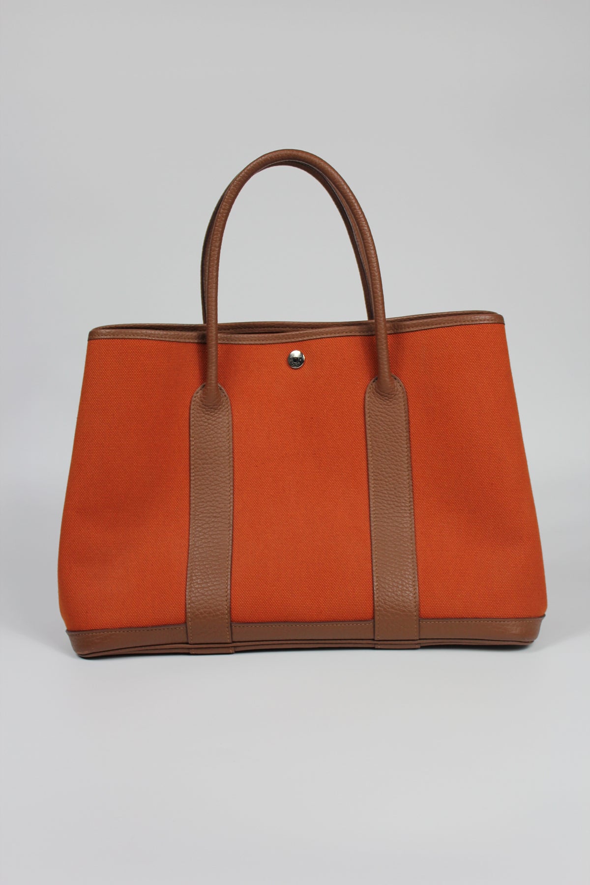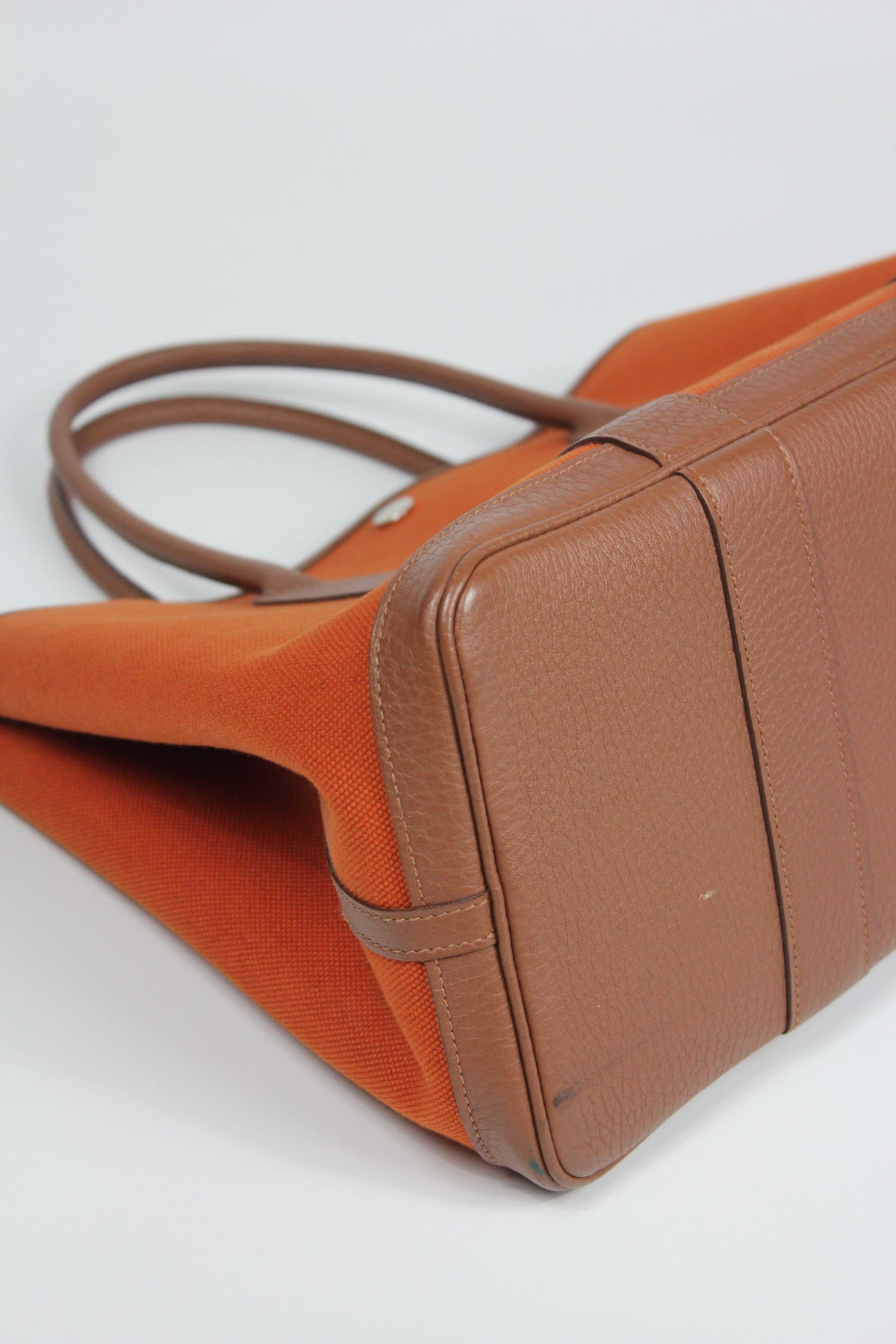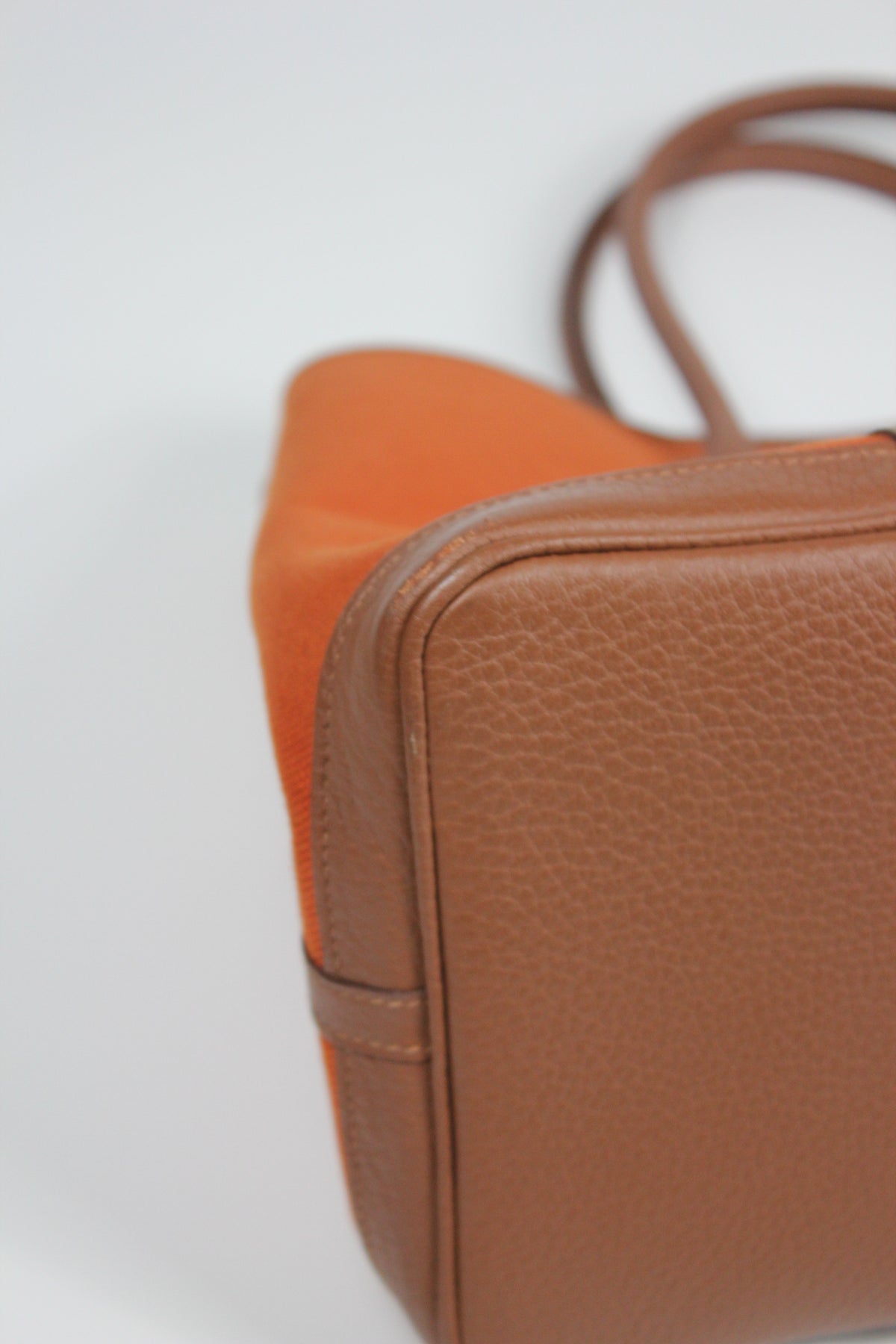 HERMES Garden Party PM Toile Orange Negonda Leather Palladium Clou de Selle