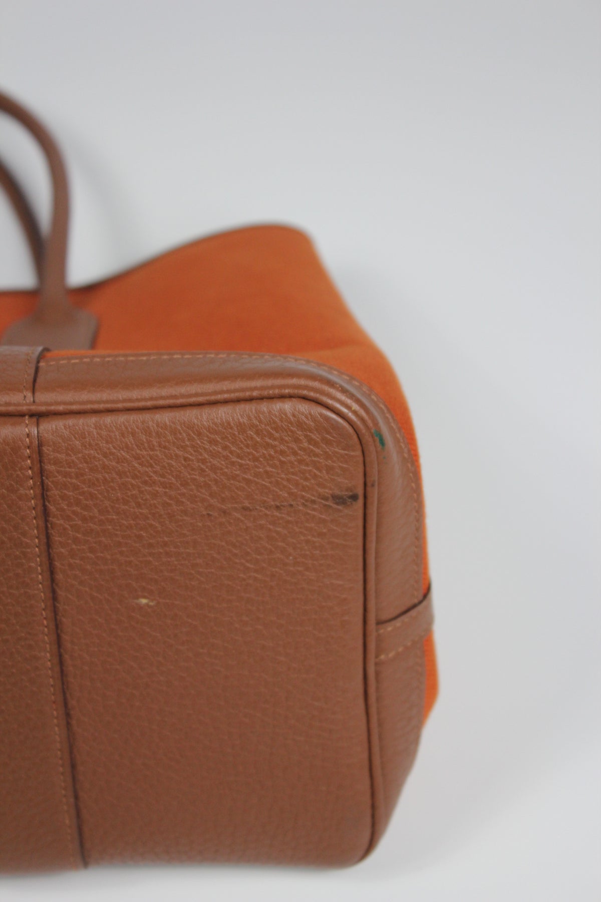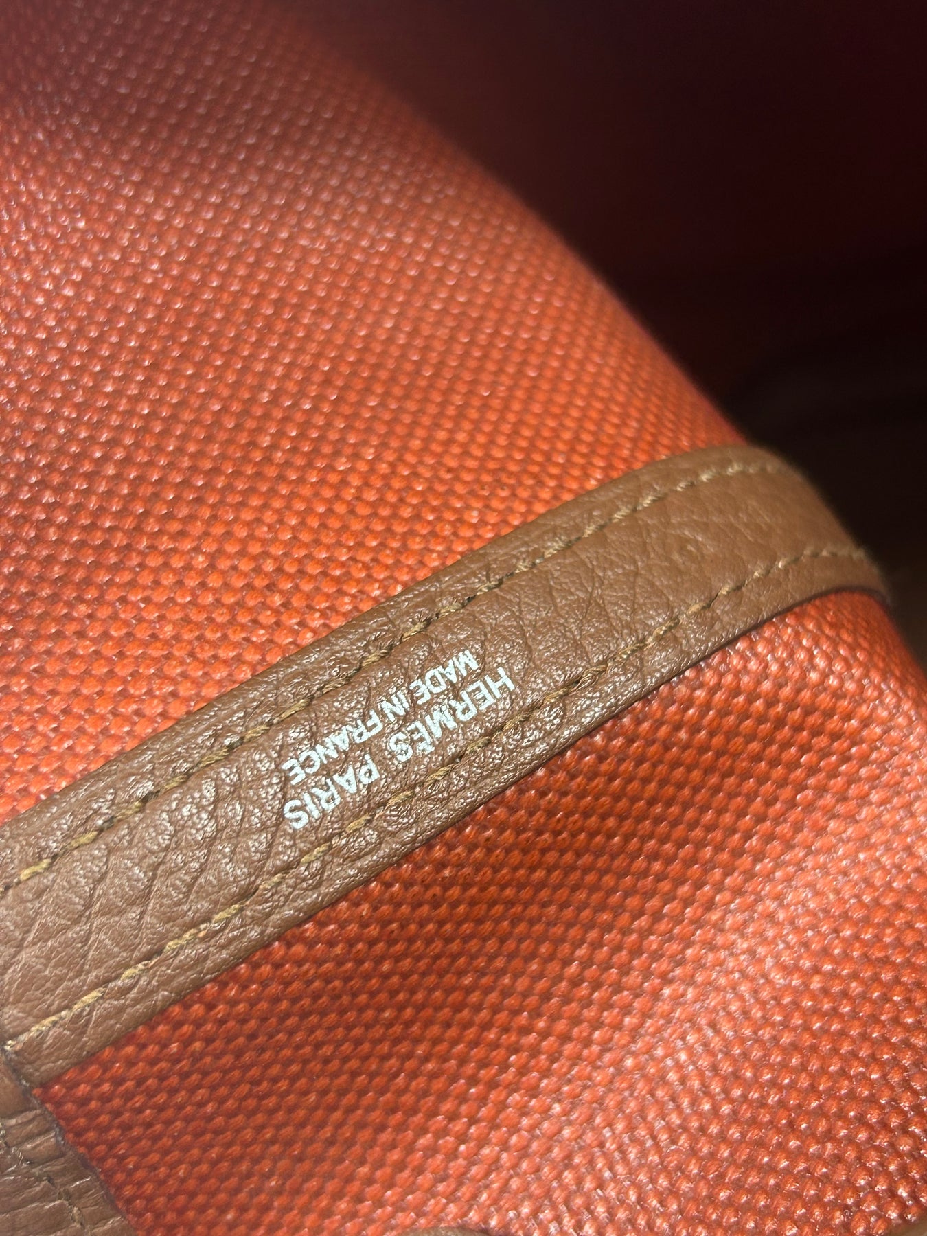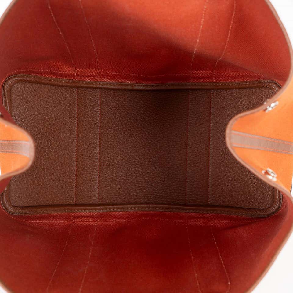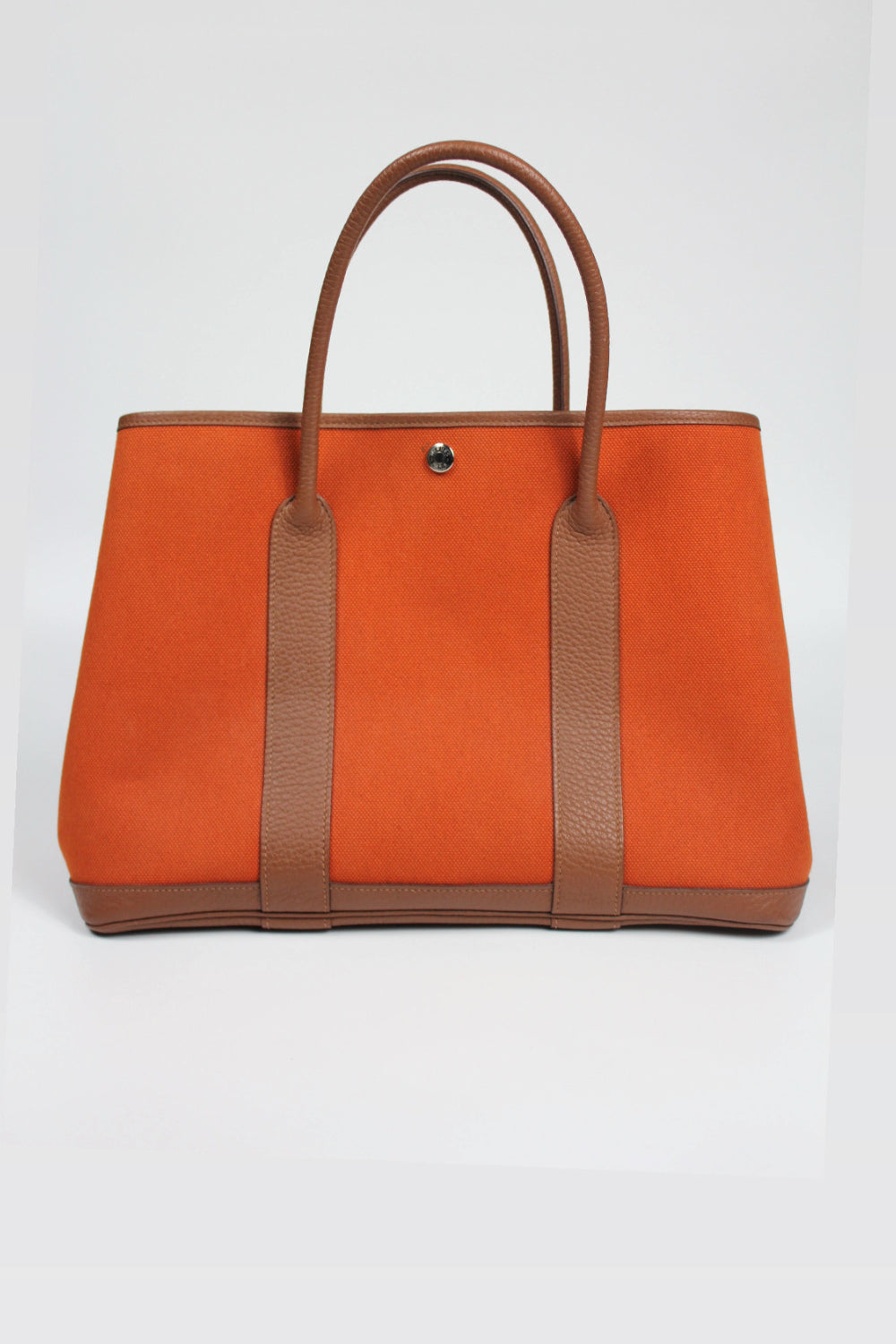 HERMES Garden Party PM Toile Orange Negonda Leather Palladium Clou de Selle