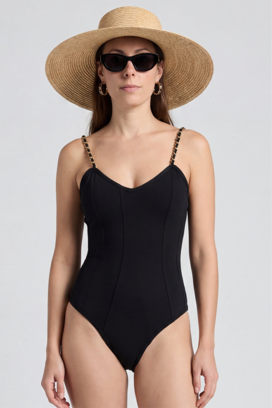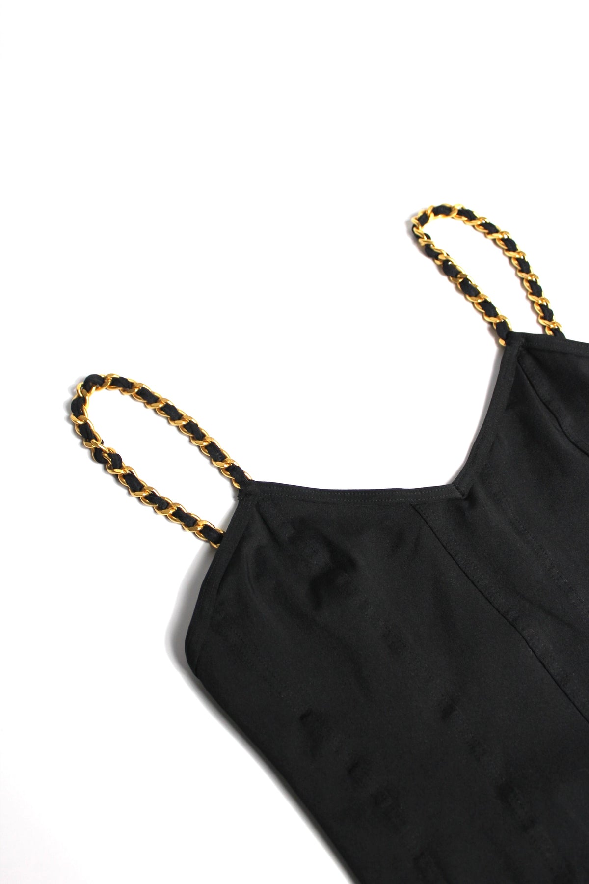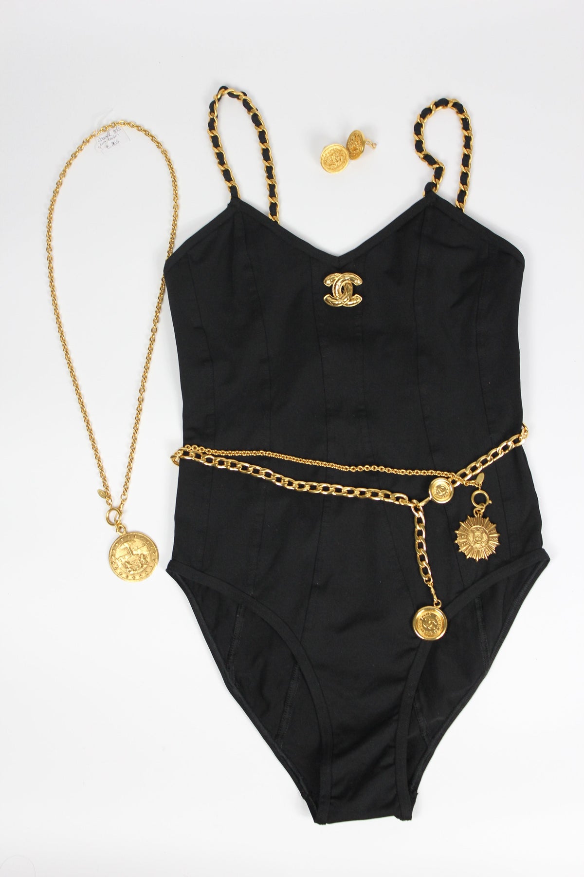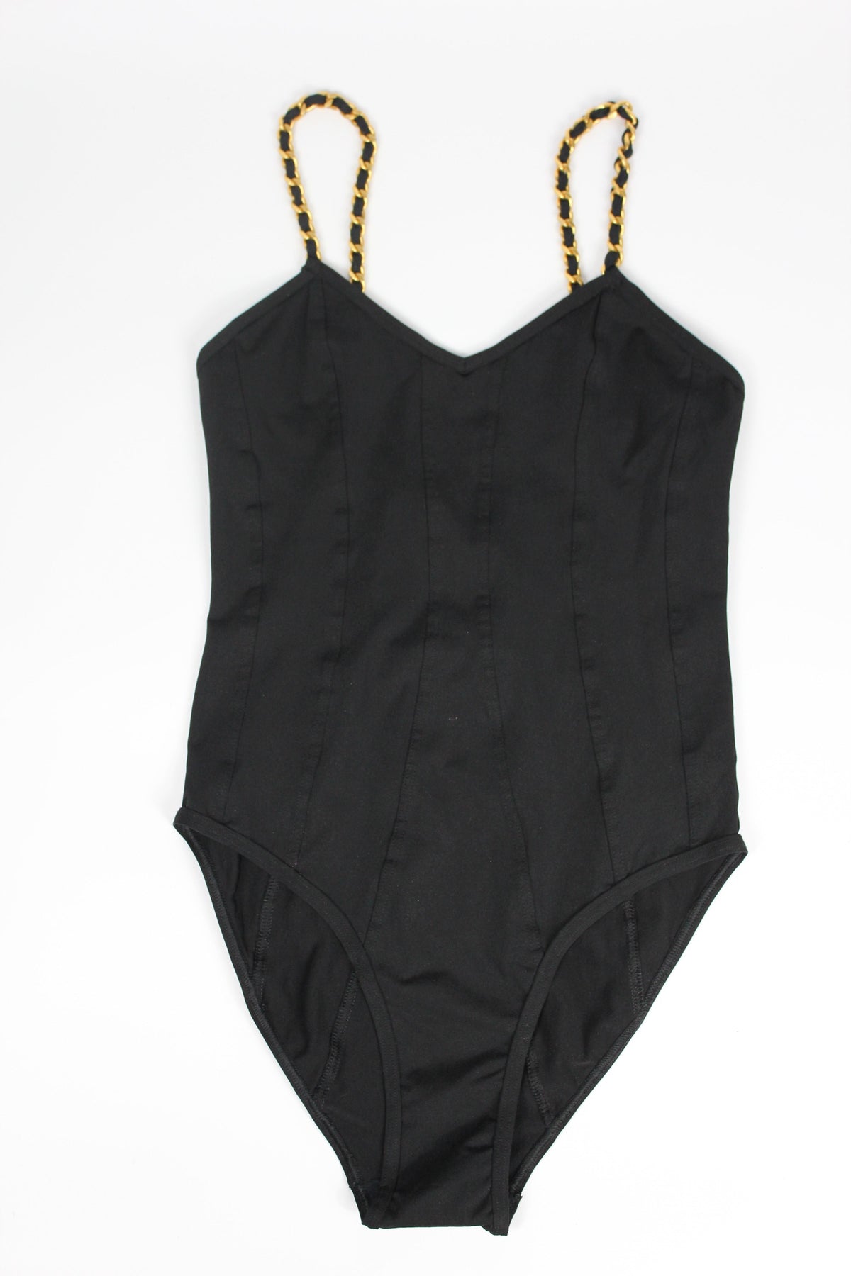CHANEL 1990's Rare Collector Bodysuit with 24ct gold Plated Chain Strap size 44