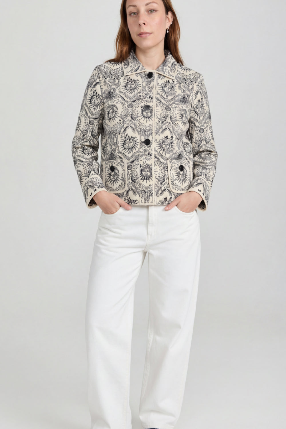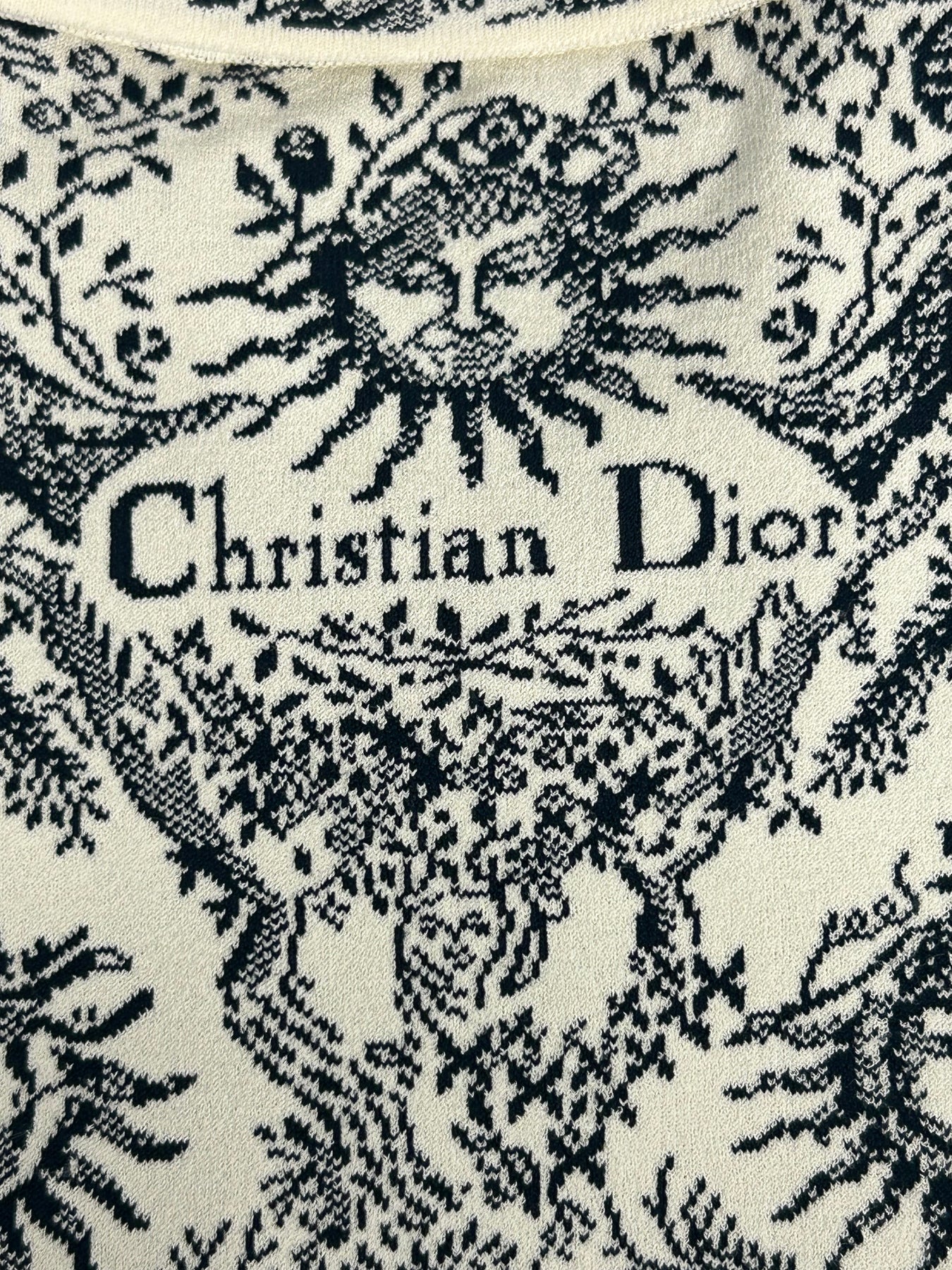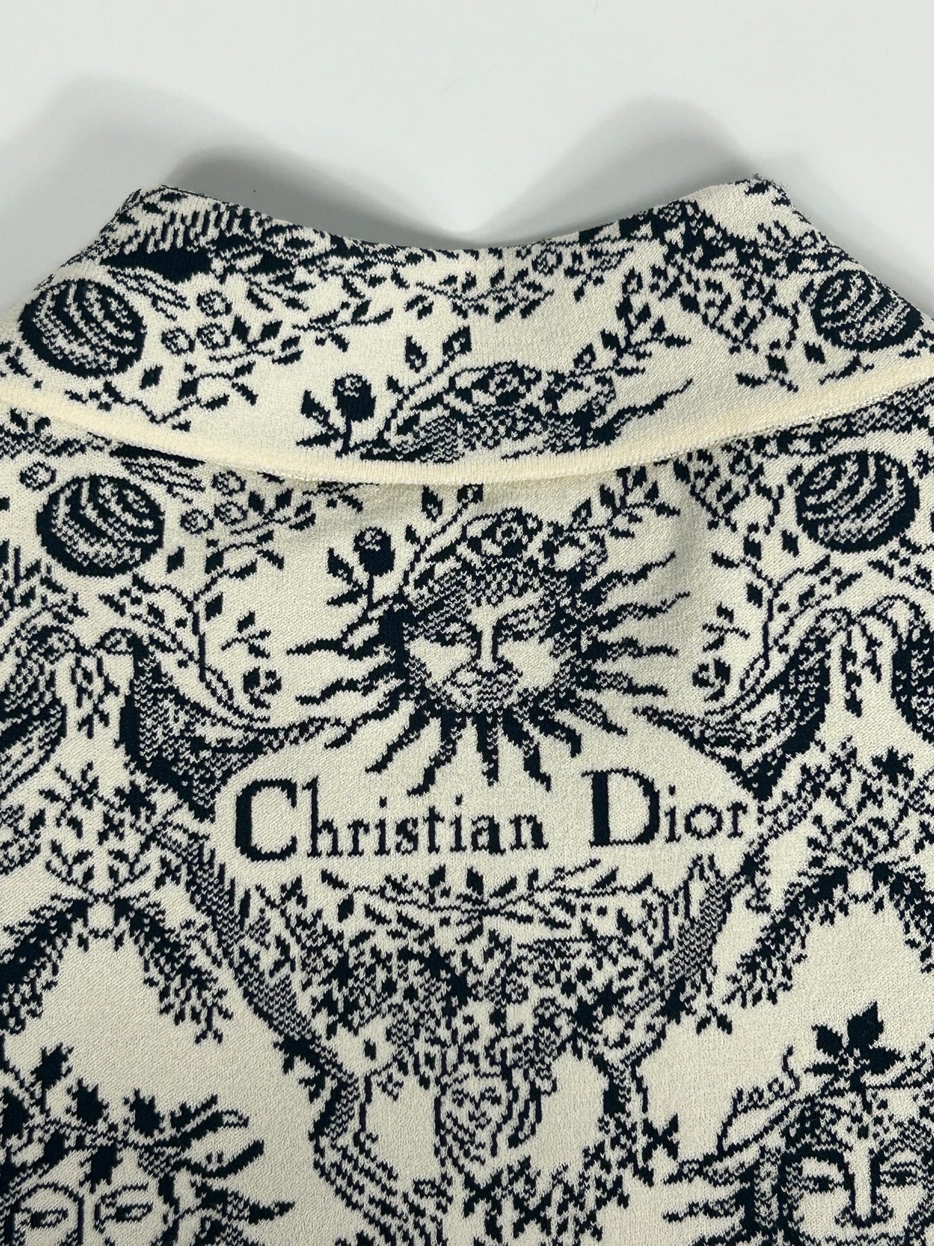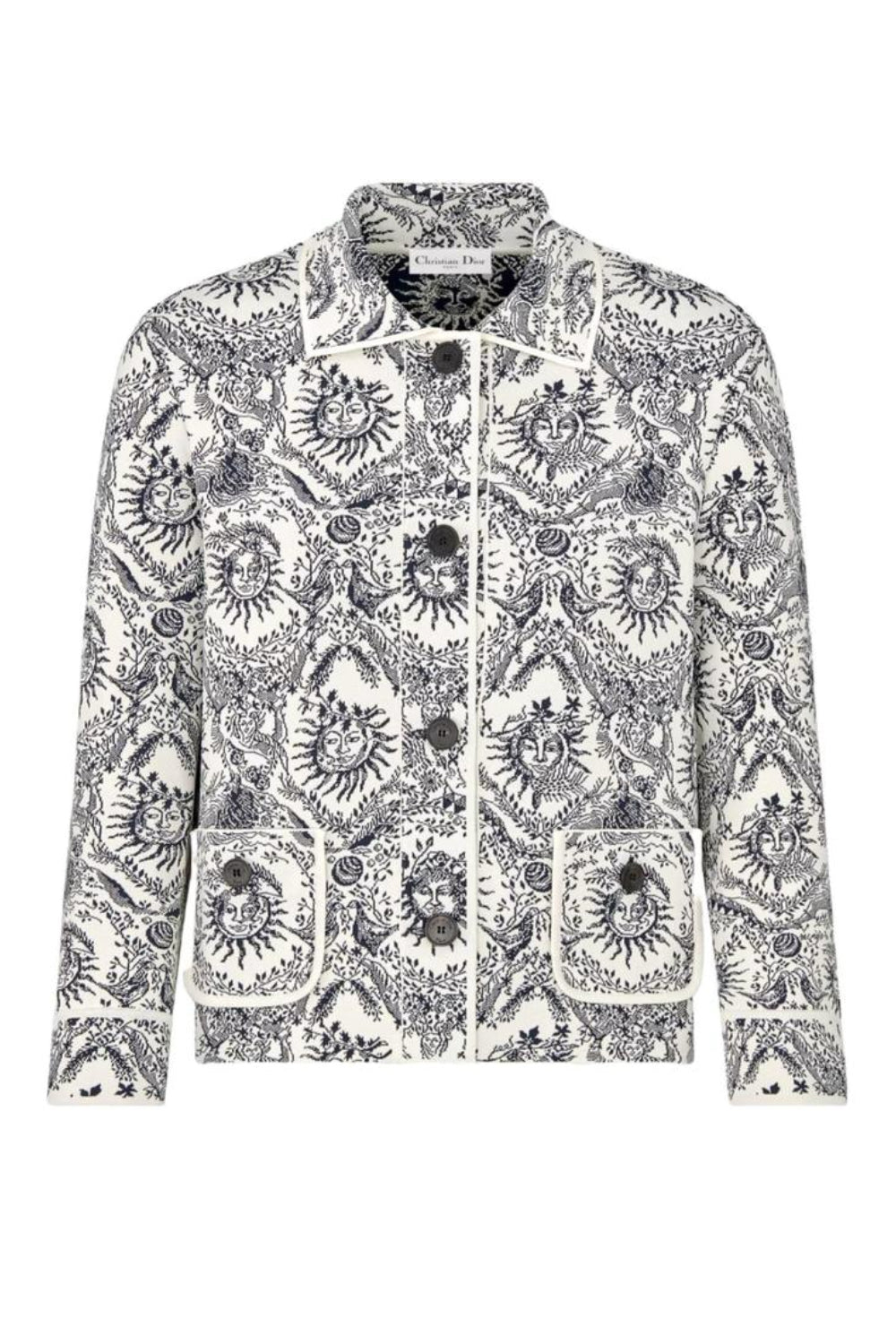 Shop this stunning CHRISTIAN DIOR jacket released under the creative direction of Maria-Grazia Chiuri, it is made from a stretch knit fabric and features solar print all over with CHRISTISN DIOR logo at the back.