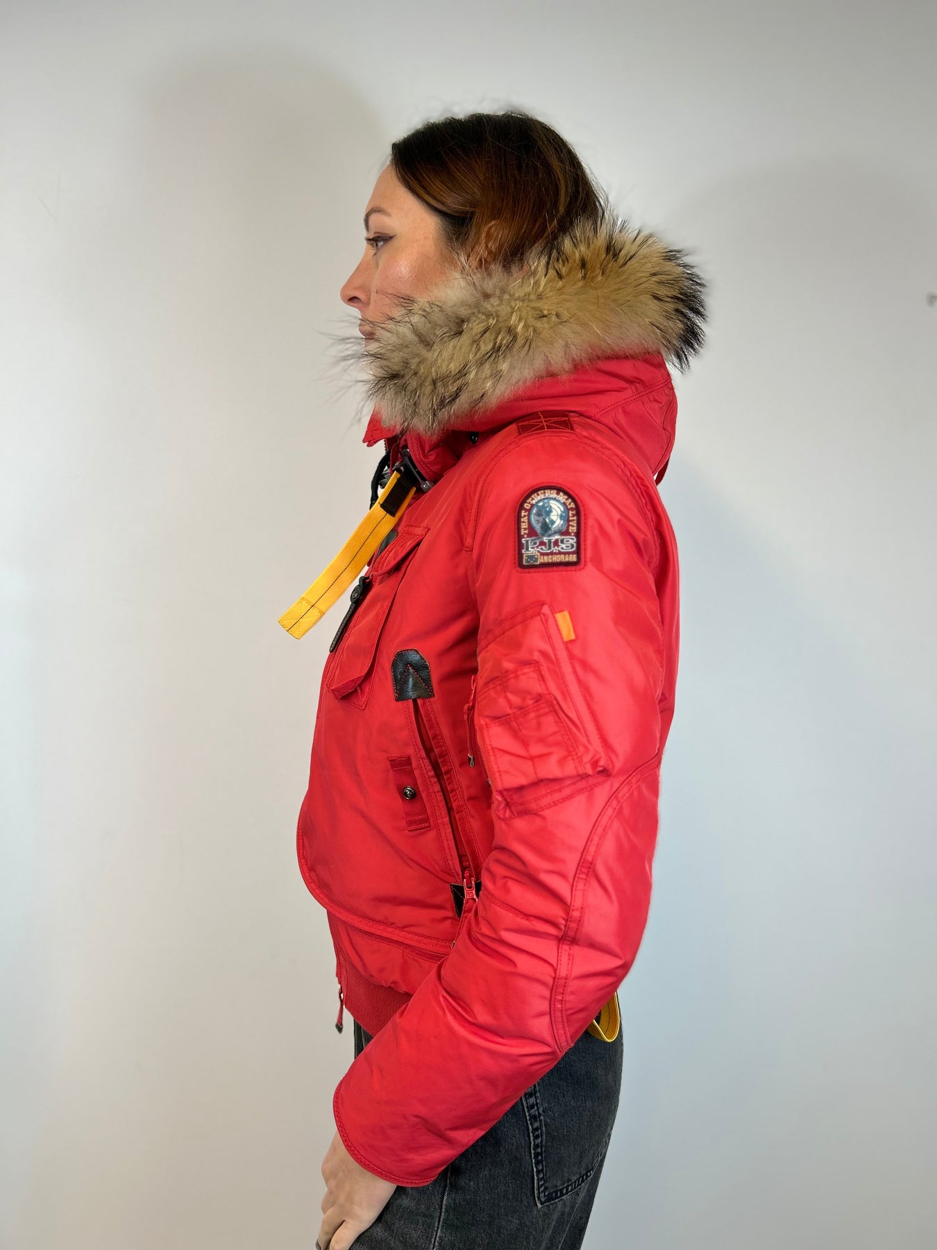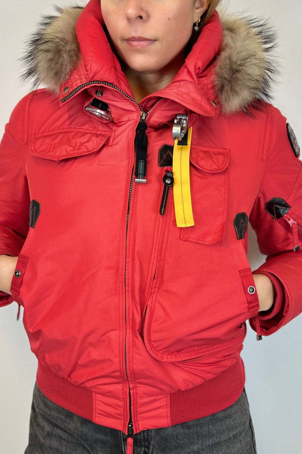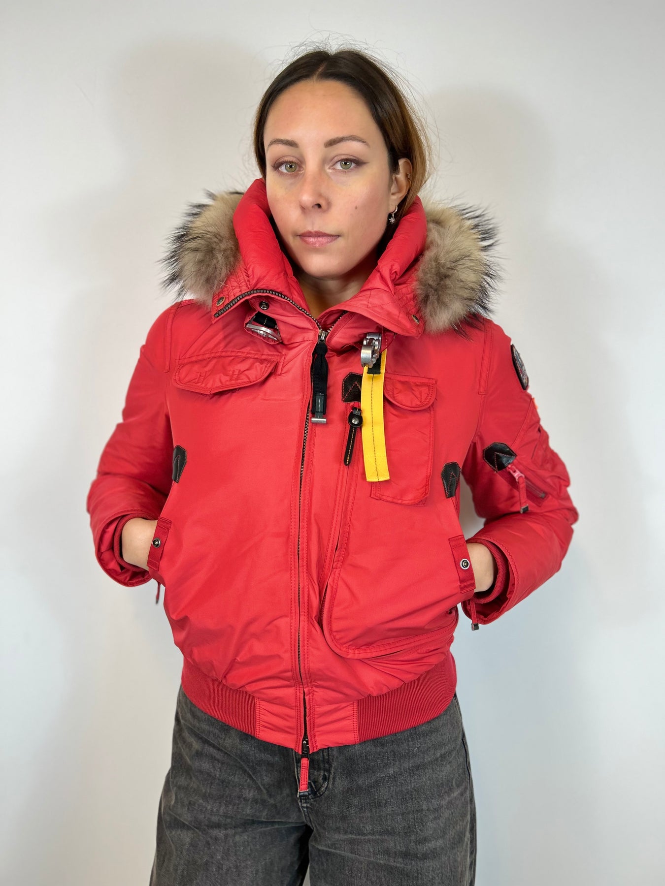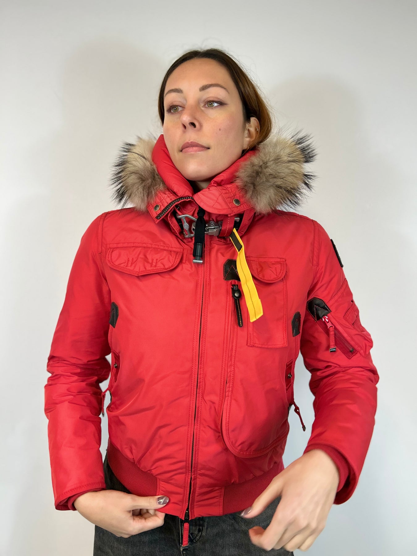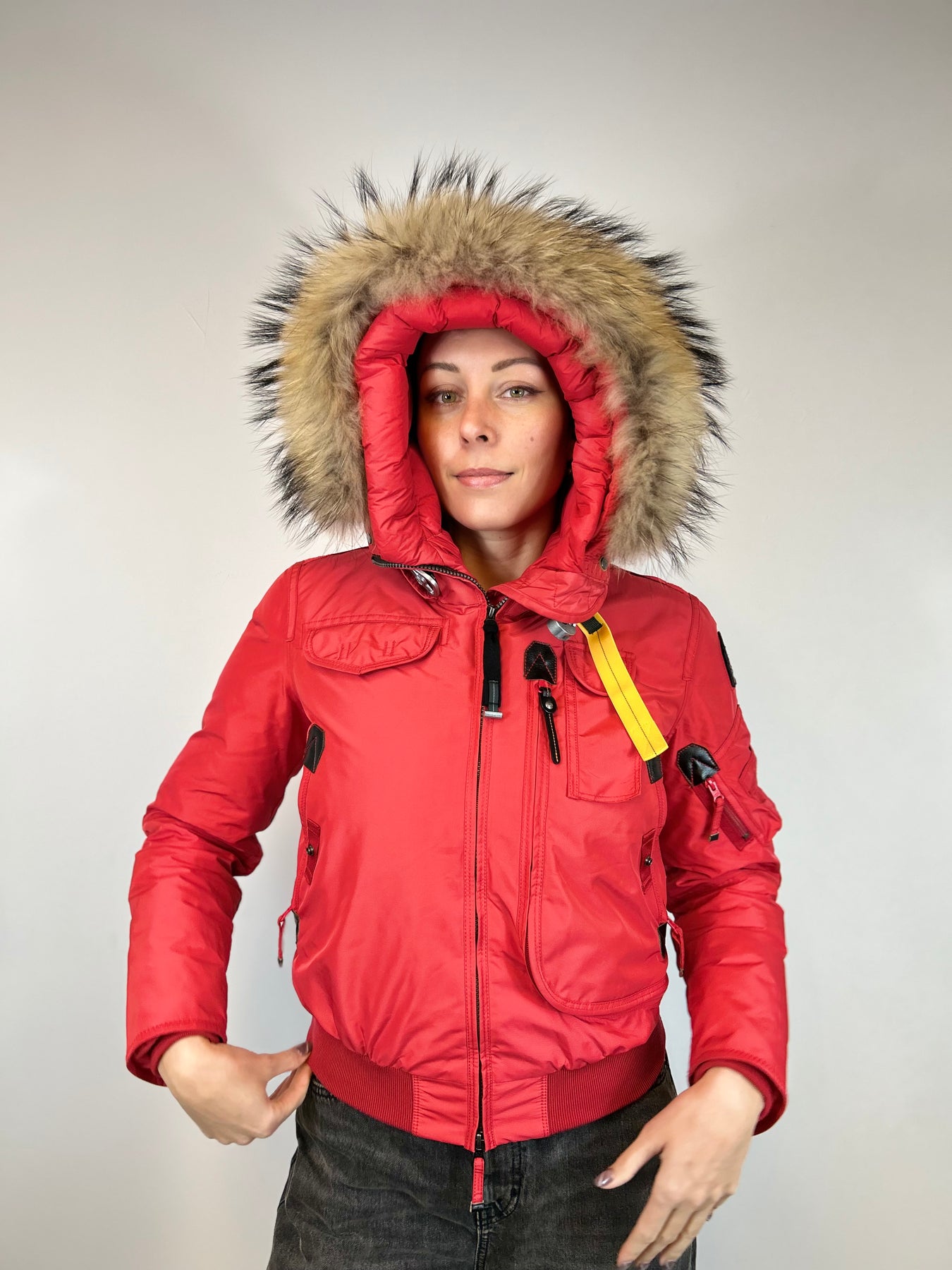 Keep warm this winter with a MASTERPIECE COLLECTION by PARAJUMPER! This red down jacket comes from a limited color edition - and really is the perfect shade of red. Style and functionality is as we can best describe it. The hood is trimmed with real racoon fur and the name Gobi refers to the name of a missions by specialized squadron that go on the most extreme and hostile environment to save lives.