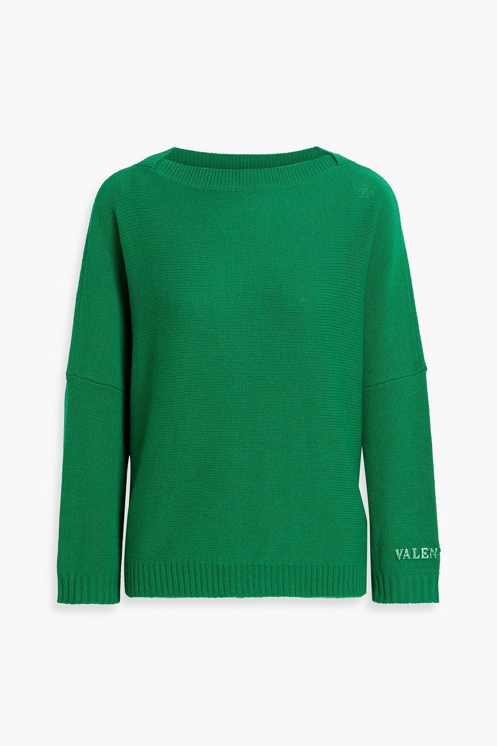 Add a pop of color to your wardrobe with this VALENTINO sweater. Made of a soft and warm cashmere, It features a cropped length and oversized cut, as well as a VLTN signature logo on one sleeve.