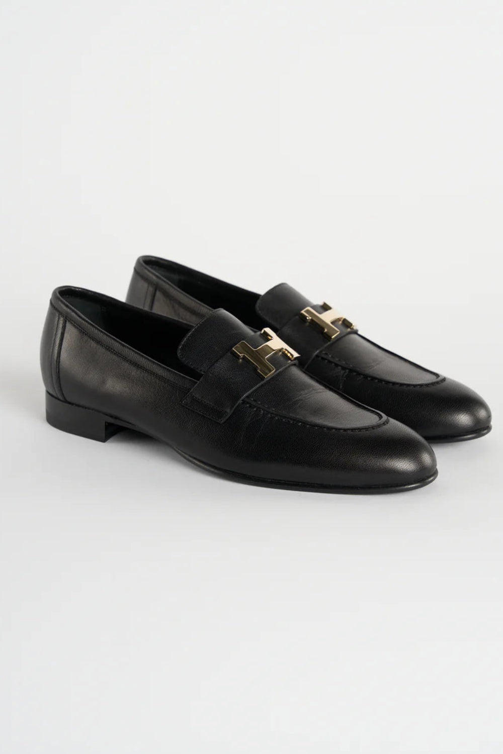 HERMES "Paris" black leather loafers with palladium H buckle size 35.5