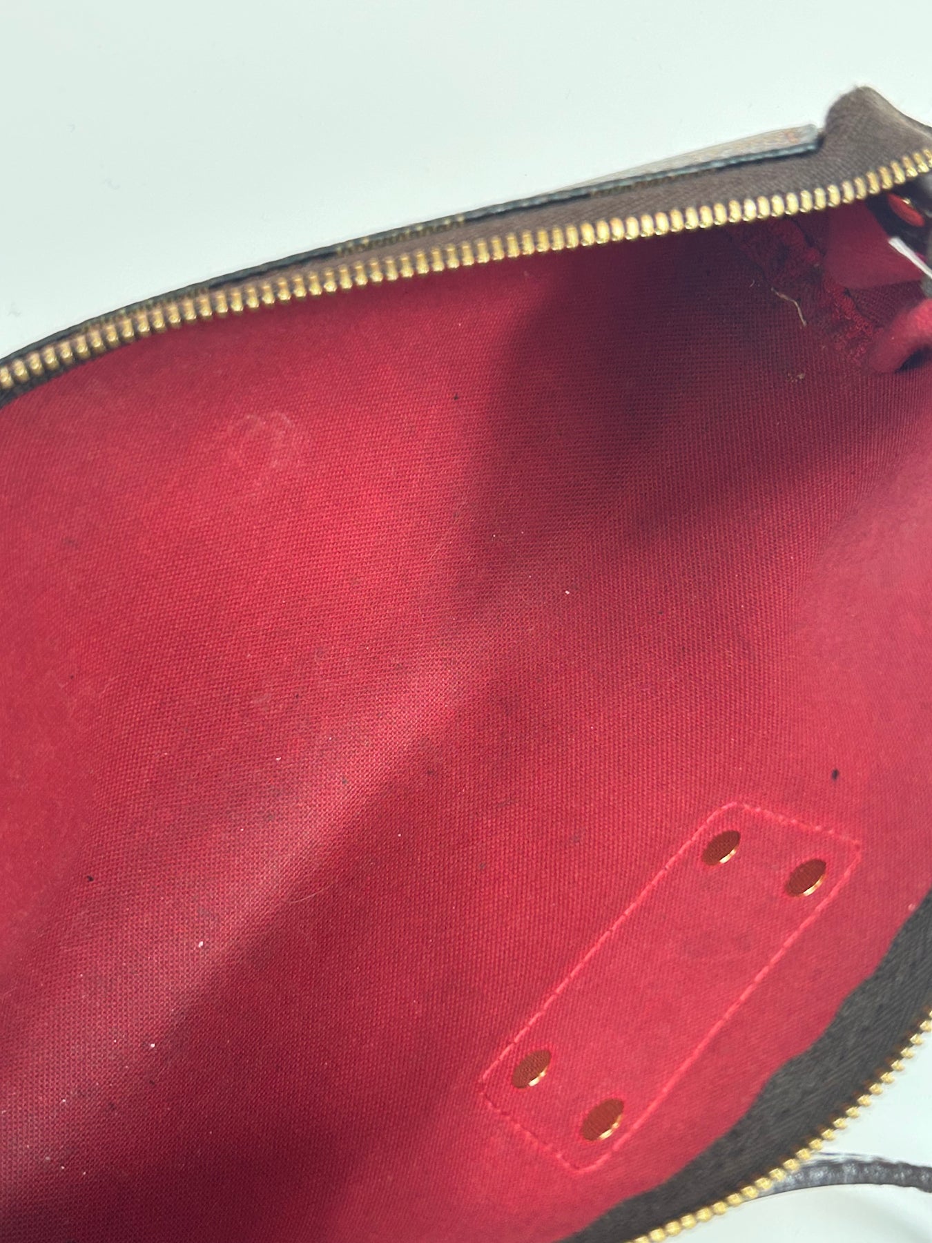 Very good pre-owned condition. Some stains to interior, hairline scratches to hardware, some discoloration to metal hardware
