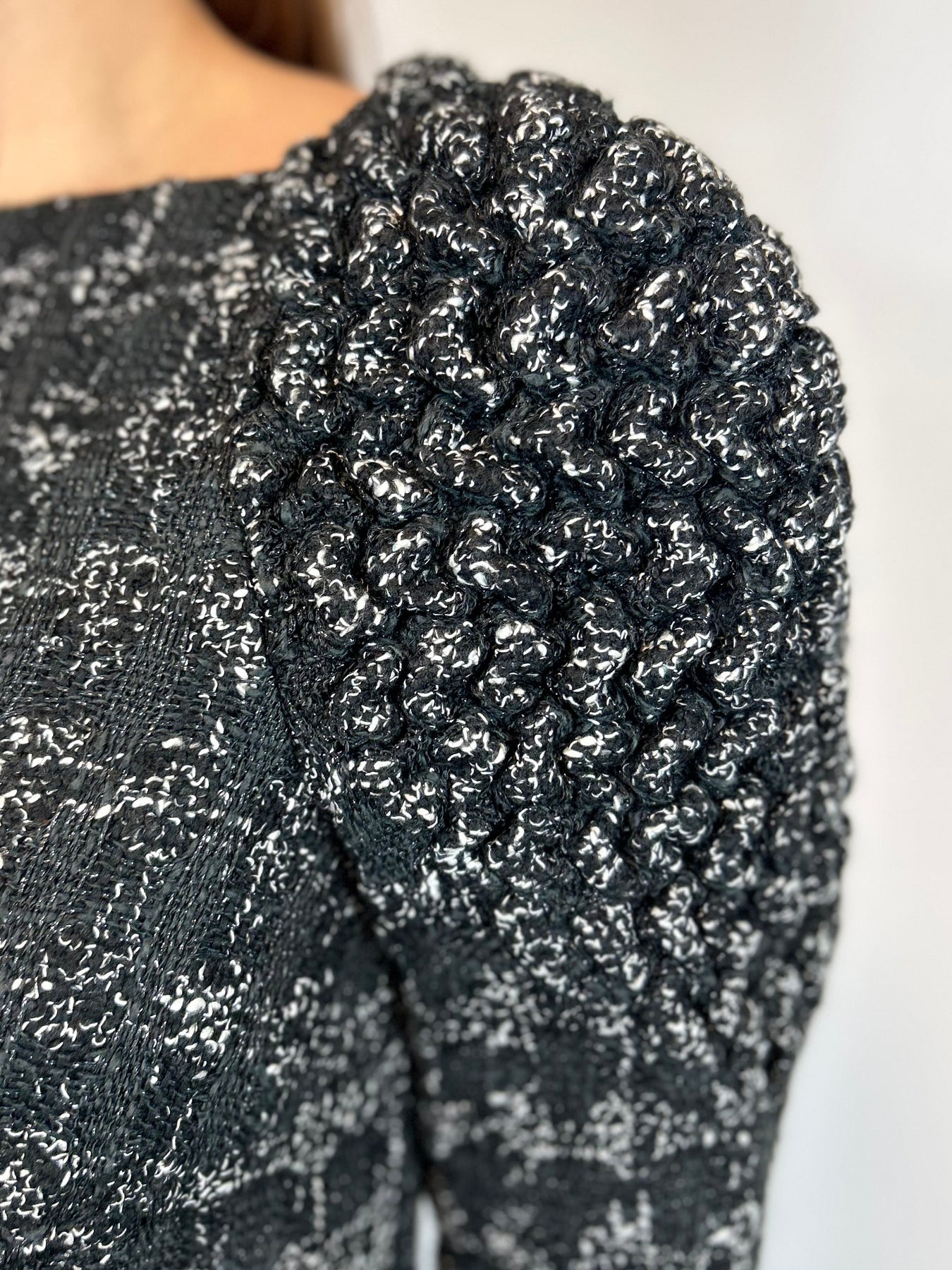 Black and white tweed with shimmering threads