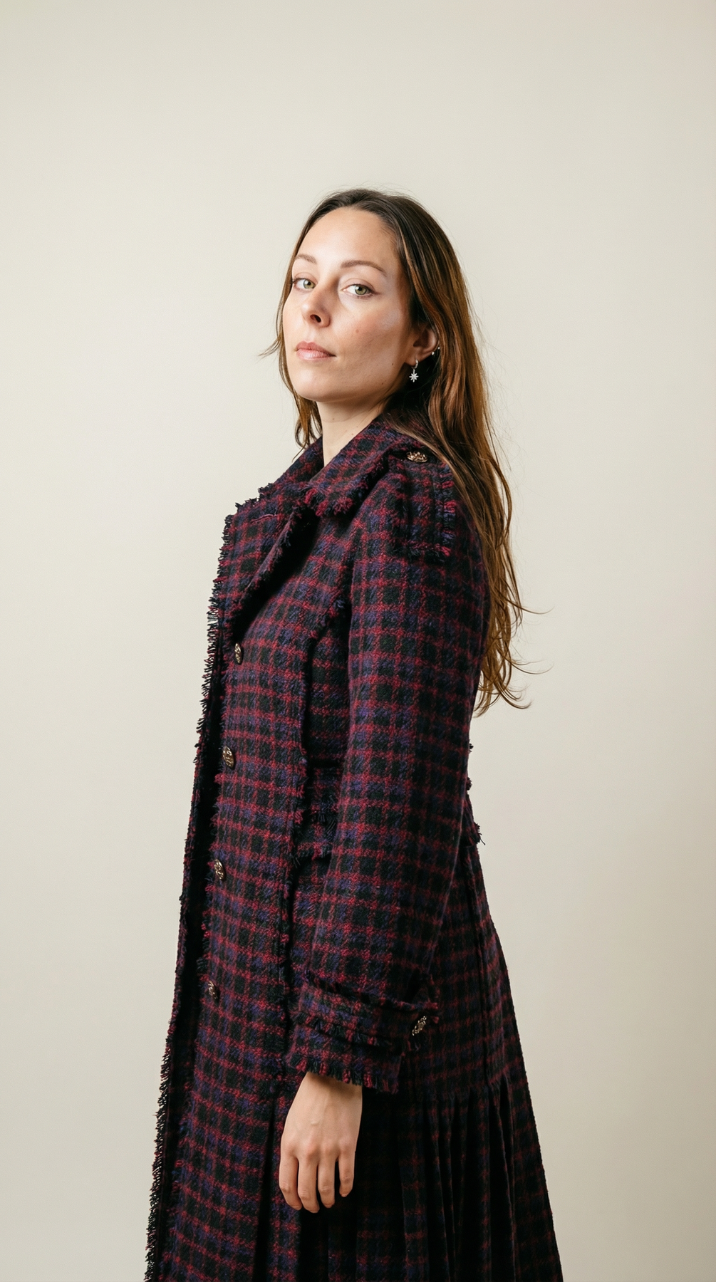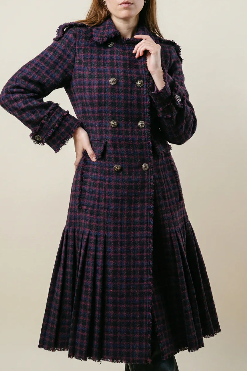 CHANEL Metiers d'Art Paris Edinburgh Tweed Tartan Gripoix Buttons Coat size 42