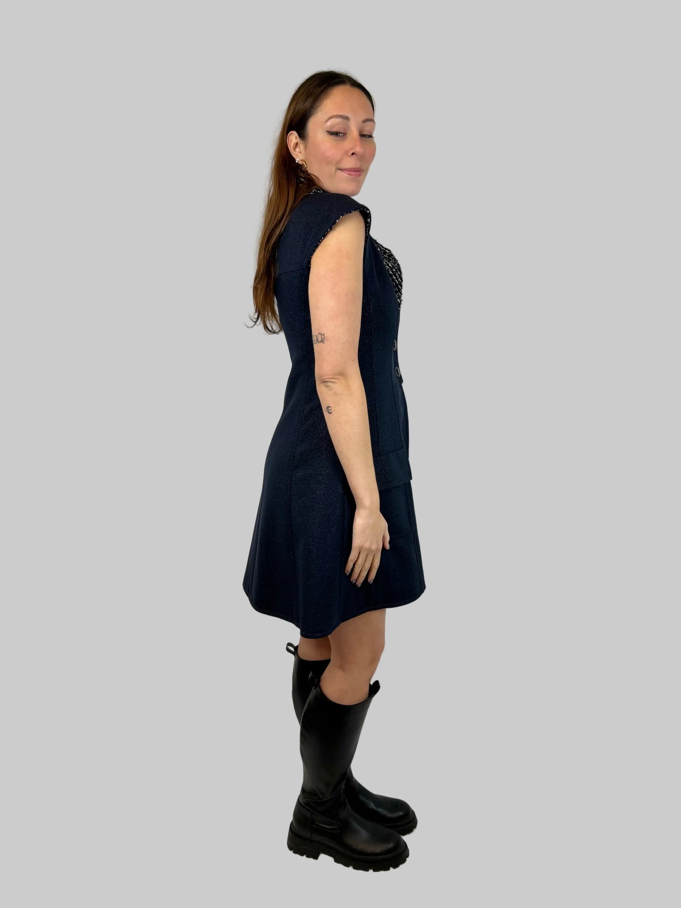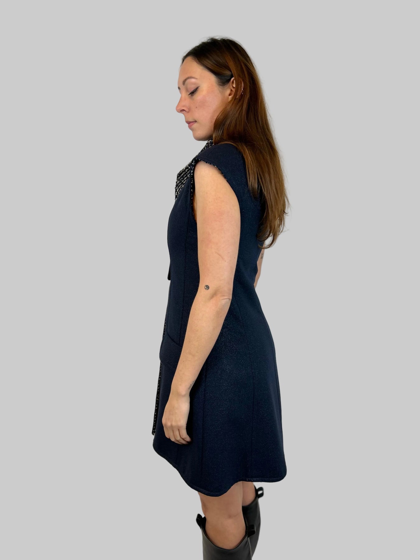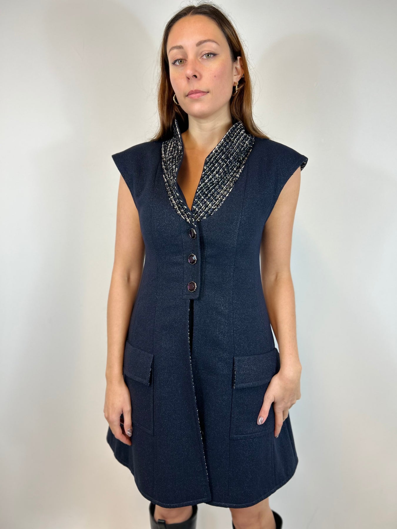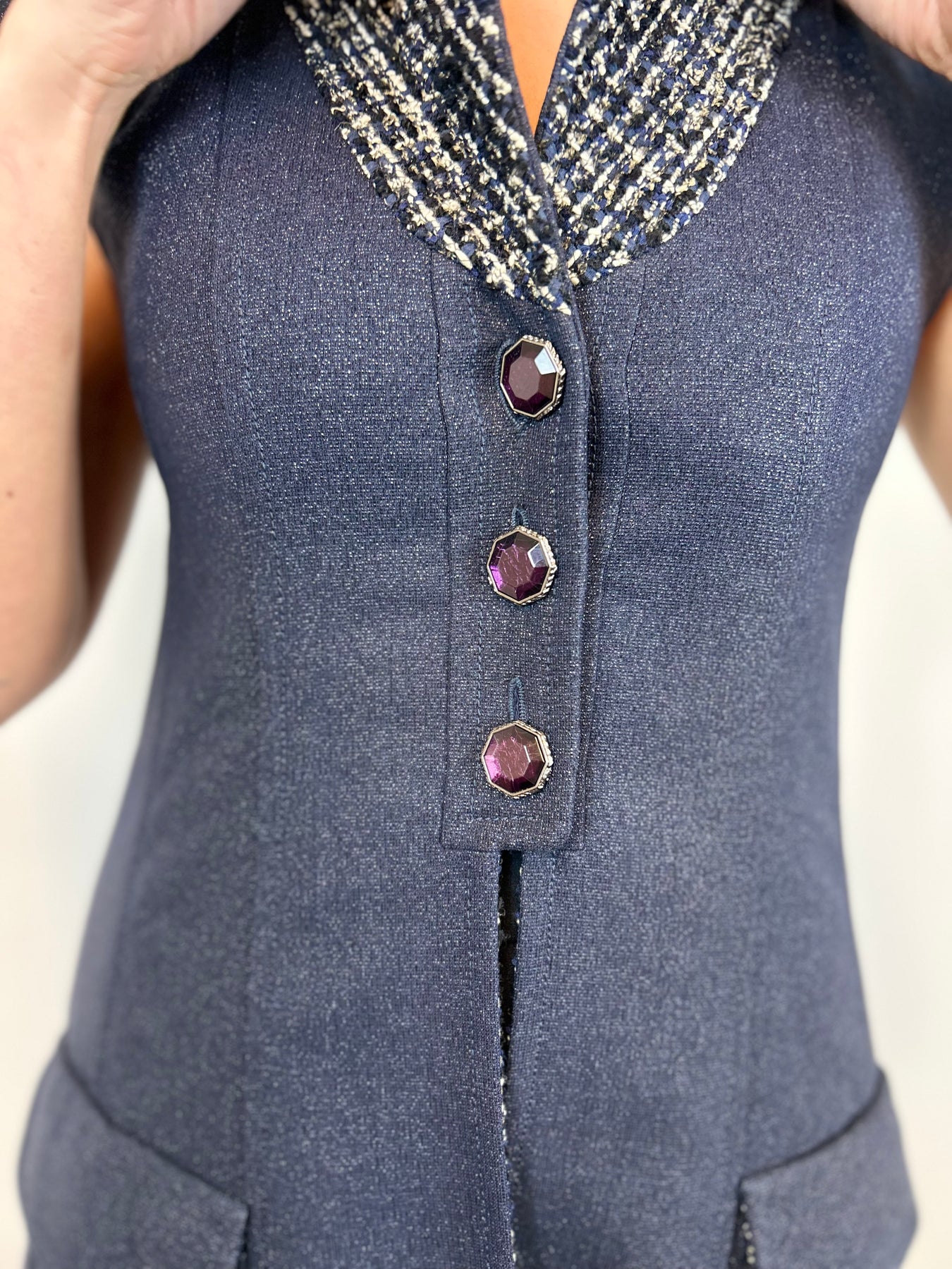 CHANEL Navy Shimmering Waistcoat With Tweed Interior Lining Size 38fr