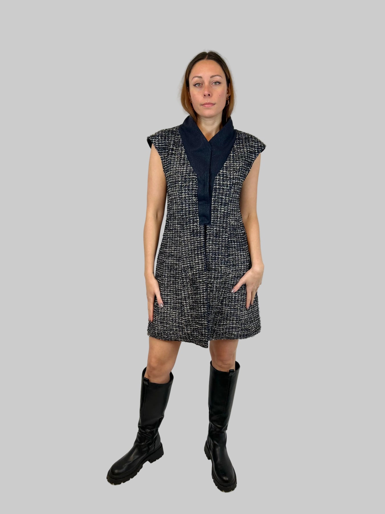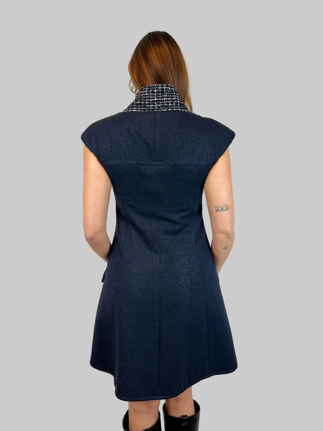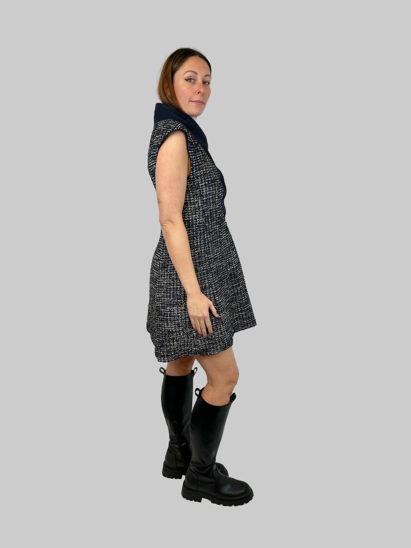 CHANEL Navy Shimmering Waistcoat With Tweed Interior Lining Size 38fr