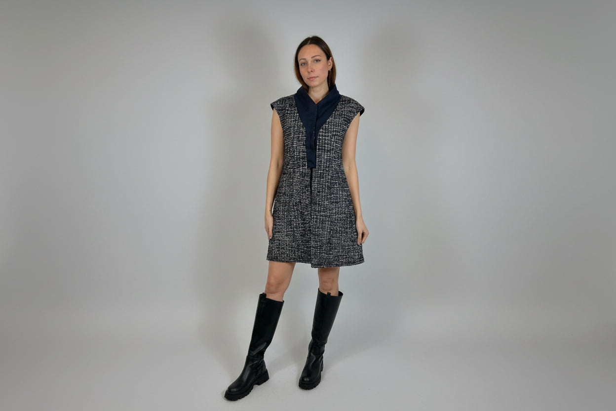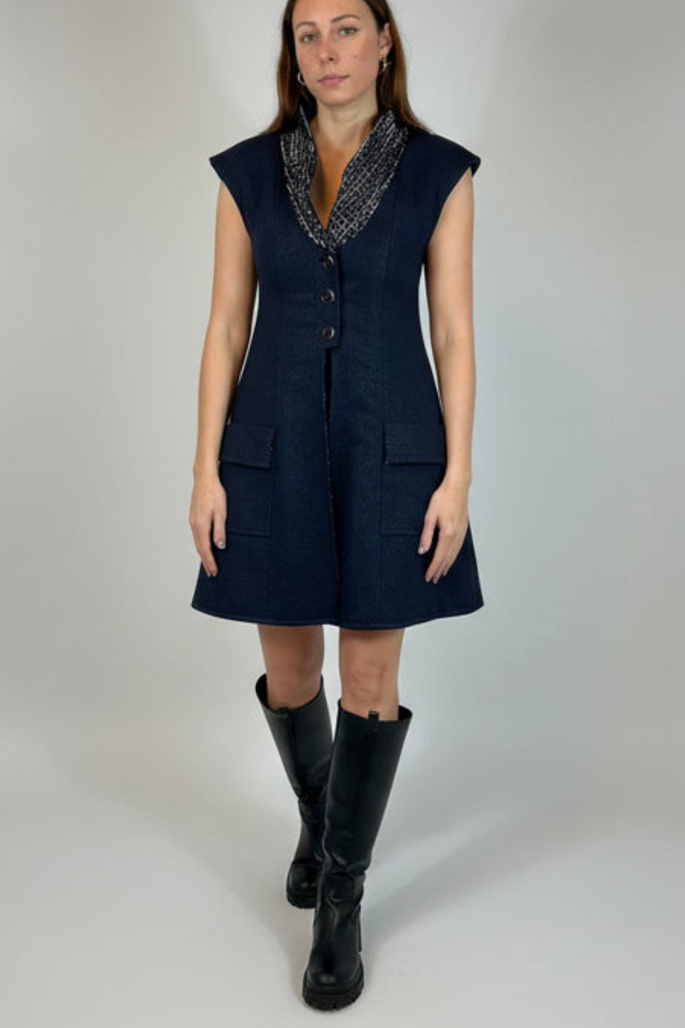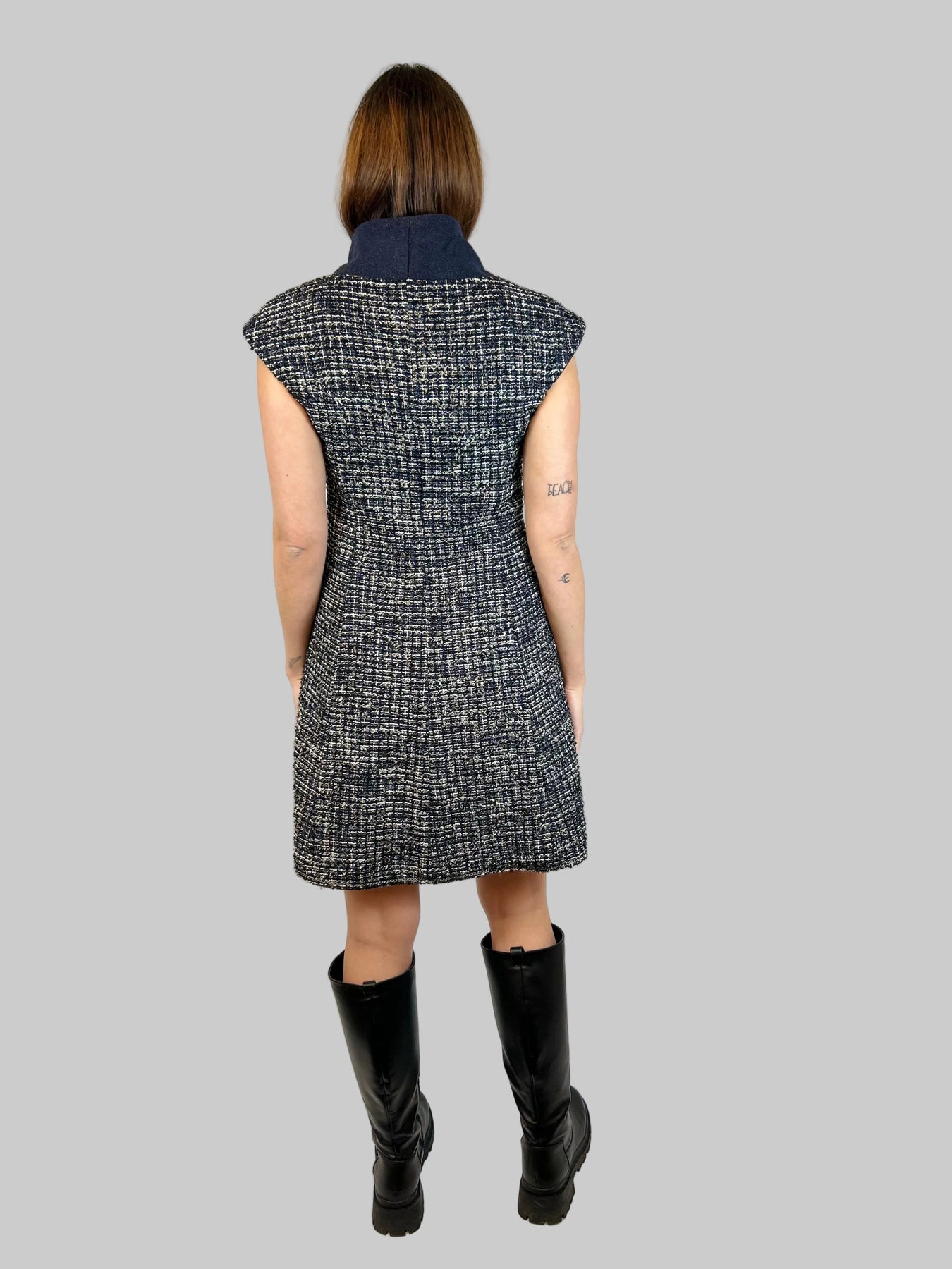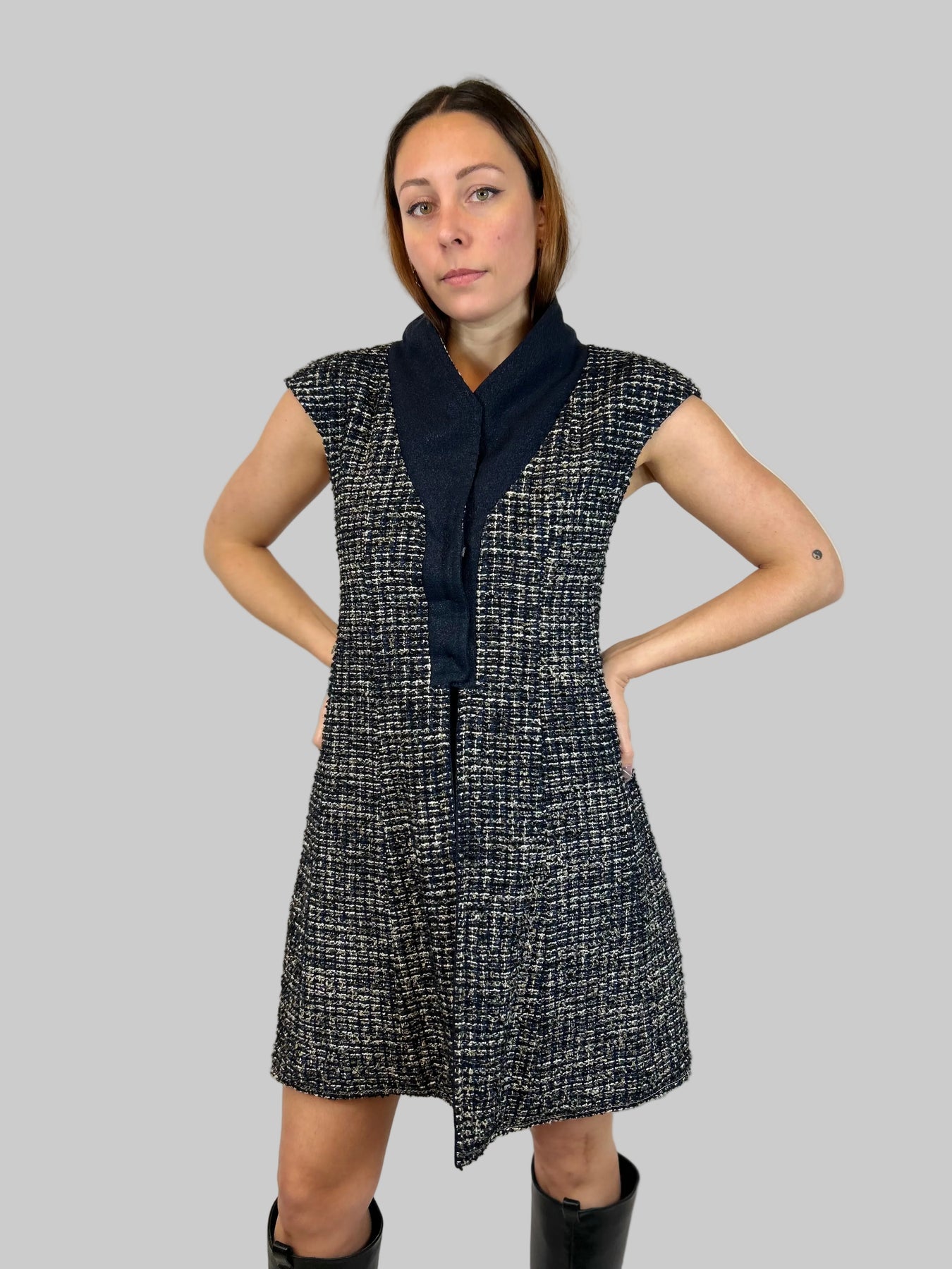 CHANEL Navy Shimmering Waistcoat With Tweed Interior Lining Size 38fr