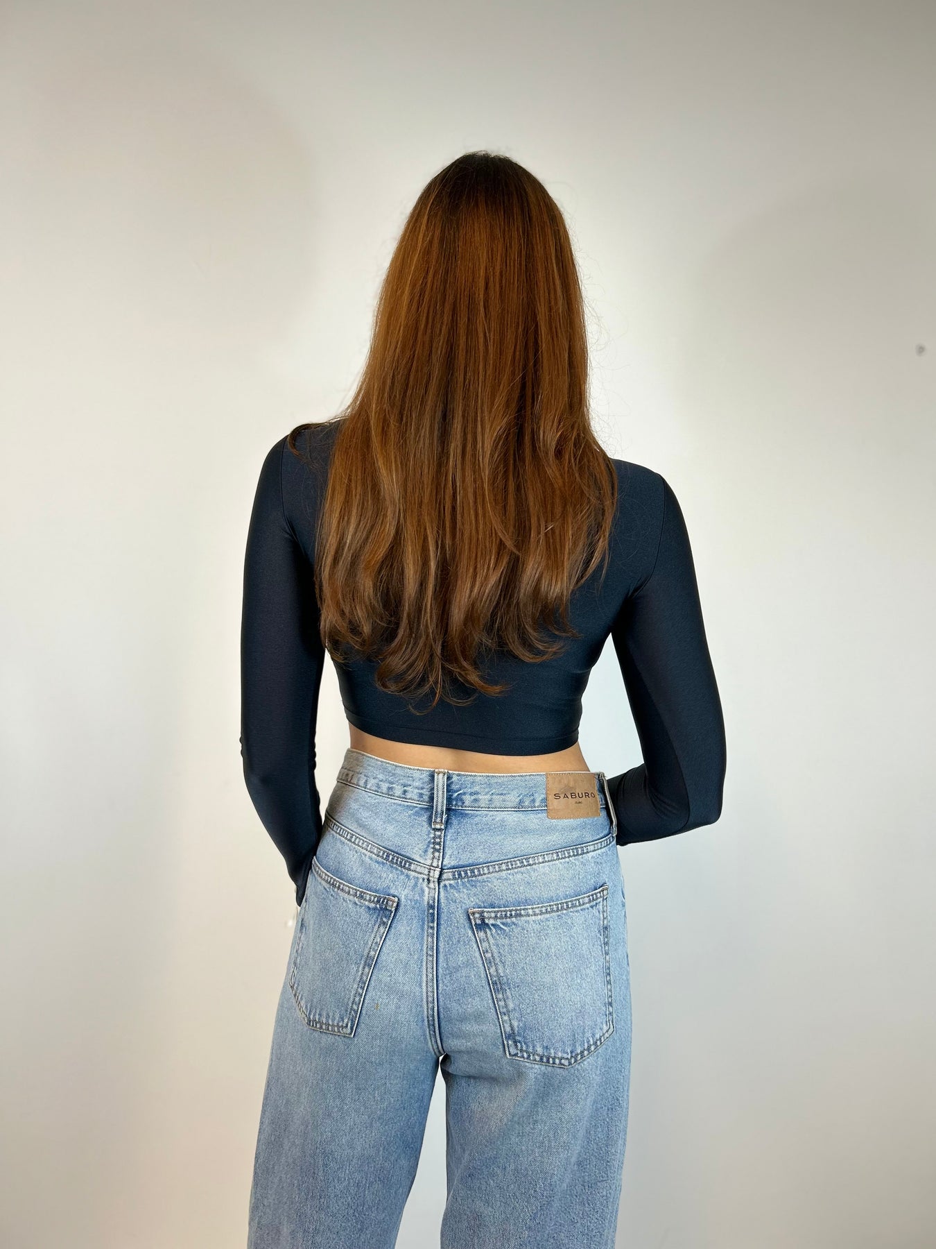 The most stylish at the gym is you with this GUCCI black fitted cropped top with contrasting white zipper closure on each cuff and GG interlocking logo at the front. Wear to exercise or mix and match with element of your wardrobe for a stylish look!