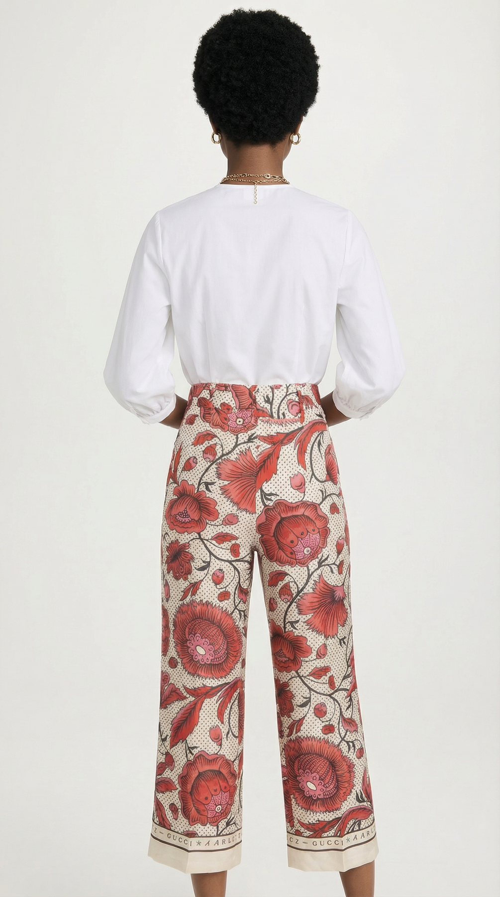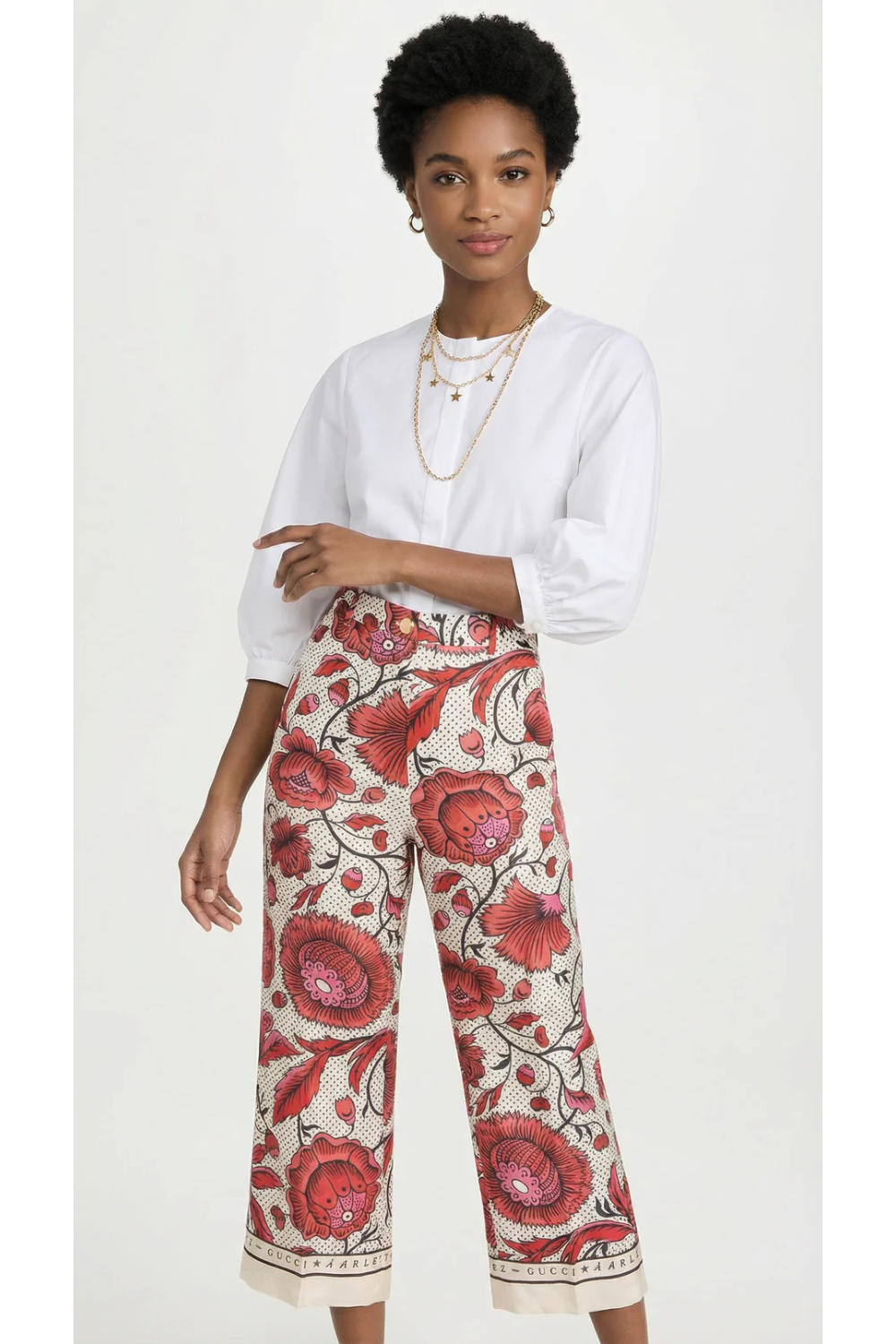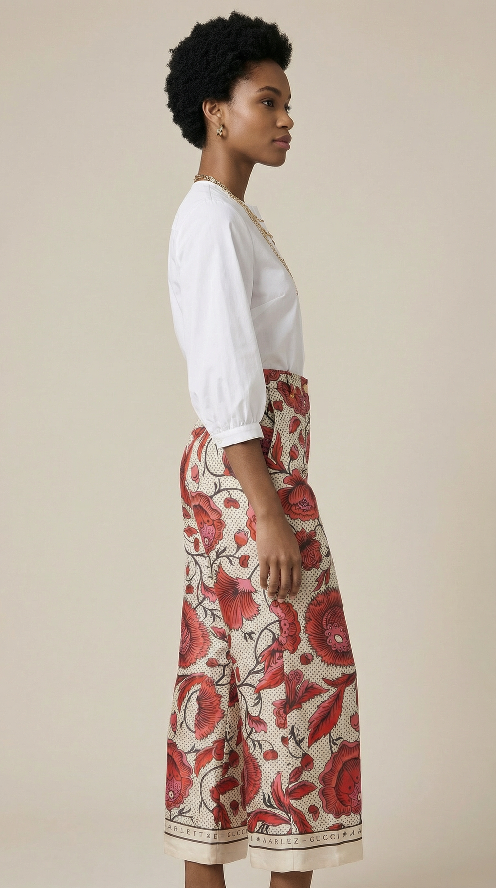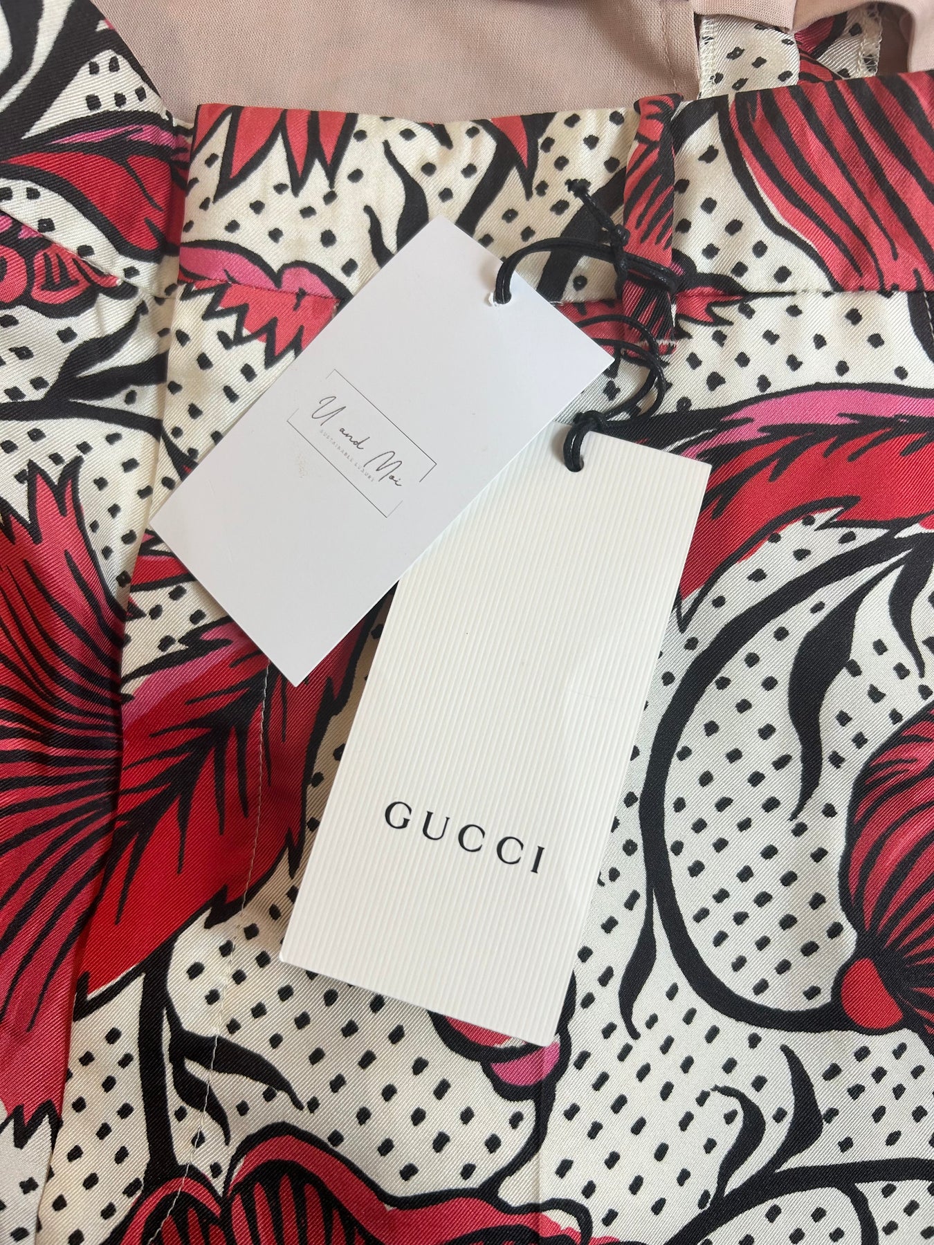 GUCCI x Antoinette Poisson Cruise 2019 Silk High rise Wide Leg Print Trouser size 40it with tag attached