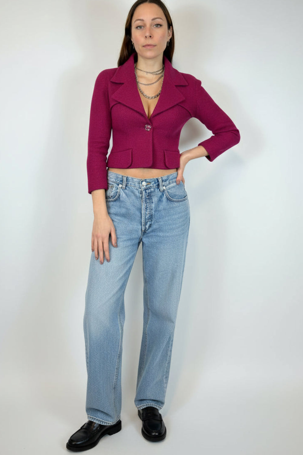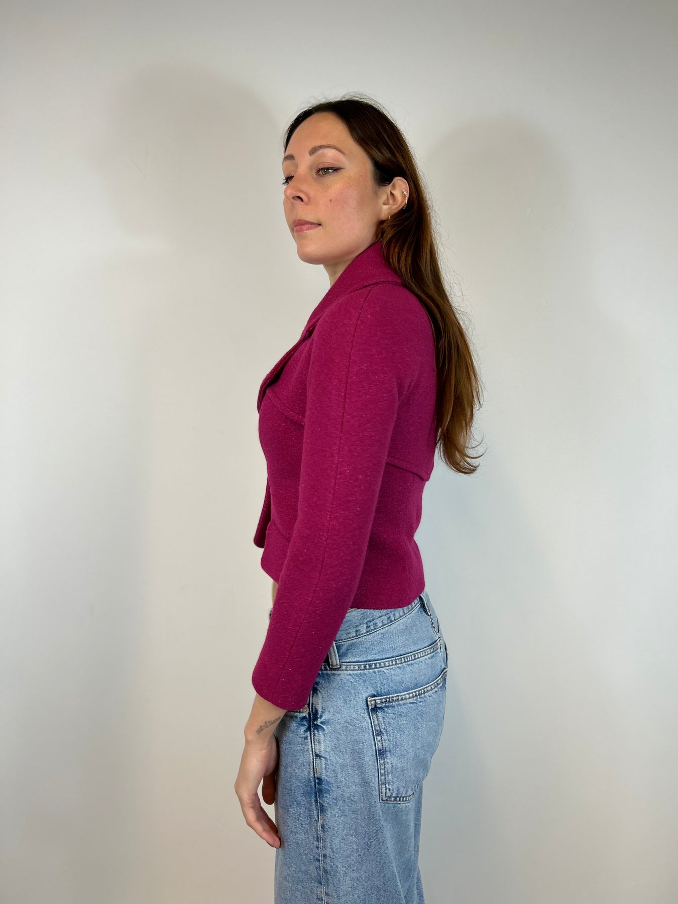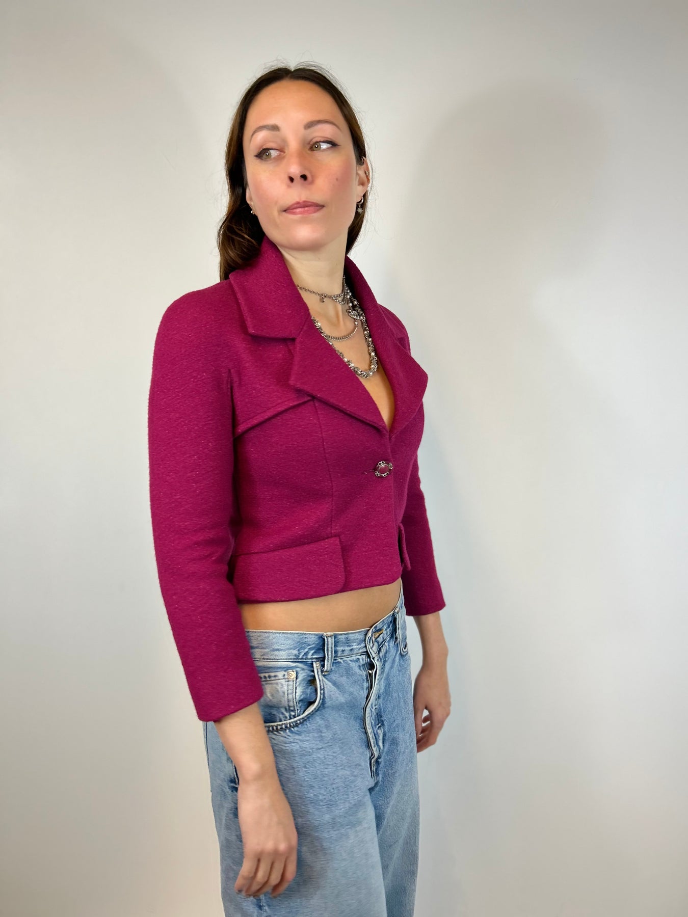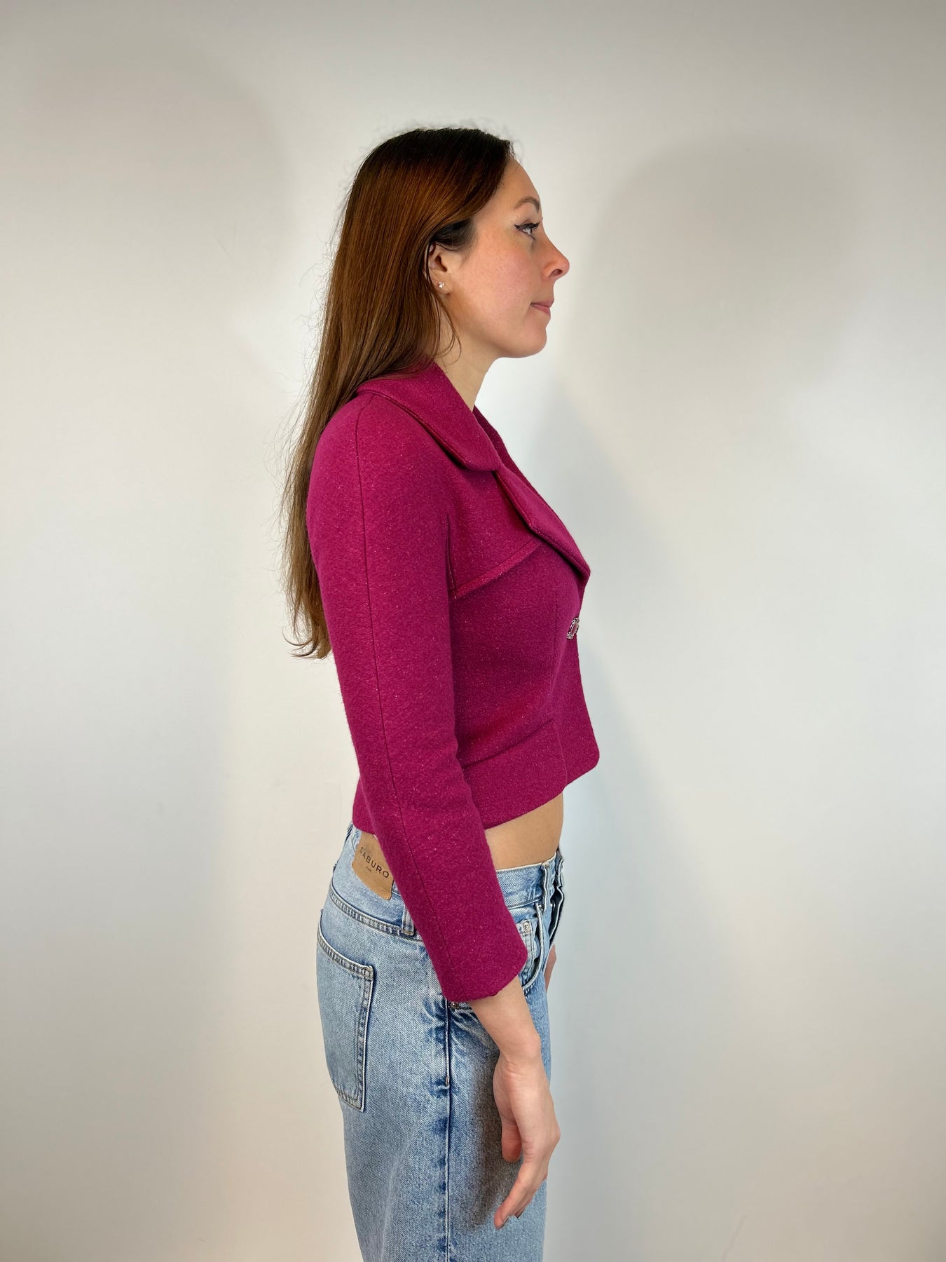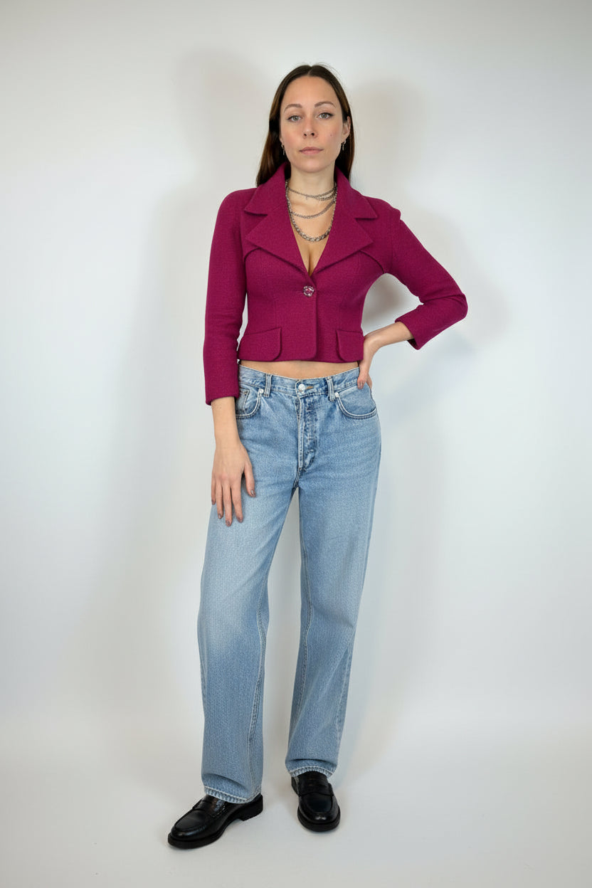 CHANEL F/W 2018 Raspberry Wool Cropped Jacket size 34fr
