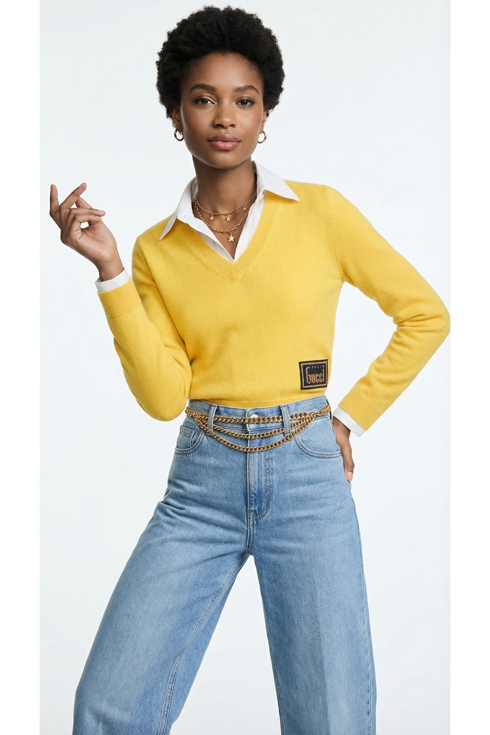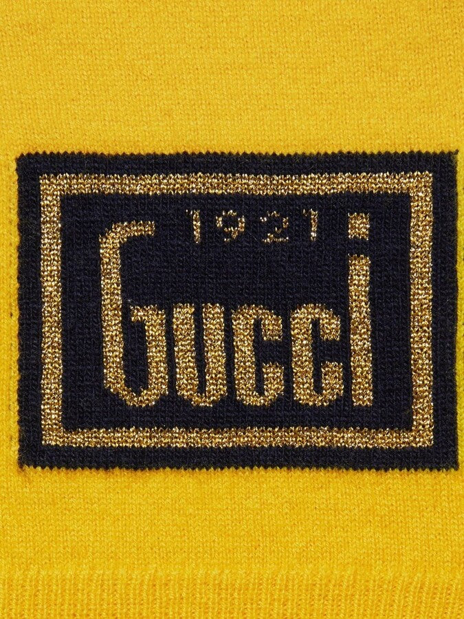 GUCCI Yellow Wool Sweater with Contrasting Logo Patch "1921" V neck size M