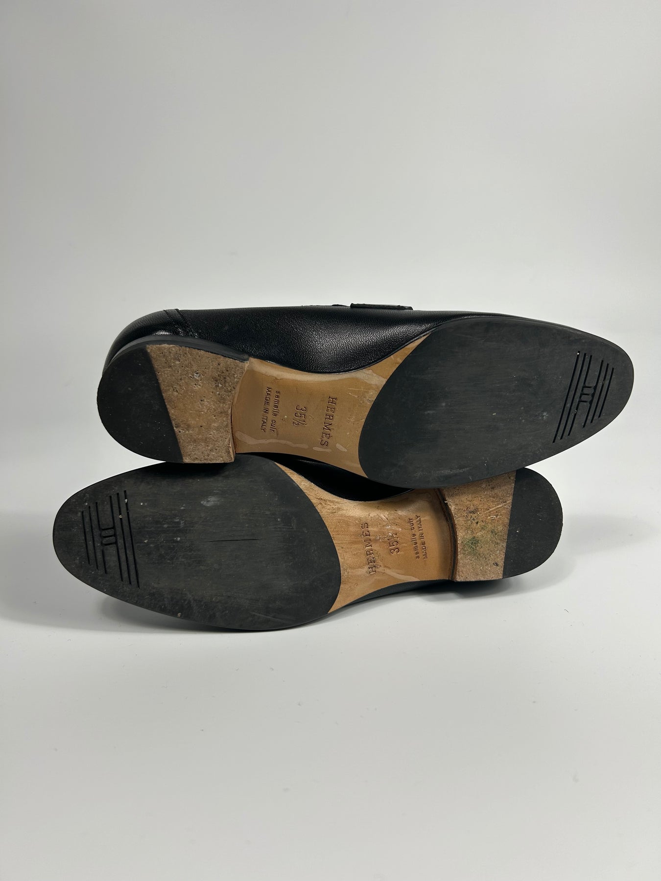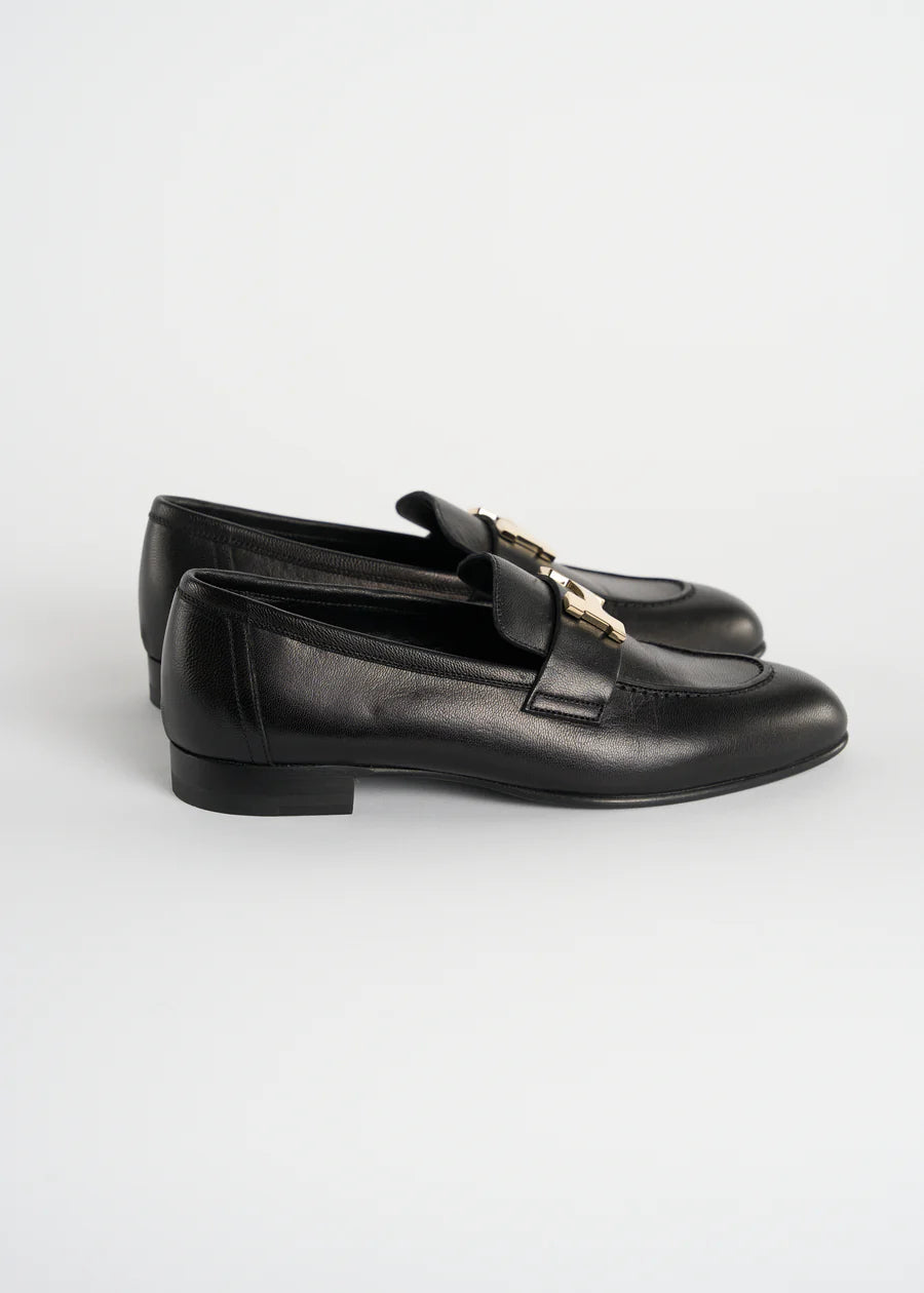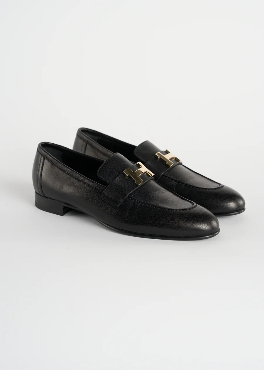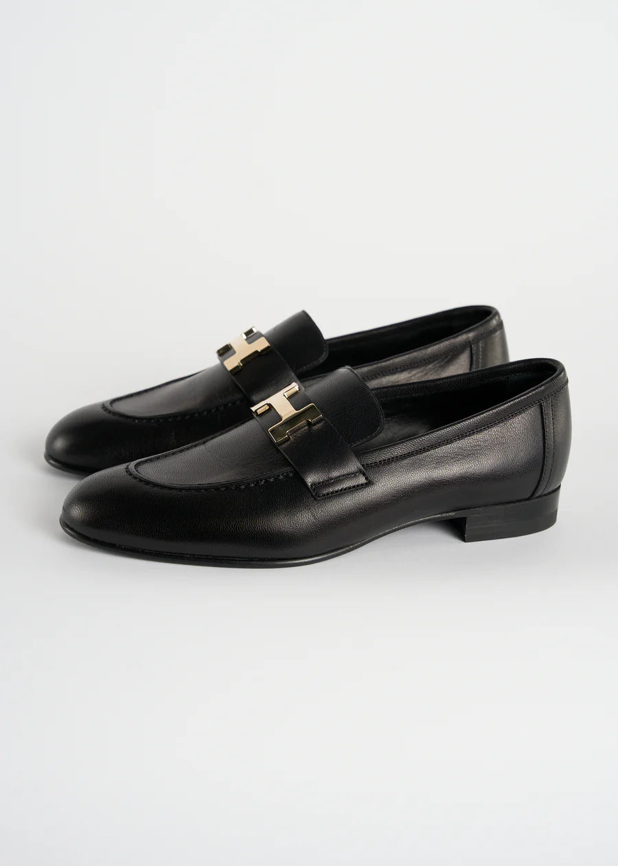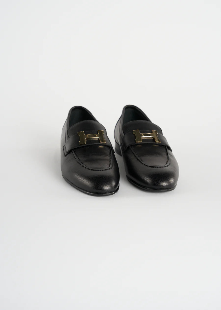 HERMES "Paris" black leather loafers with palladium H buckle