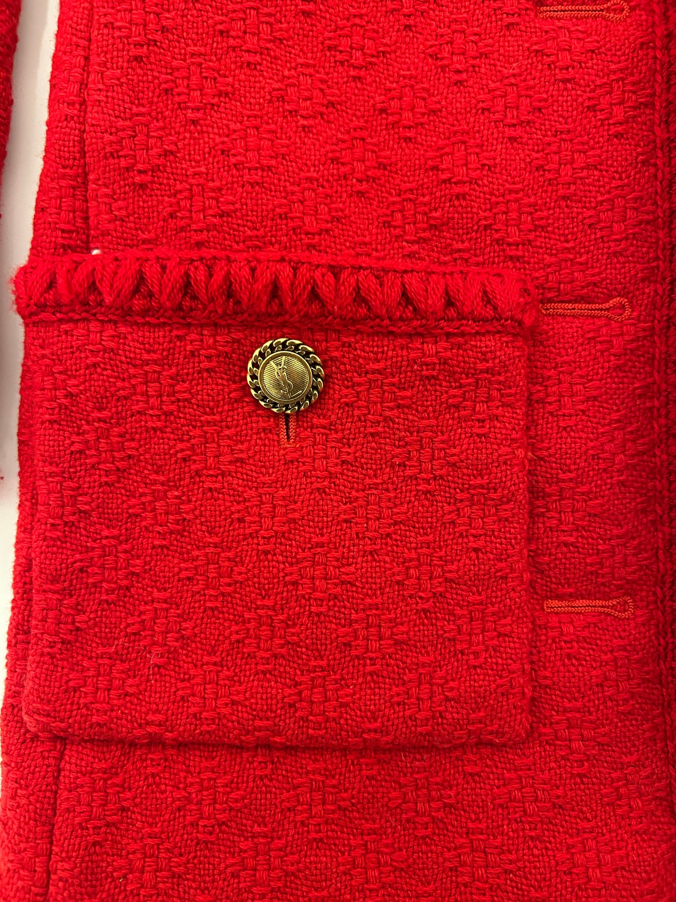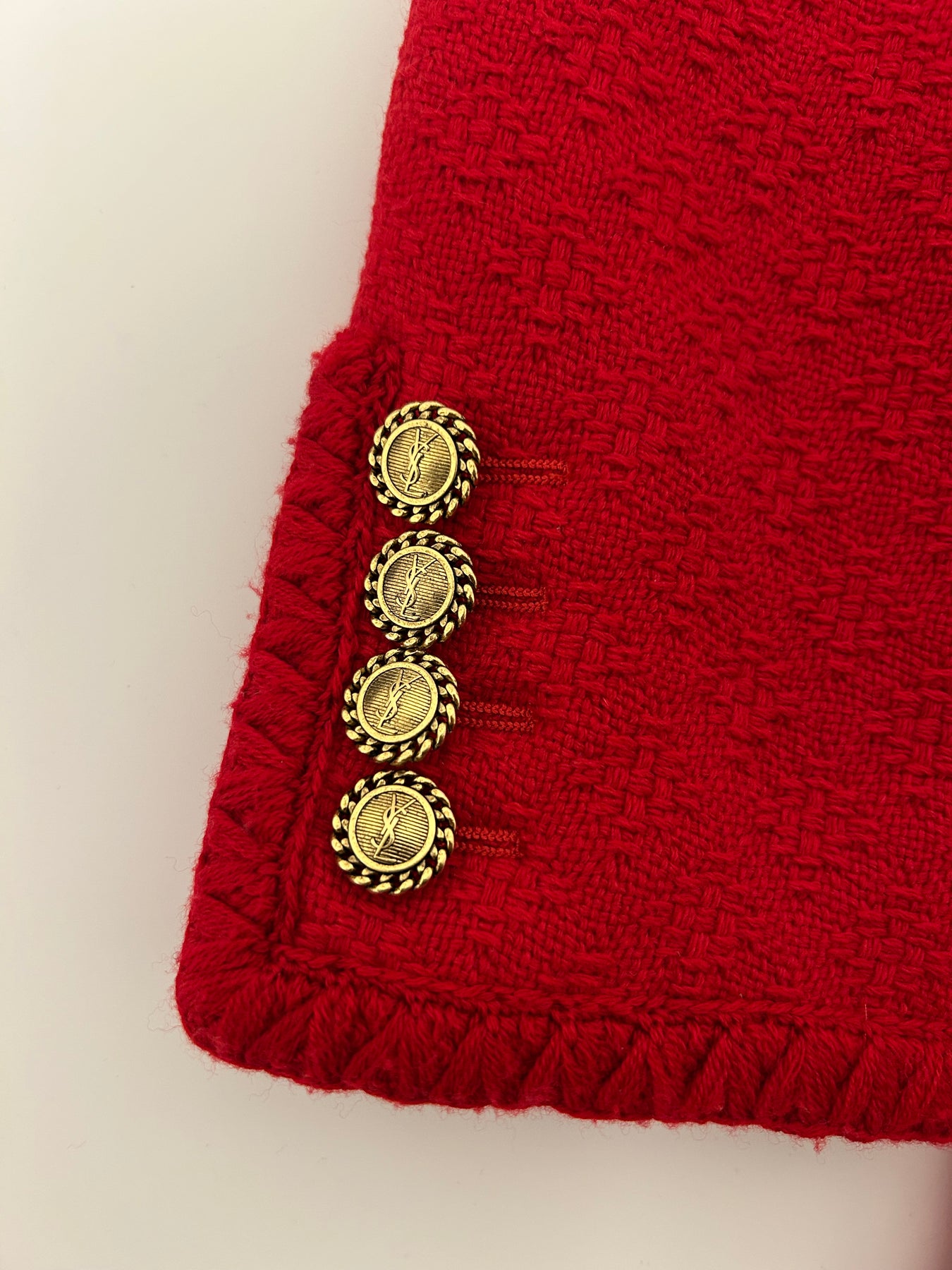 SAINT LAURENT Red Braided Trim YSL Antique Gold Buttons size 38 RRP: €3990