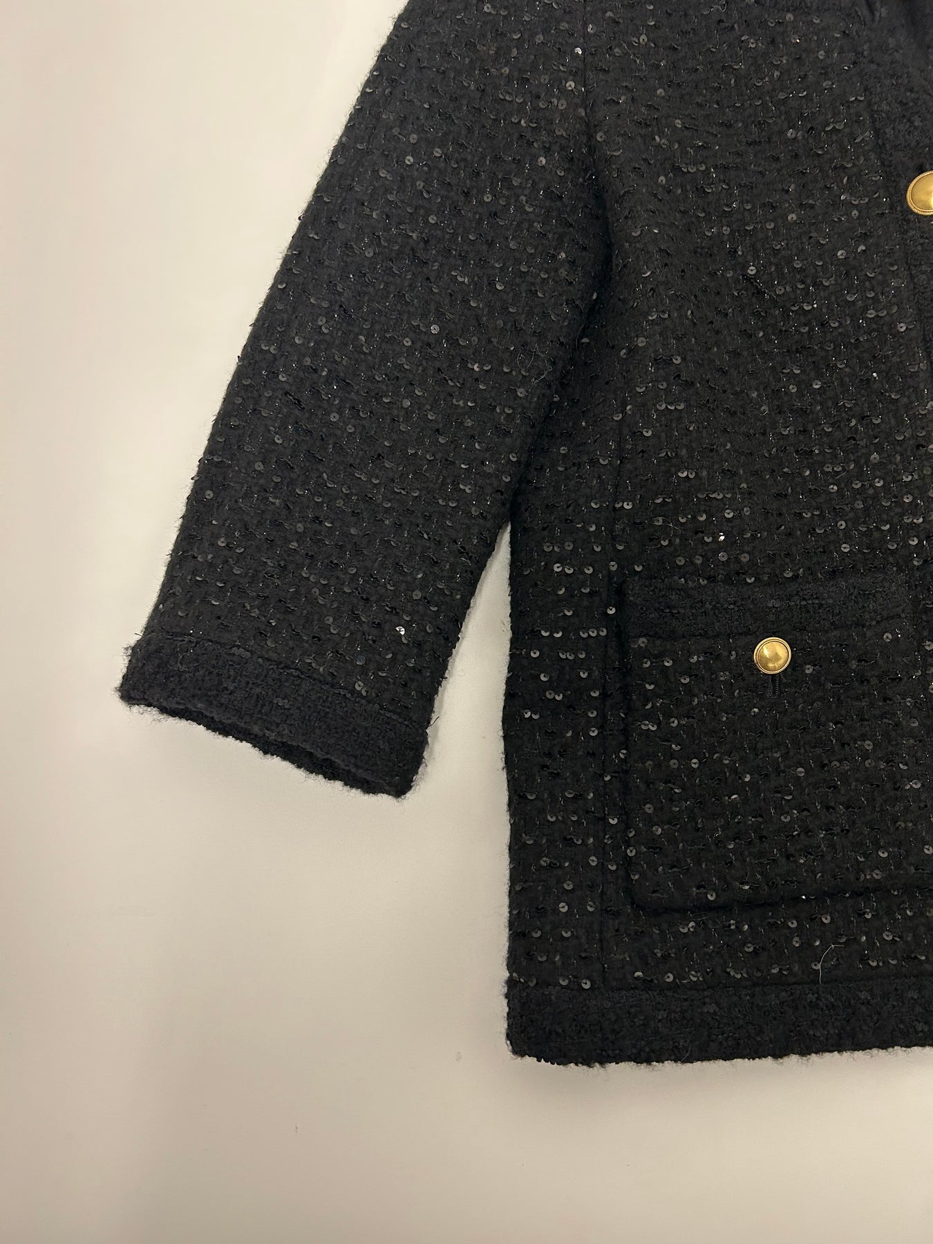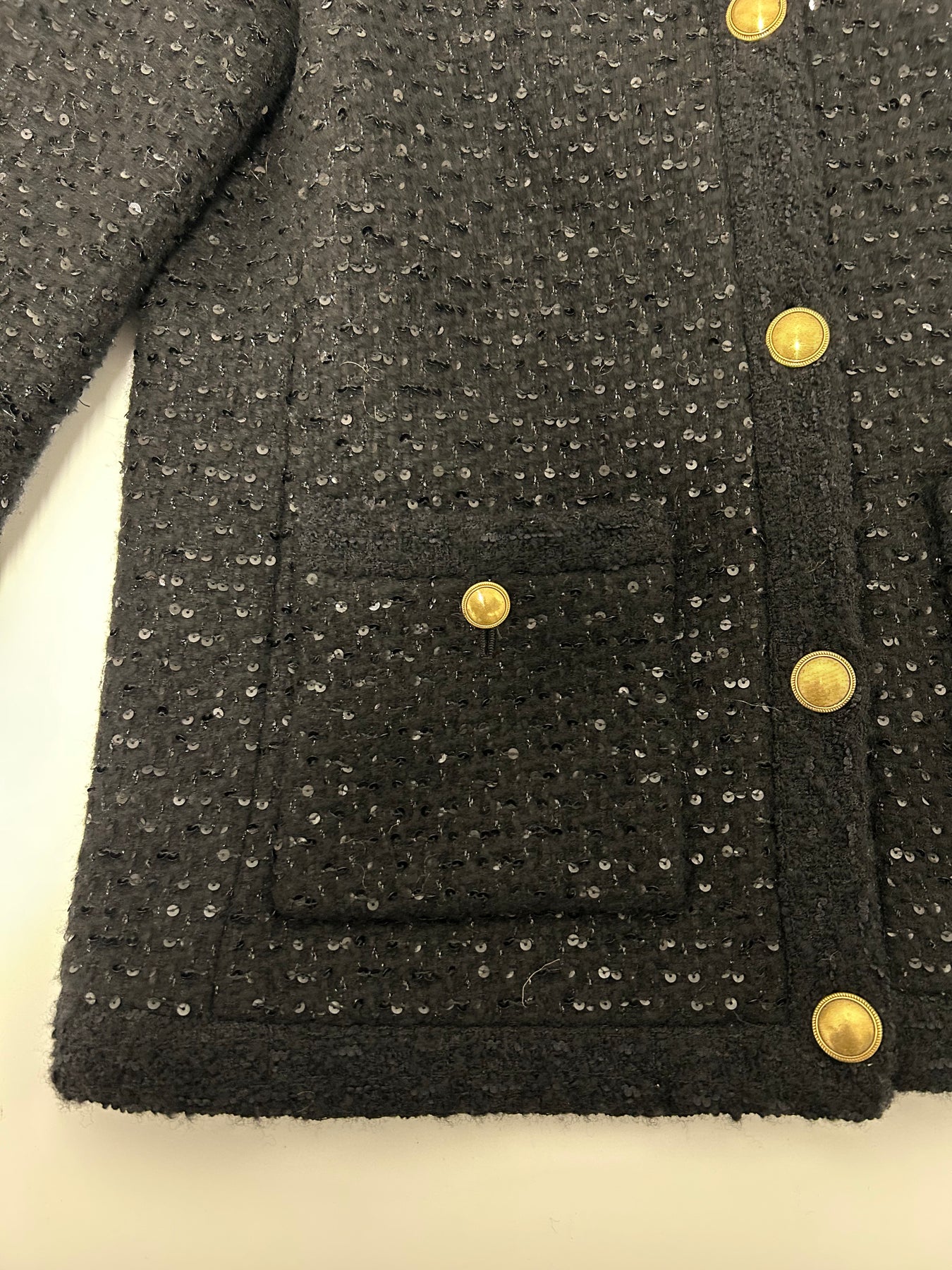 SAINT LAURENT Sequined Black jacket with gold Antique Buttons size 36