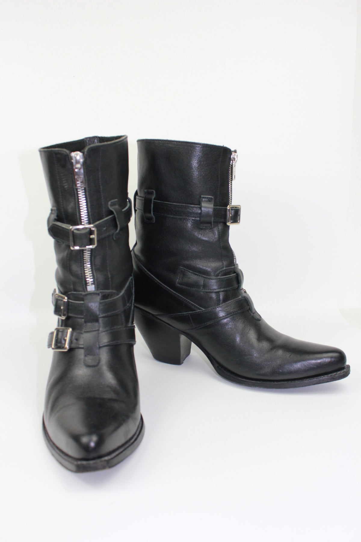 CELINE by Hedi Slimane "Berlin" western leather silver buckle boots size 39
