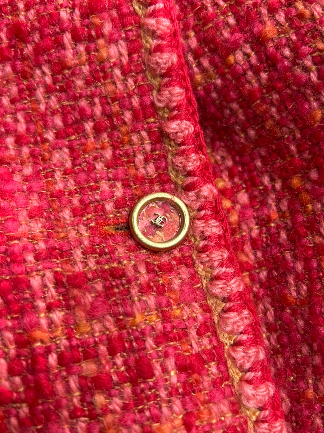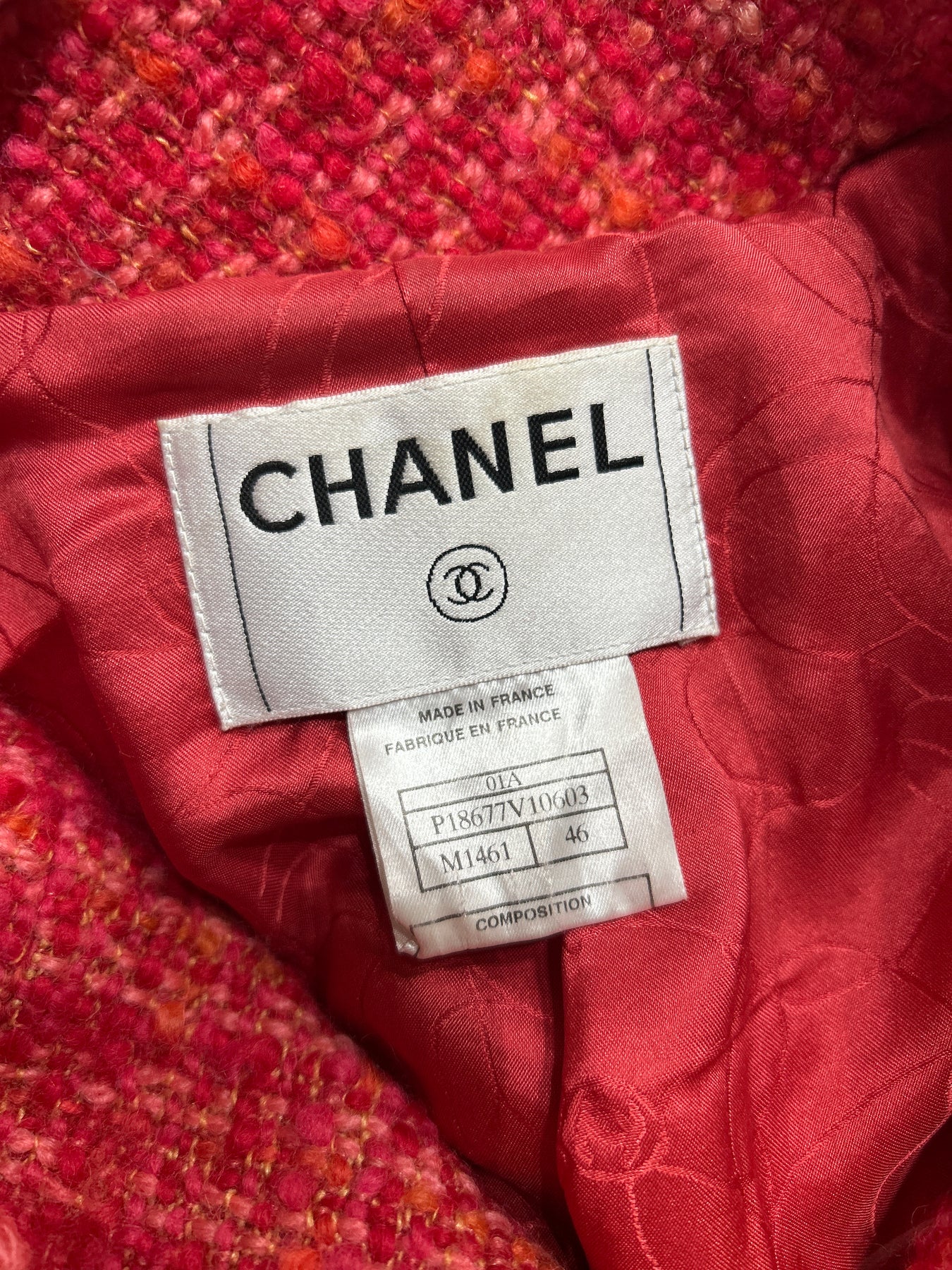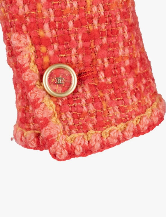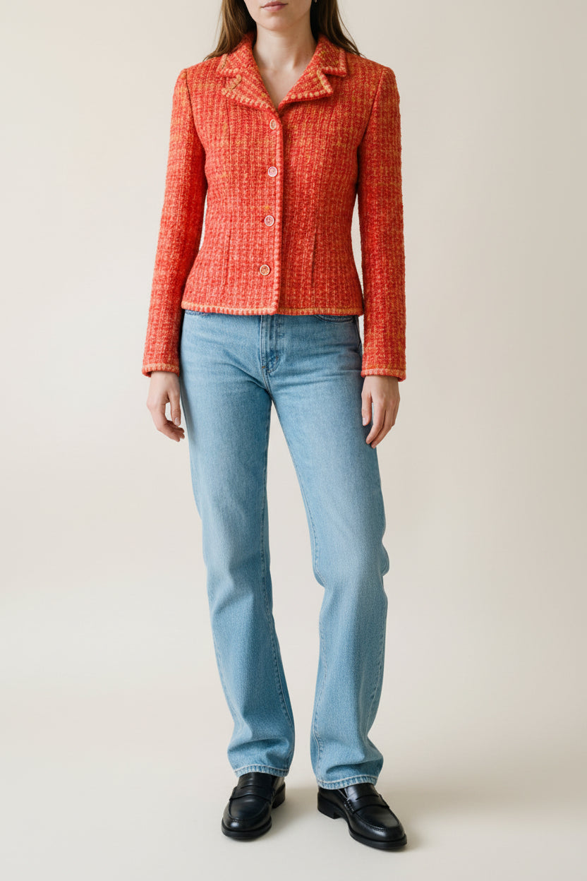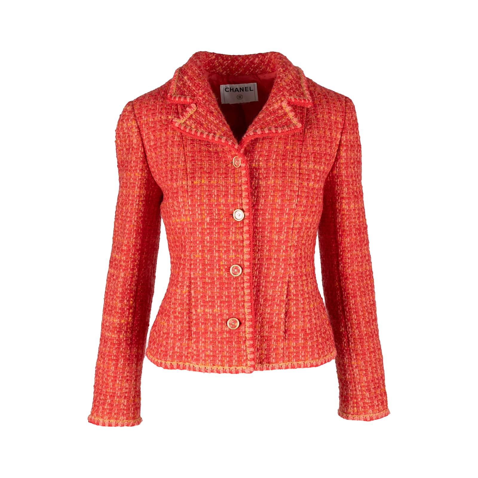 CHANEL 2001 Autumn collection tweed red orange pink jacket size 46