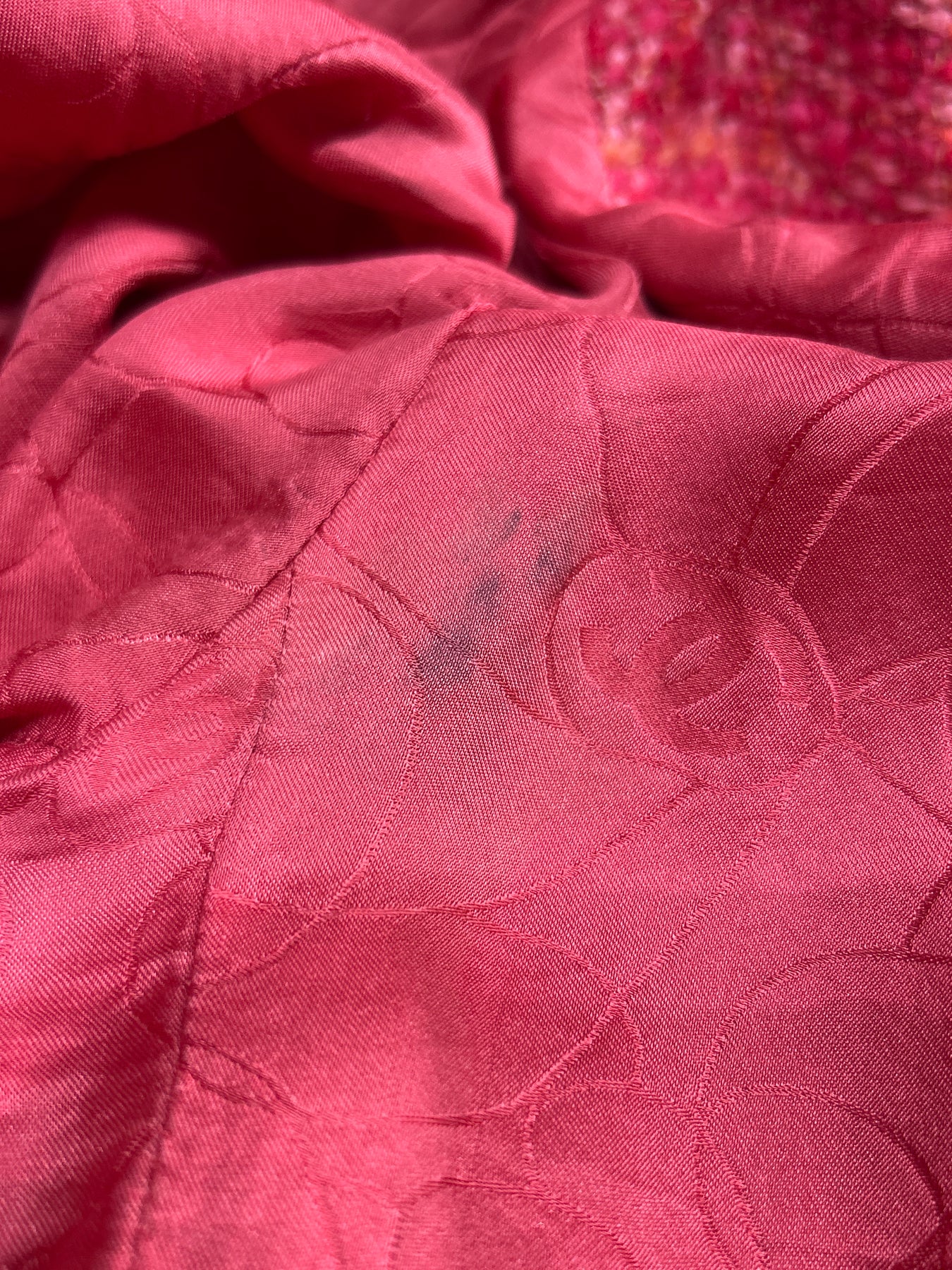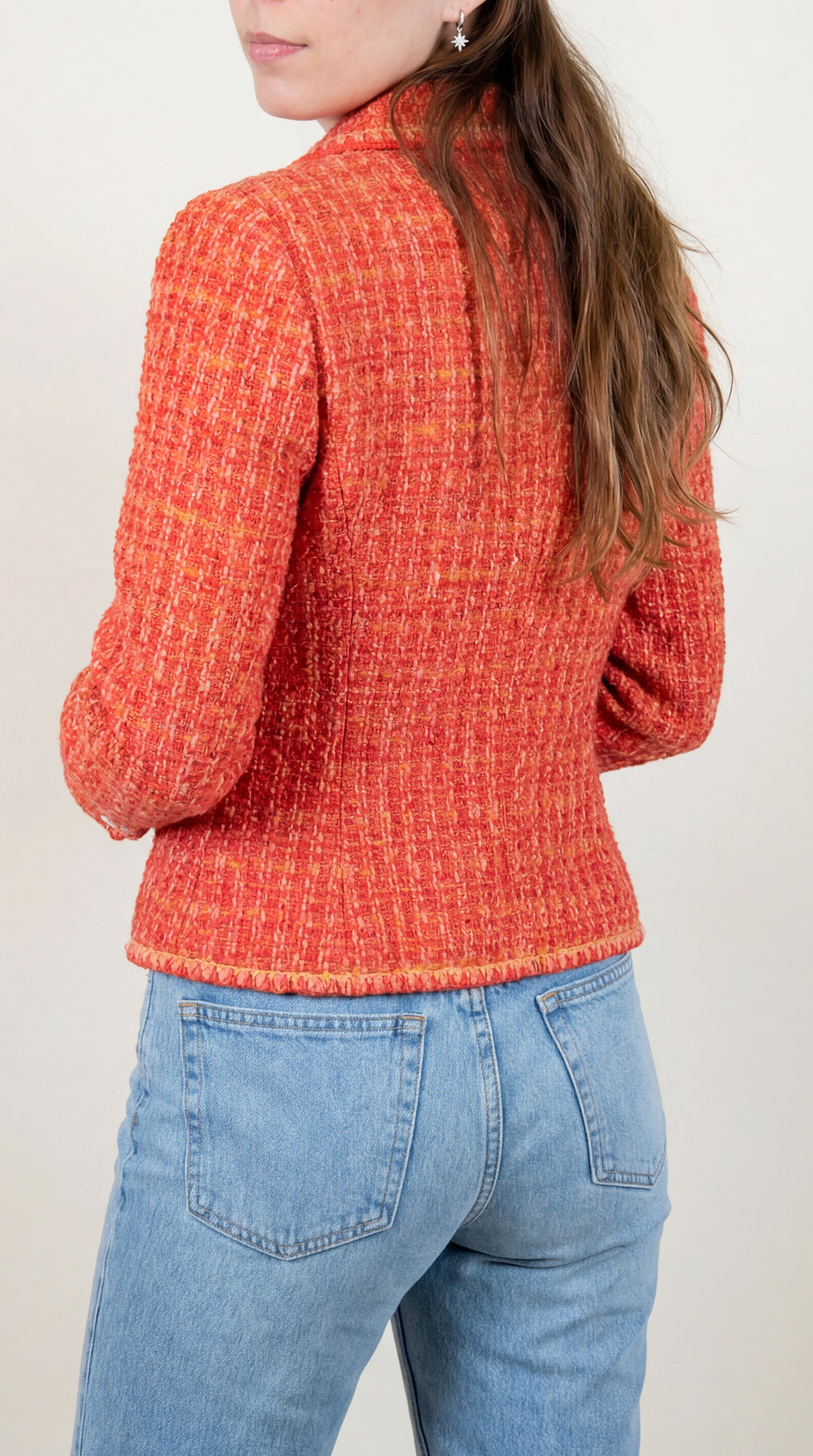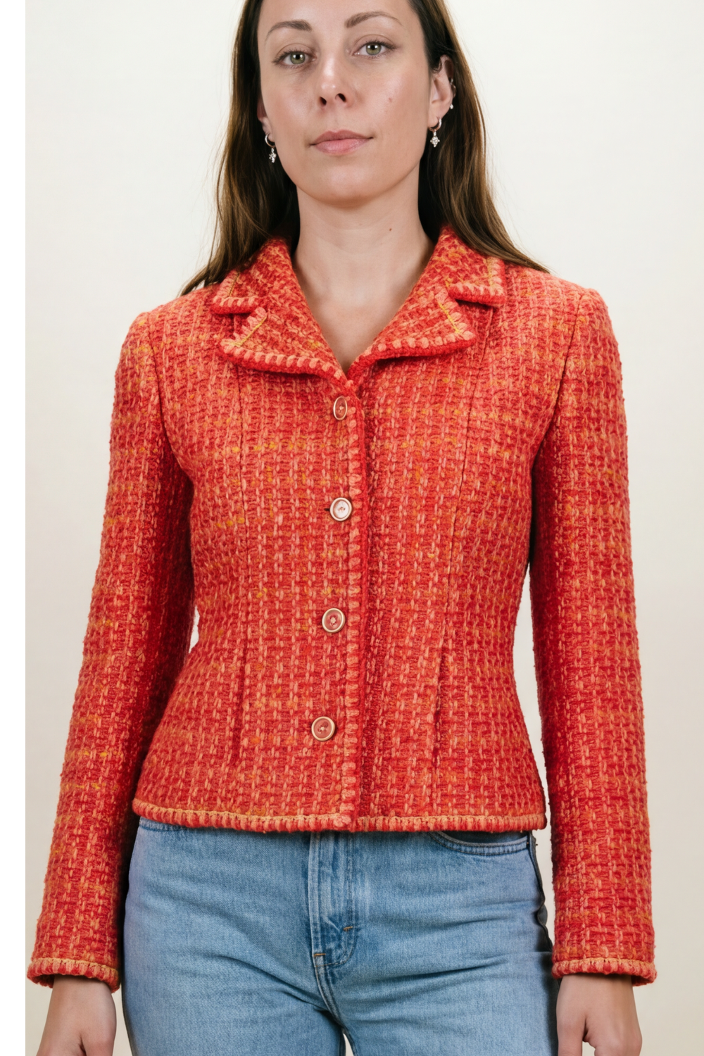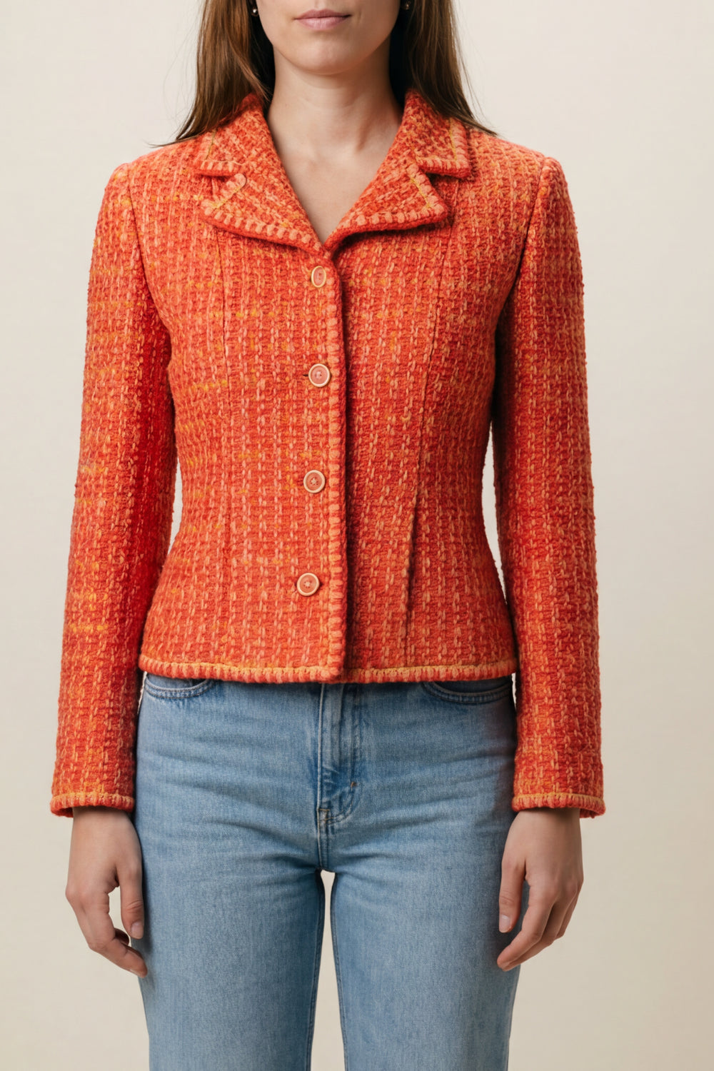 CHANEL 2001 Autumn collection tweed red orange pink jacket size 46
