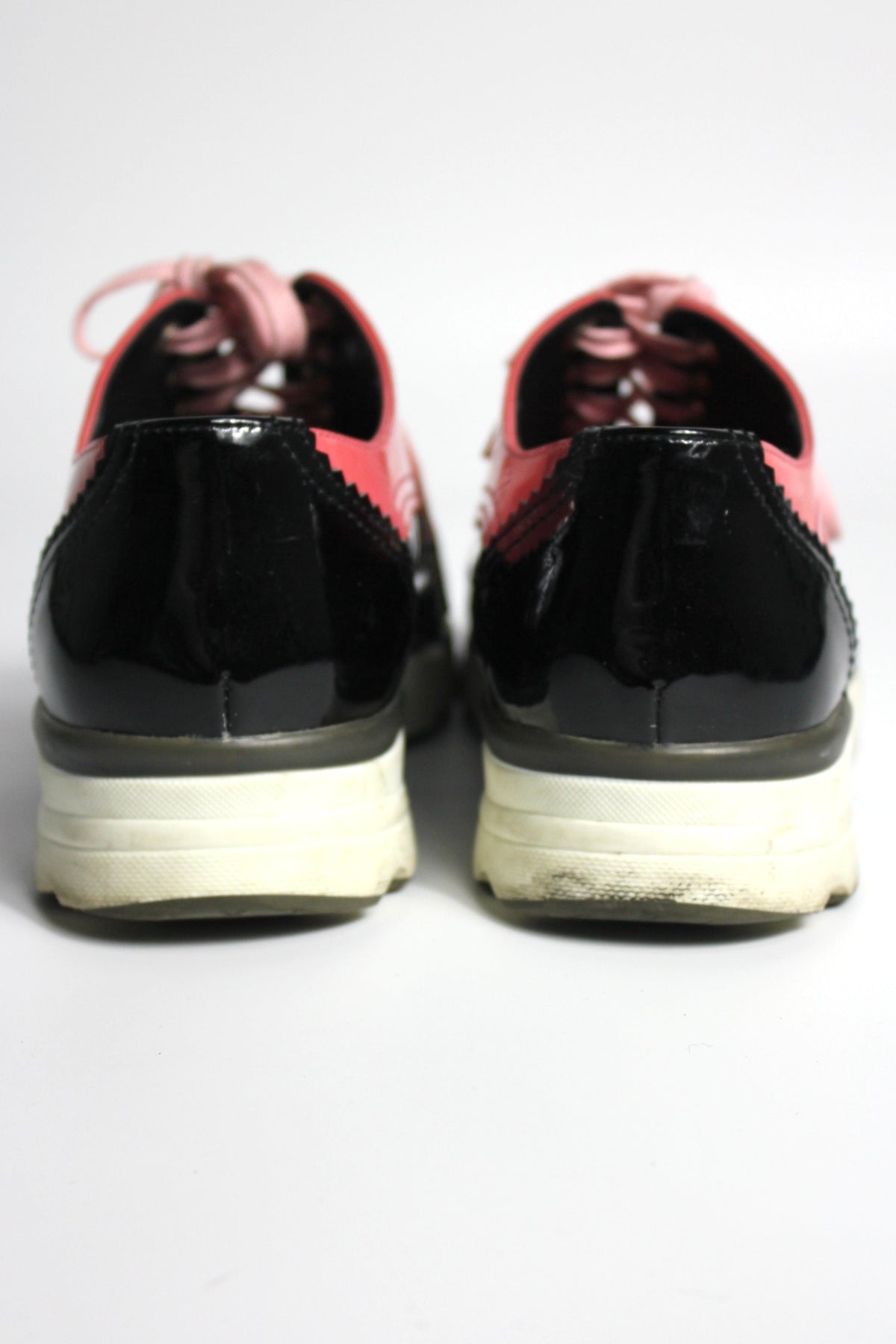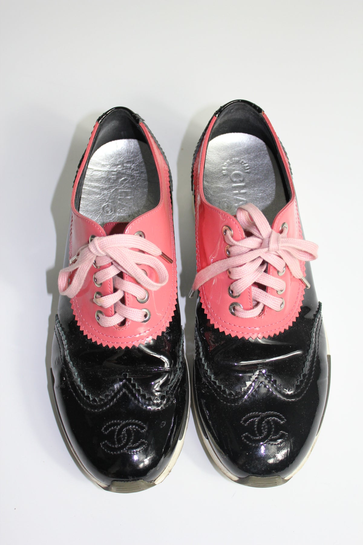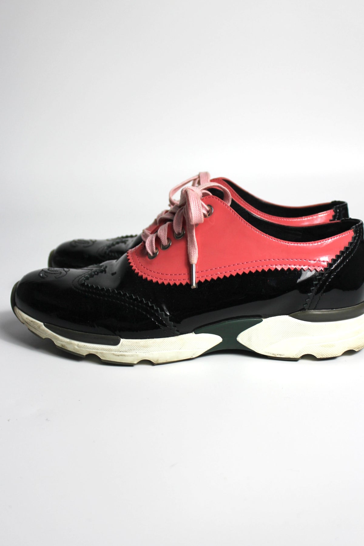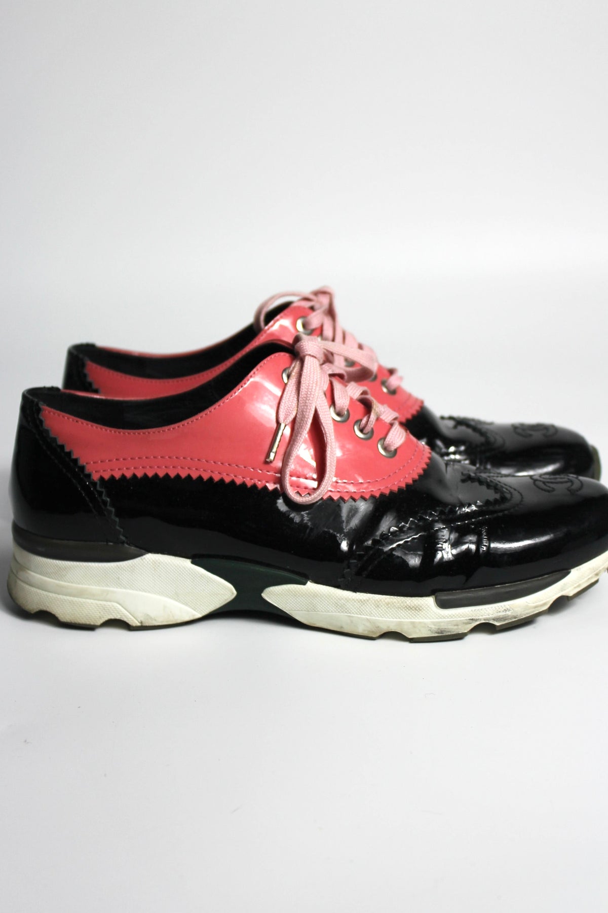 CHANEL Black and Pink Patent Leather CC Trainers size 39