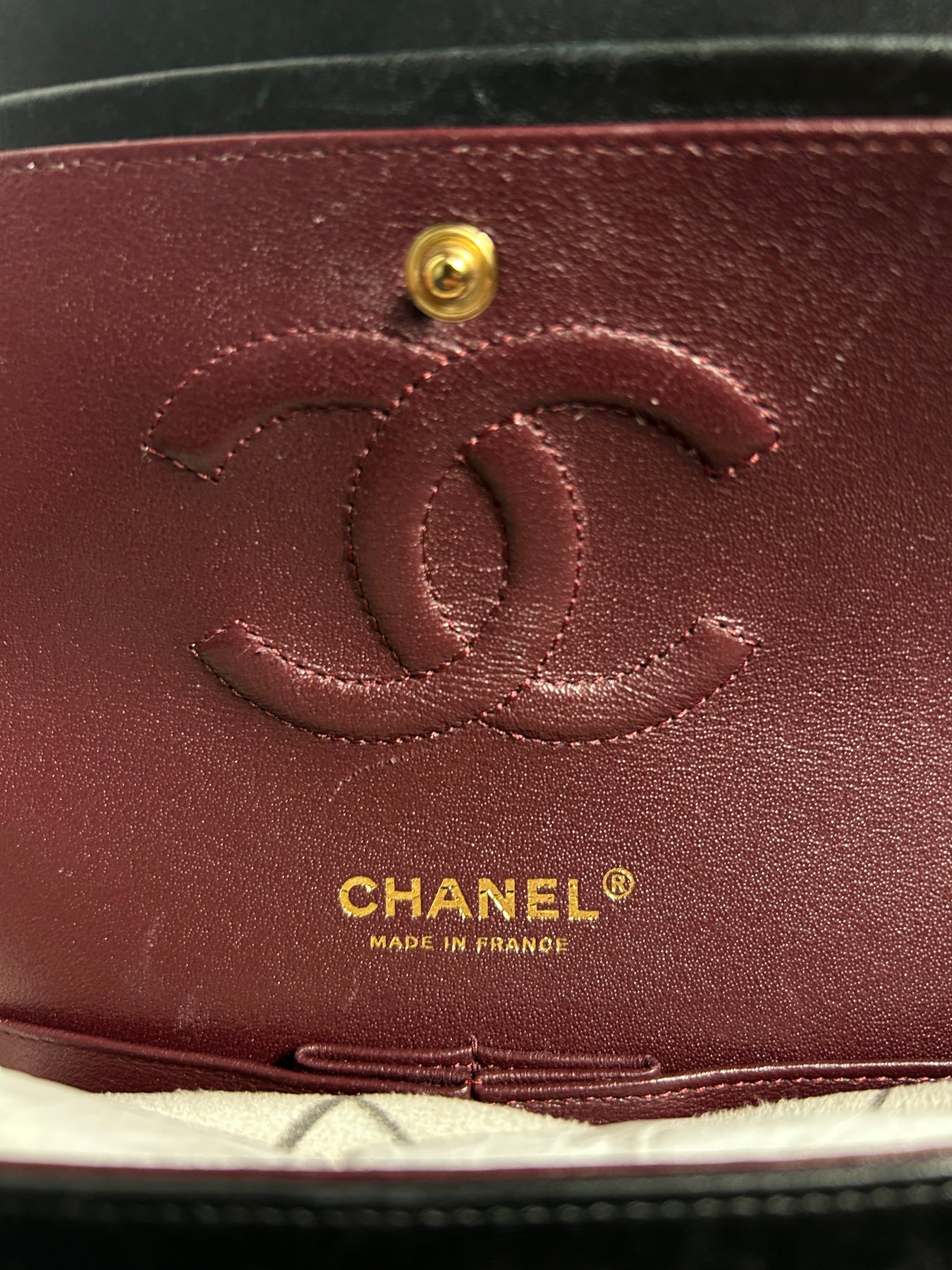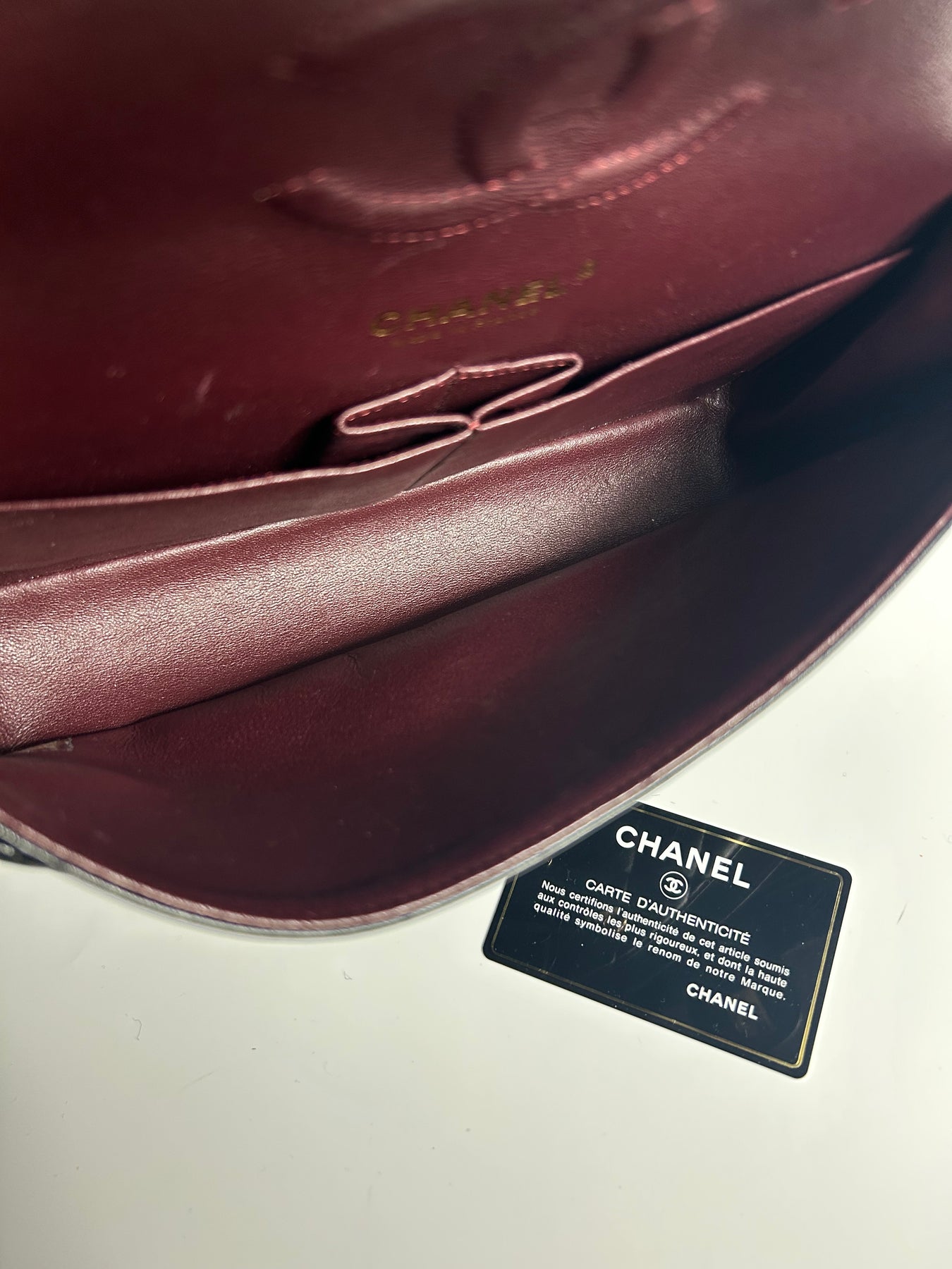 A status symbol ? Surely, but also a beautiful testimony of refined taste and craftmanship. The Chanel Small Double Classic Flap is an icon of the house that never cease to amaze women around the world, with its beautiful diamond quilted leather and gold hardware it is the perfect bag to carry day to evening. The double flap is the favorite way of keeping your essentials safe inside your bag and open to the highly recognizable burgundy interior leather lining with large CC stitching. The classic intertwined leather chain strap allows shoulder carry and crossbody, if you like to carry the bag close to your body, and the CC turnlock finishes the bag with timeless elegance.