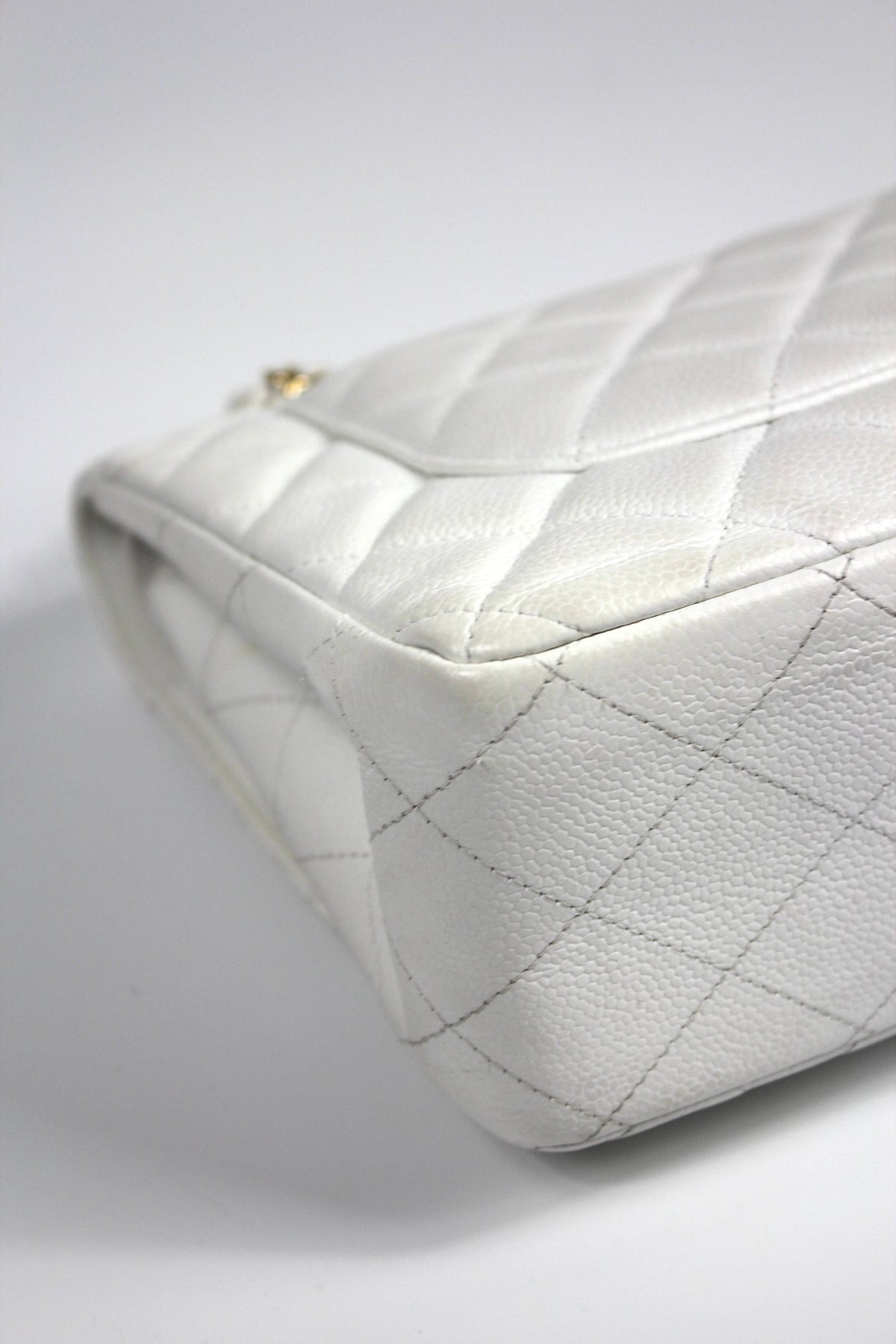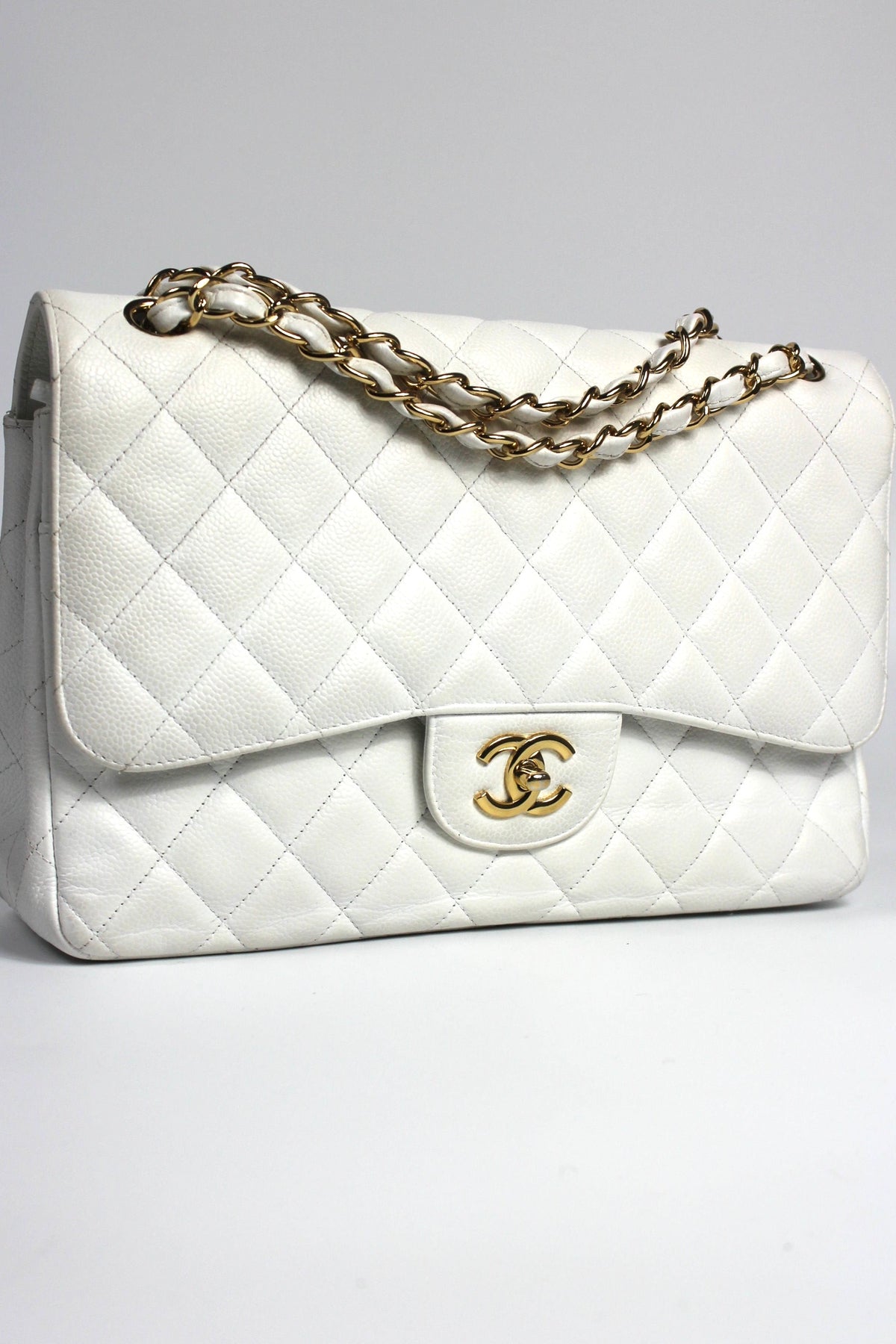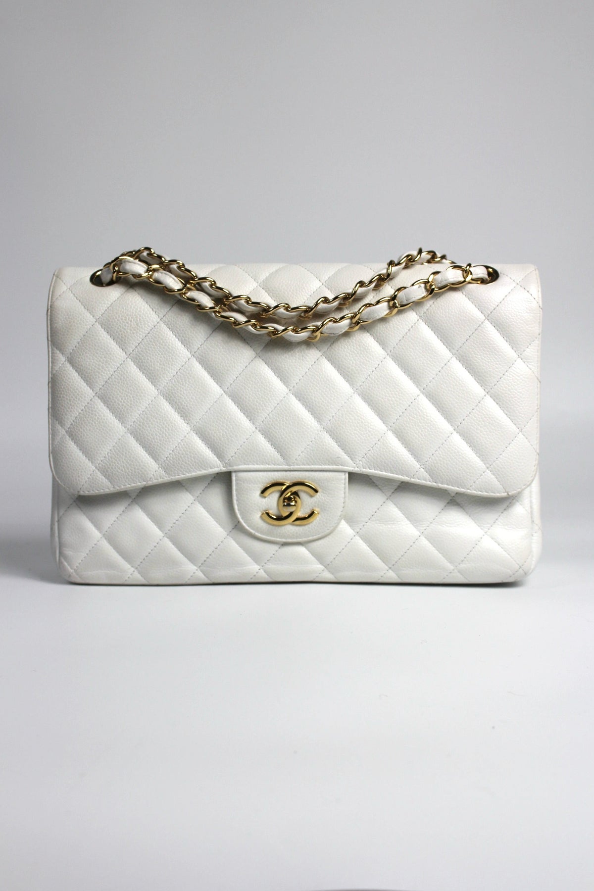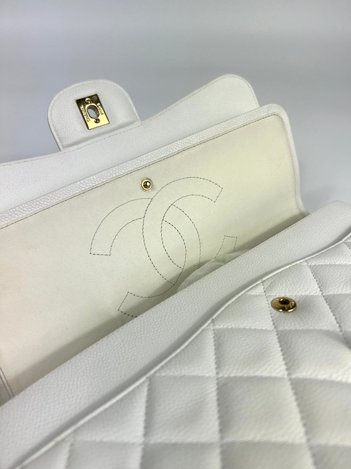 CHANEL Classic Double Flap Jumbo White Caviar Leather with Gold Hardware current RRP €11000