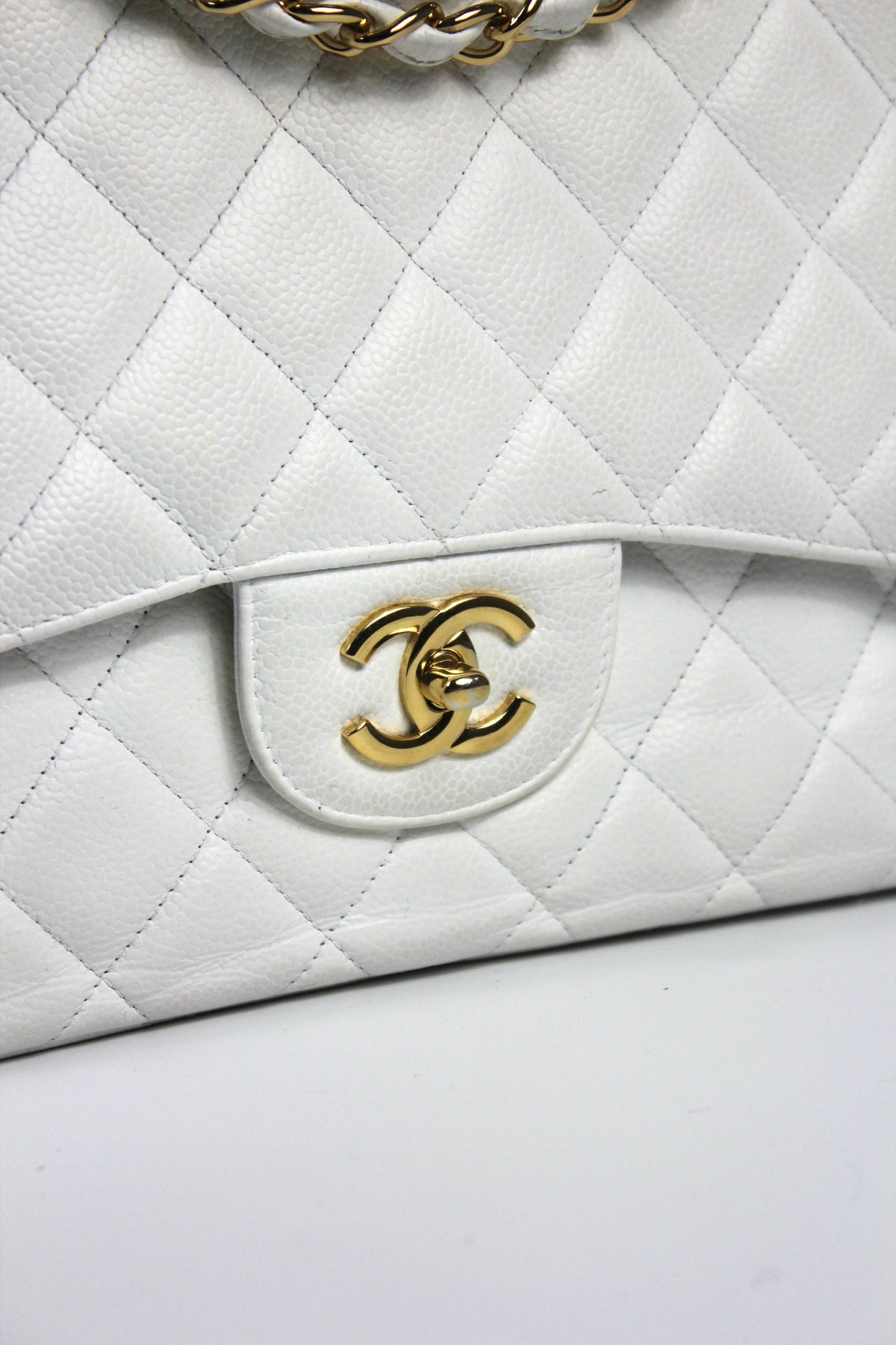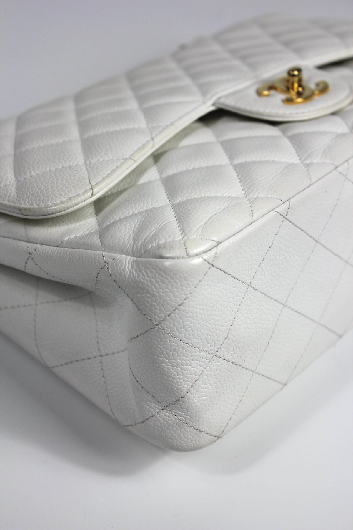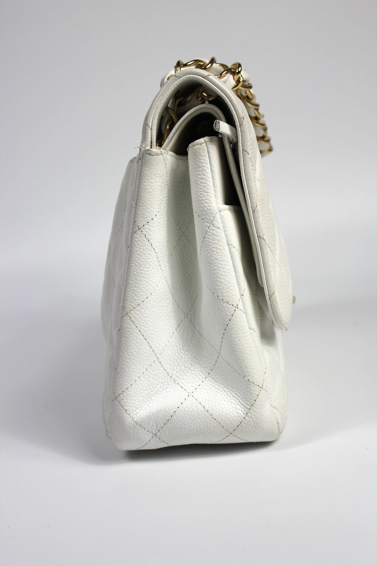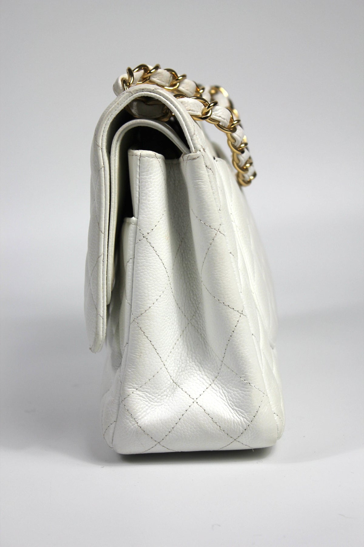 CHANEL Classic Double Flap Jumbo White Caviar Leather with Gold Hardware current RRP €11000