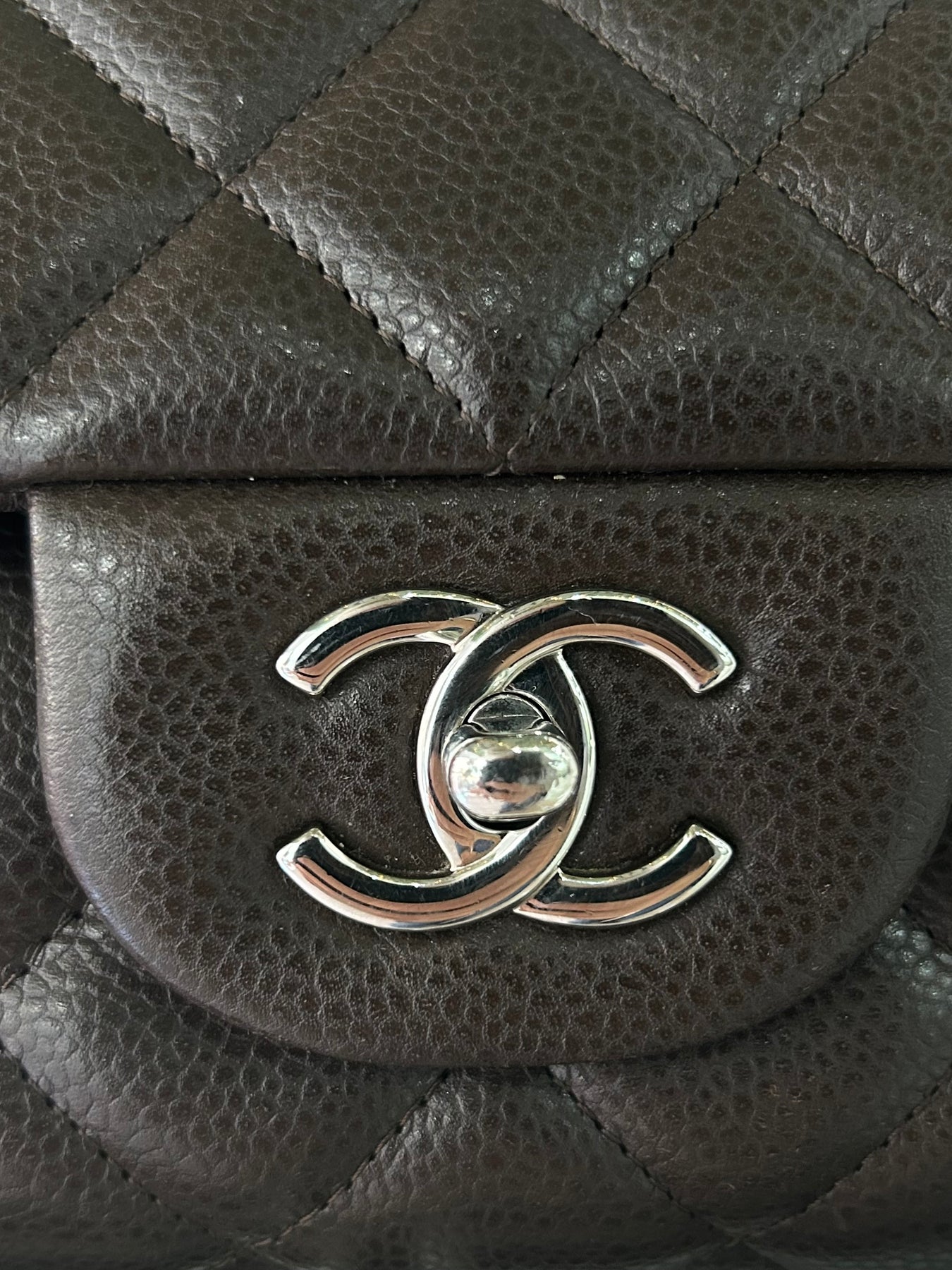 CHANEL Maxi espresso brown caviar leather with silver hardware current RRP €11700
