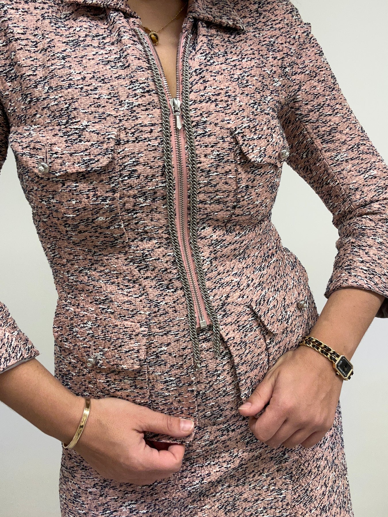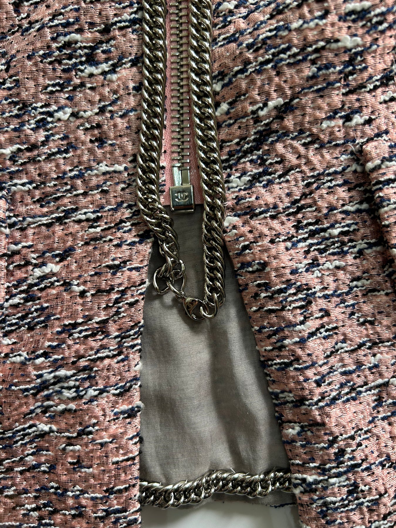 CHANEL Pink Silver Zip Chain Two Pieces Suit 2011 size 42