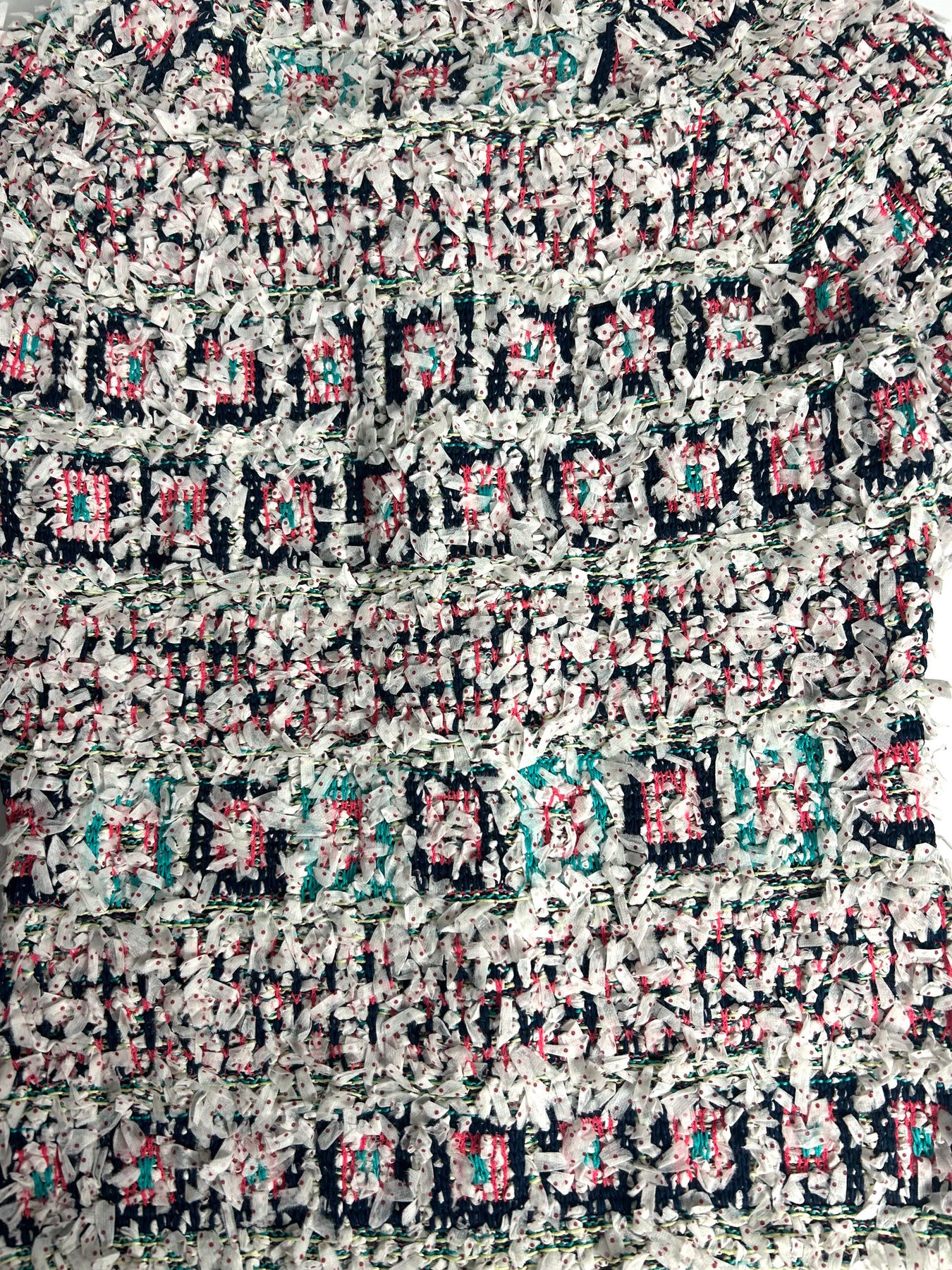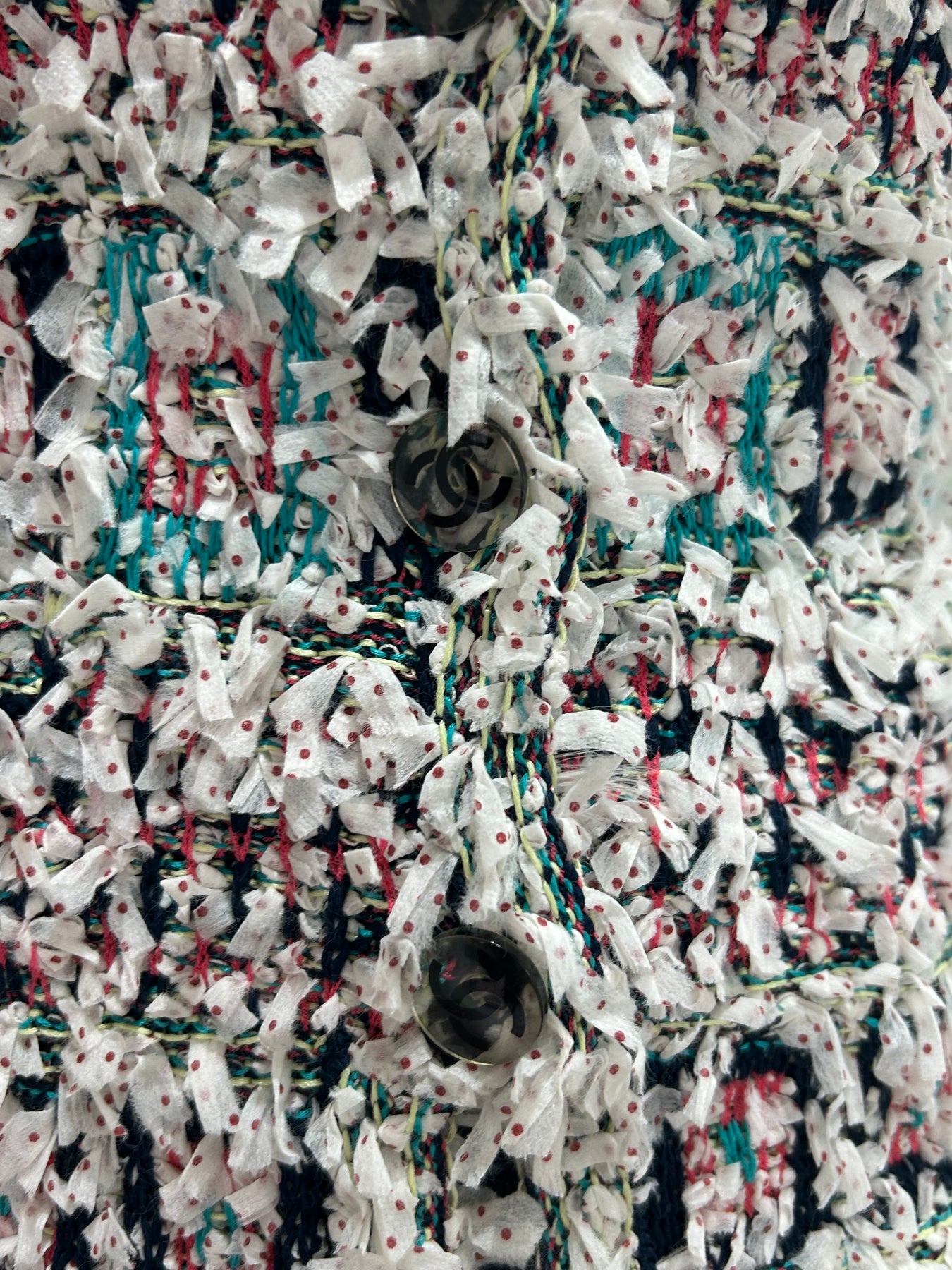 CHANEL Spring Summer 2018 White Multi Textured Jacket with Clear and Black CC logo buttons size 36