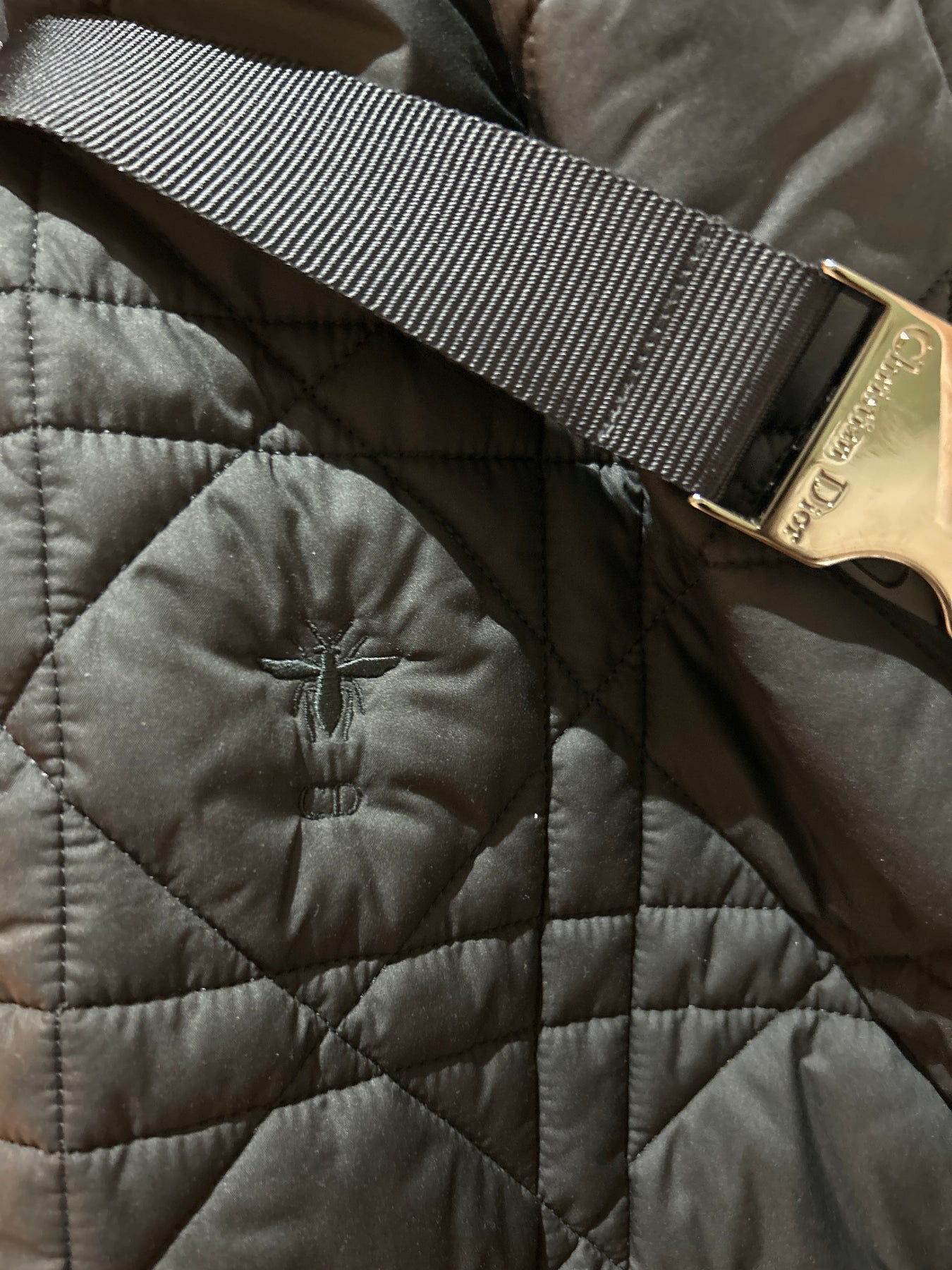 Shop this beautiful CHRISTIAN DIOR long open style jacket with two sides pockets and silver buckle belt - Crafted from a lightweight material finished with iconic Macrocannage stitches all over and BEE and CD embroidery signature.
